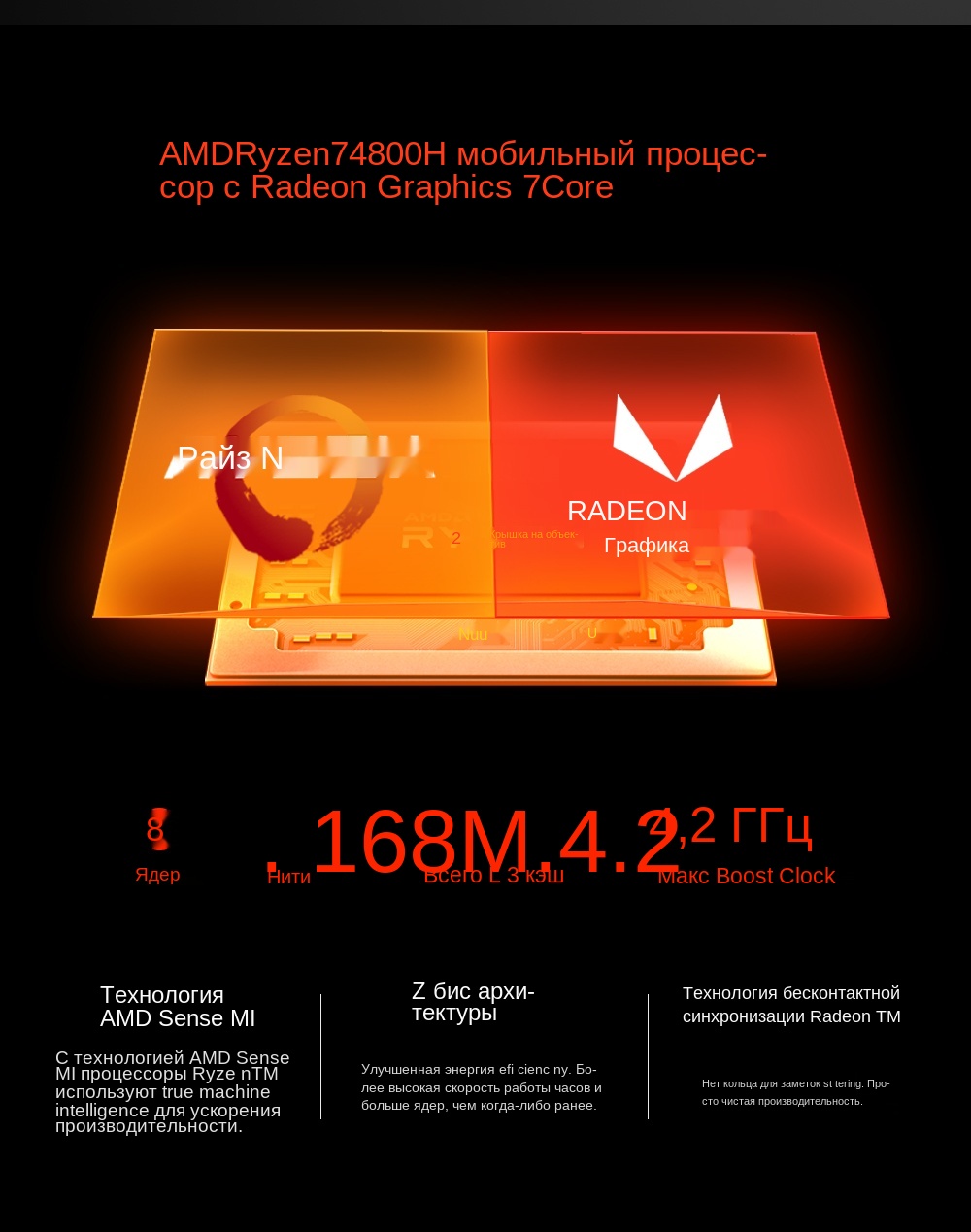 7 нмAMD Ryzen 7 (pro) 4800H 8 ядер 16 потоков 2,9 ГГц до 4,2 ГГц 8 Мб кэш TDP 45 Вт Radeon™Графика 7 ядер 1600 МГц.