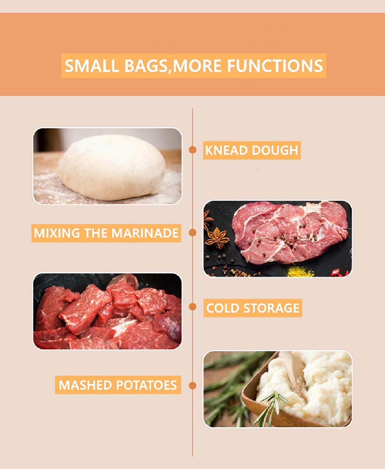 3. Вы можете использовать уникальный дизайн очистки подвески для мытья или использовать мягкую тряпку для очистки. Мешки для разминания теста можно использовать в среде от-40 °C до 230 °C.