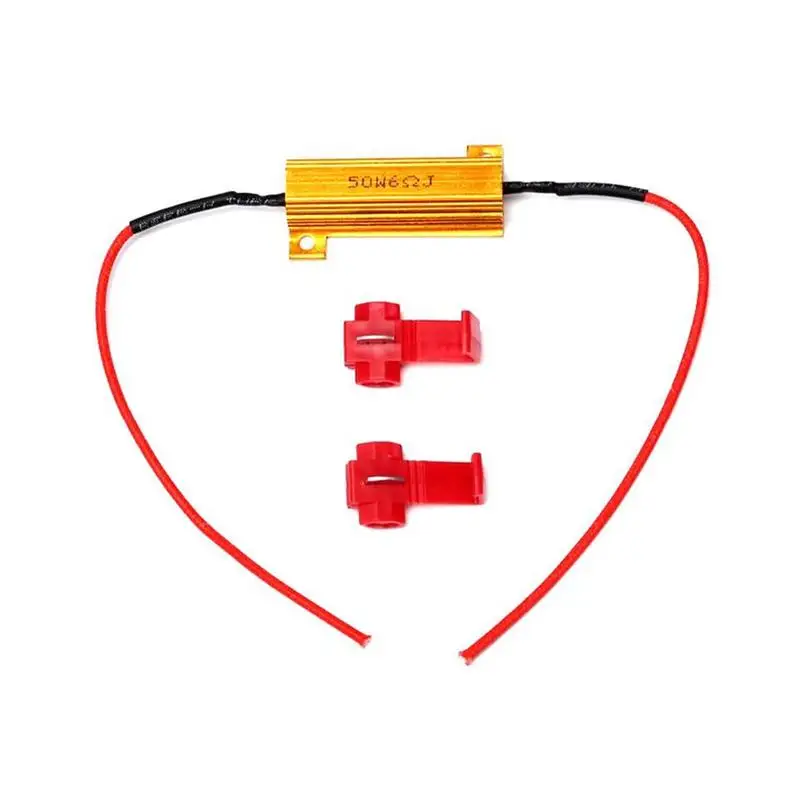 ◆Установка: специальный импедансный соответствующий резистор для автомобиля светодиодный сигнал поворота, 50W6Ω алюминиевый корпус высокомощный резистор, оба конца резистора соединены параллельно положительным и отрицательным полюсам светодиодный шнур питания сигнала поворота соответственно!