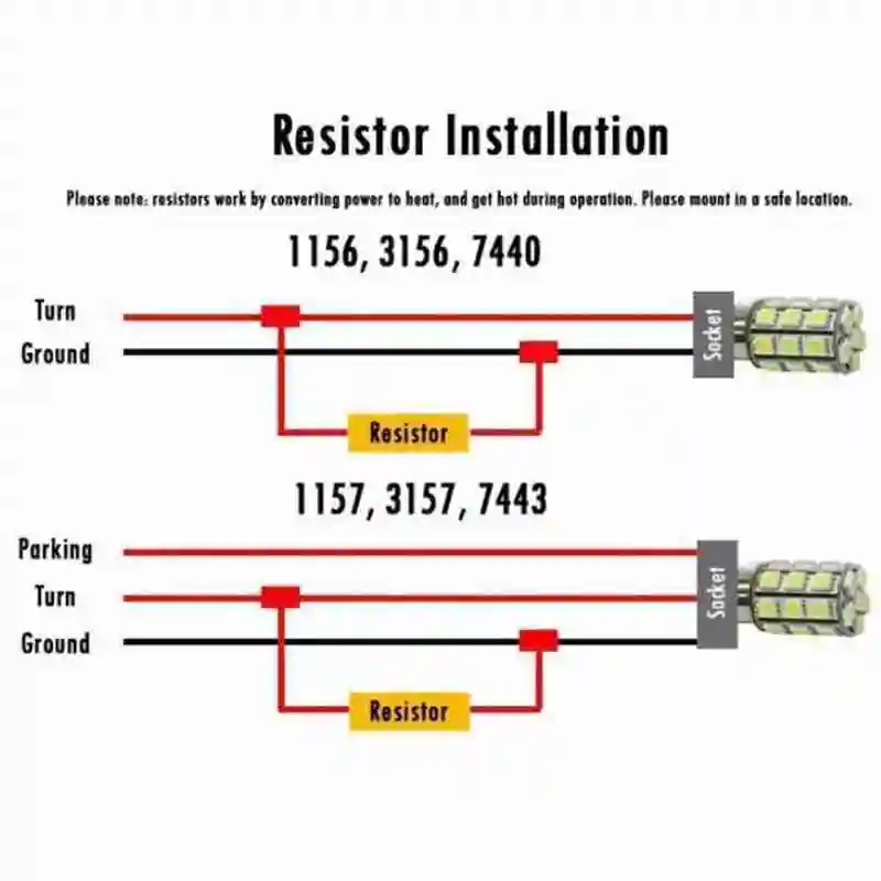 Эти нагрузочные резисторы могут быть очень горячими, так как они соединяют лампы высокой мощности.