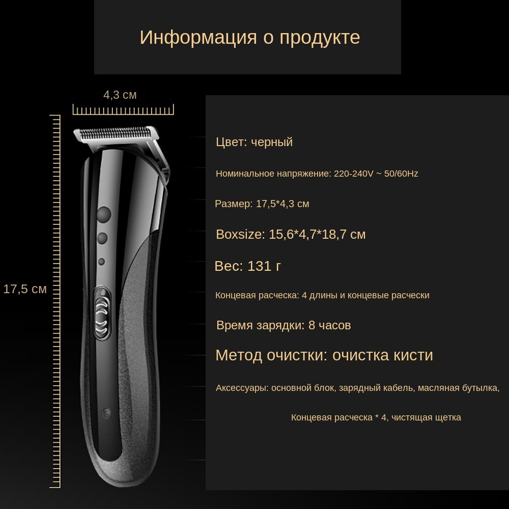 Спецификация Название продукта: система для бритья KEMEI KM-1407 3 в 1 Материал: АБС + углеродистая сталь Цвет: черный Номинальное напряжение: 220-240 В ~ 50-60 Гц Время зарядки: 8 часов Метод очистки: очистка кисти Предел гребень: 4 длинные и короткие лимит (3/6/9/12 мм) Моющаяся головка: Да Особенности 1. Высококачественная головка из углеродистой стали, 30 ° технология изогнутой поверхности с острым углом, держит ножевую головку острым и подходит для кожи, не ржавеет, не повредит кожу, быстро и легко облегает 2. Используется без проводов, удобно в эксплуатации 3. 4 длины предельных гребней, точные до миллиметров, свободно контролировать ограниченную длину, легко управлять, новичок также может разработать профессиональную прическу Посылка включает в себя 1 хост 1 x головка для стрижки волос Головка триммера для носа-1 шт. 1 x Бритва для бороды 1 x щетка для очистки 4 x ограниченная расческа 1 x зарядный кабель 1 x Руководство пользователя 1 x бутылка для масла