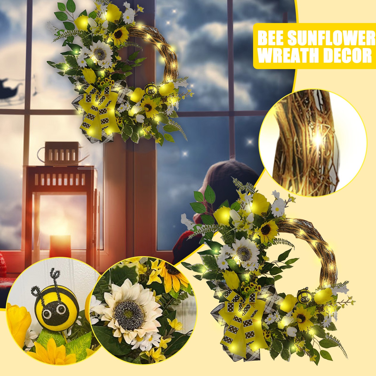 22 "пчелиный венок из подсолнухов, домашний декор для передней двери, стены, окна, подходит для наружного, внутреннего