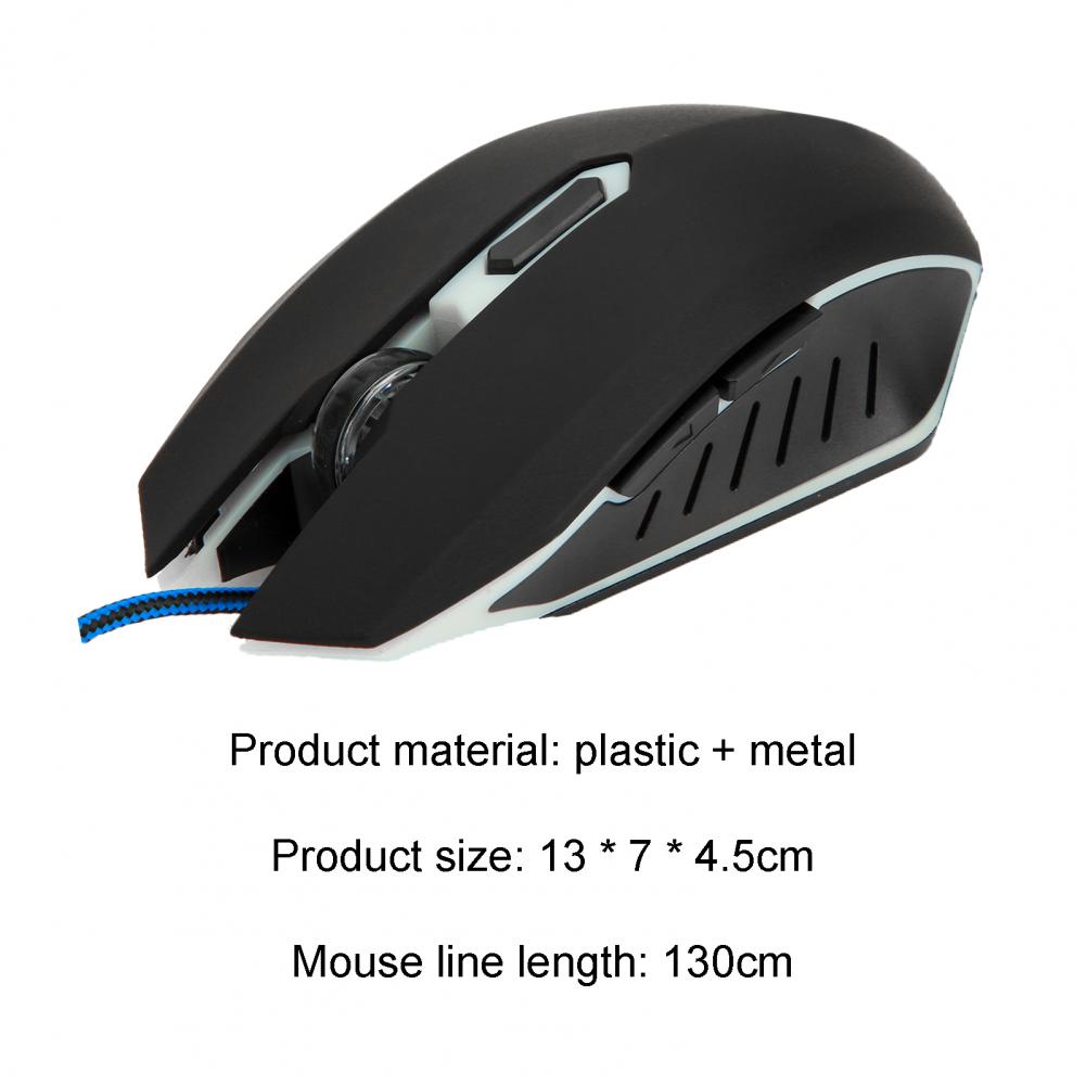 Длина Проводная мышь-13 см, ширина-7 см, при росте 4,5 см, и его длина кабеля составляет 130 см.