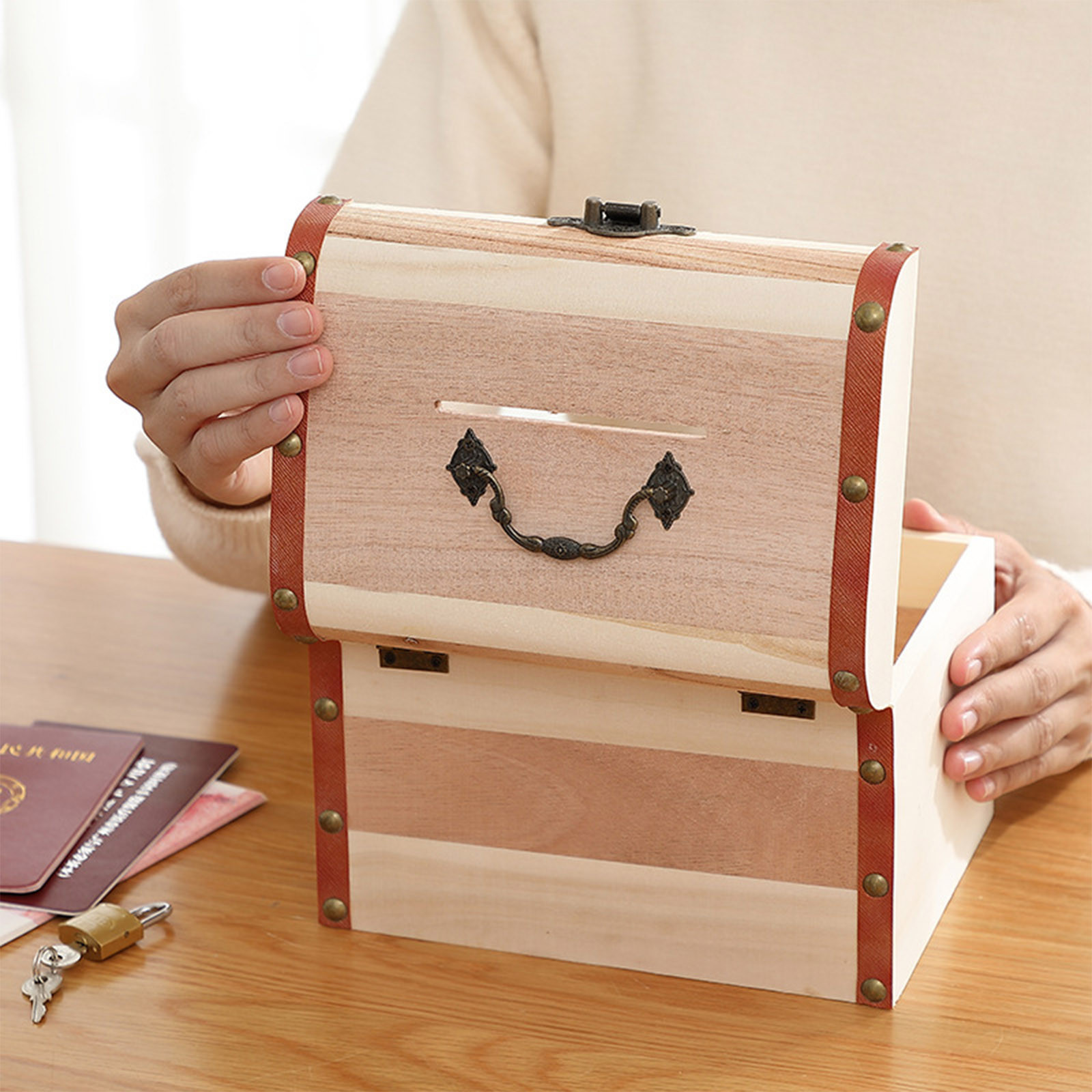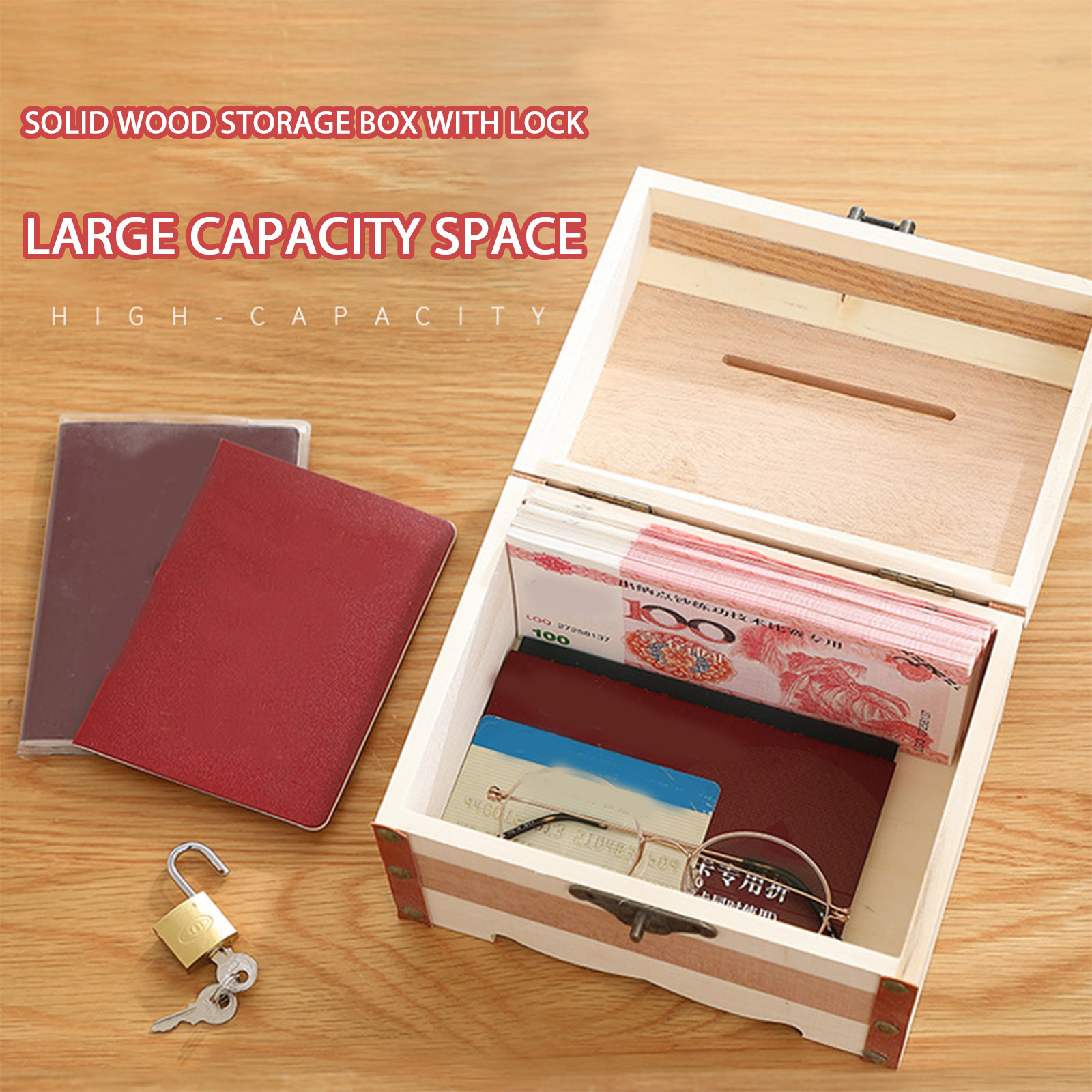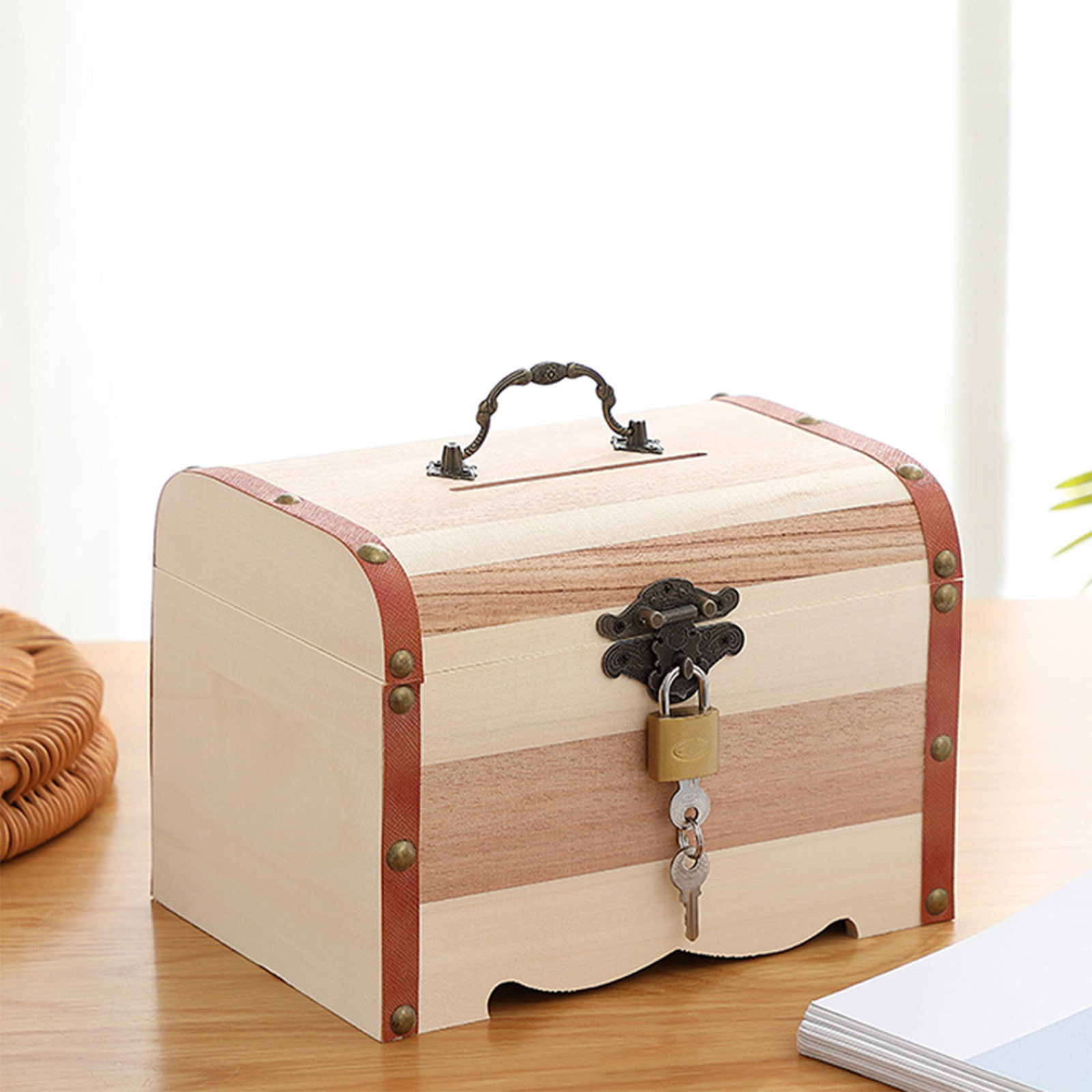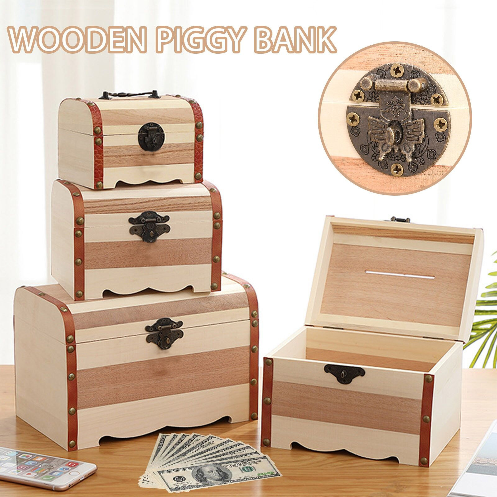 ДеревянныйПигг YБанка Сейф деньги коробка экономия с замком резьба по дереву ручной работы