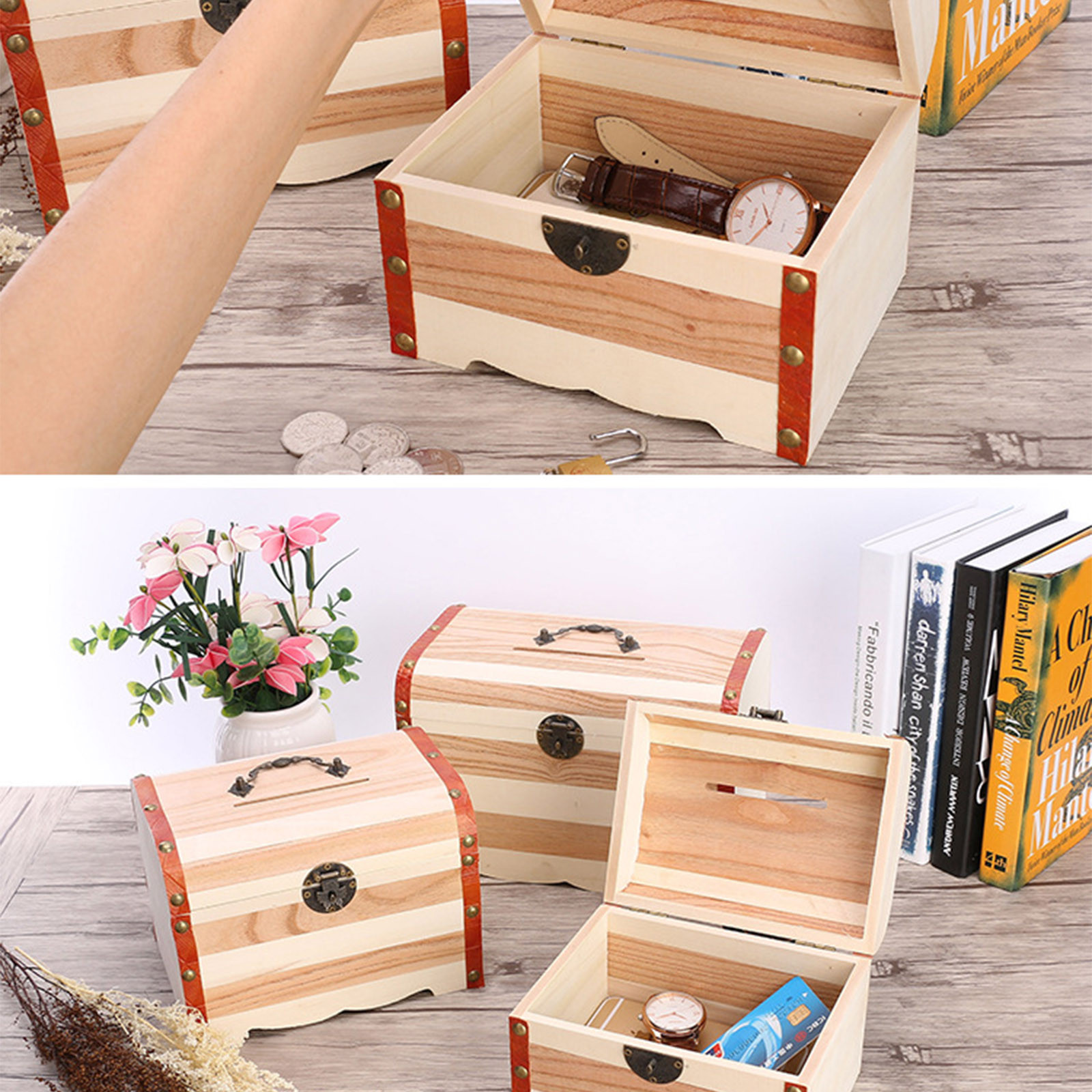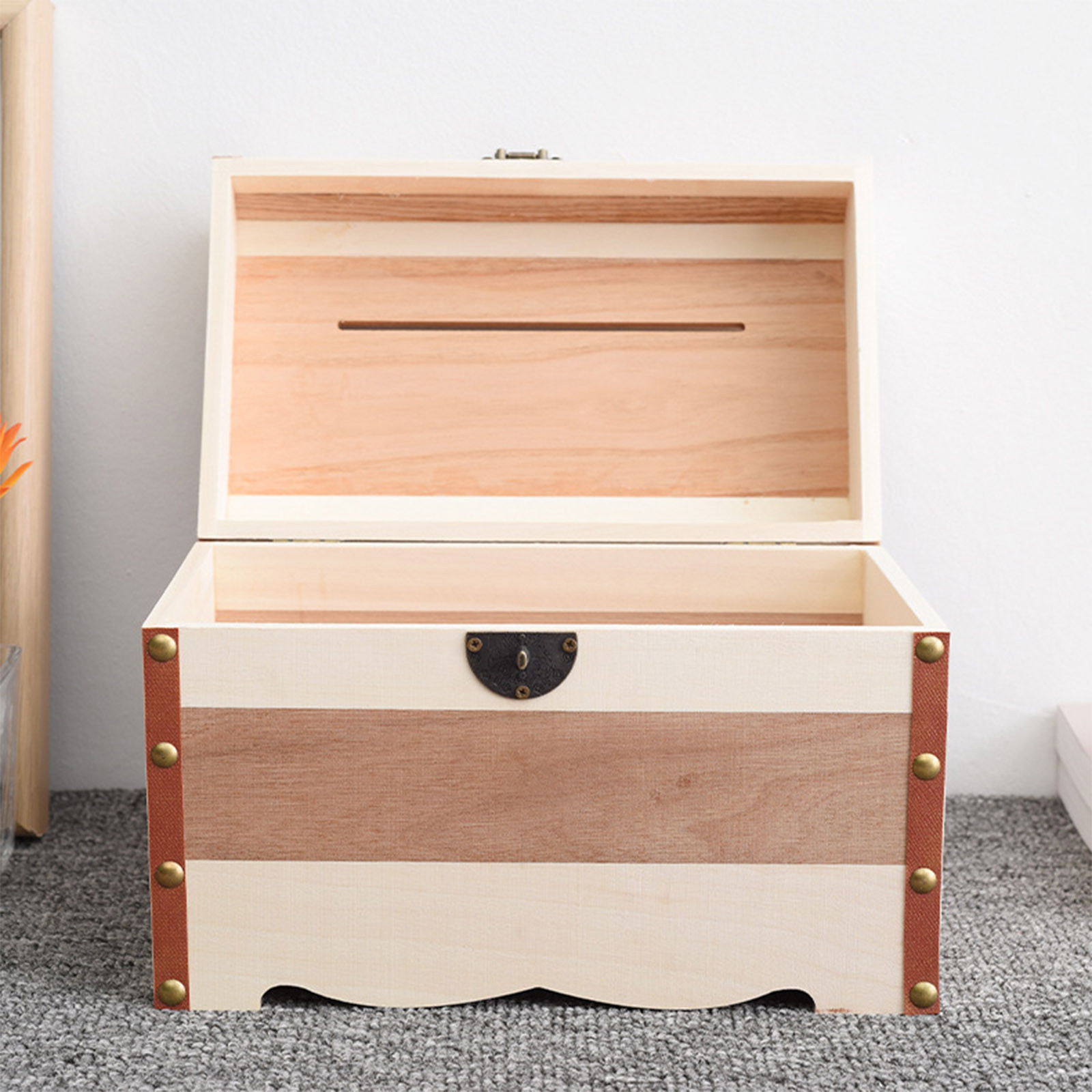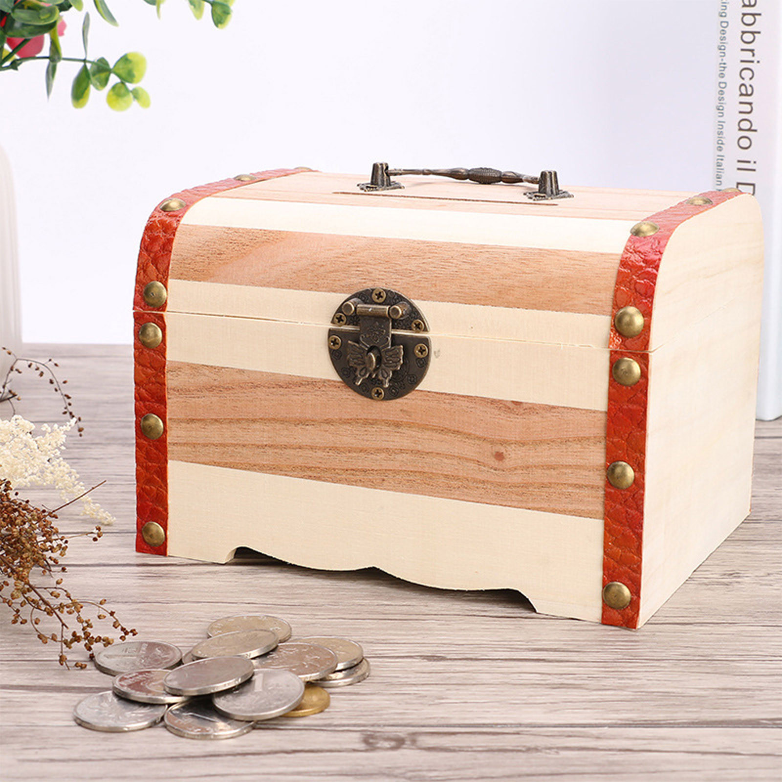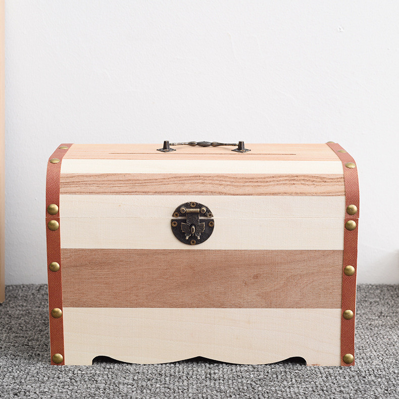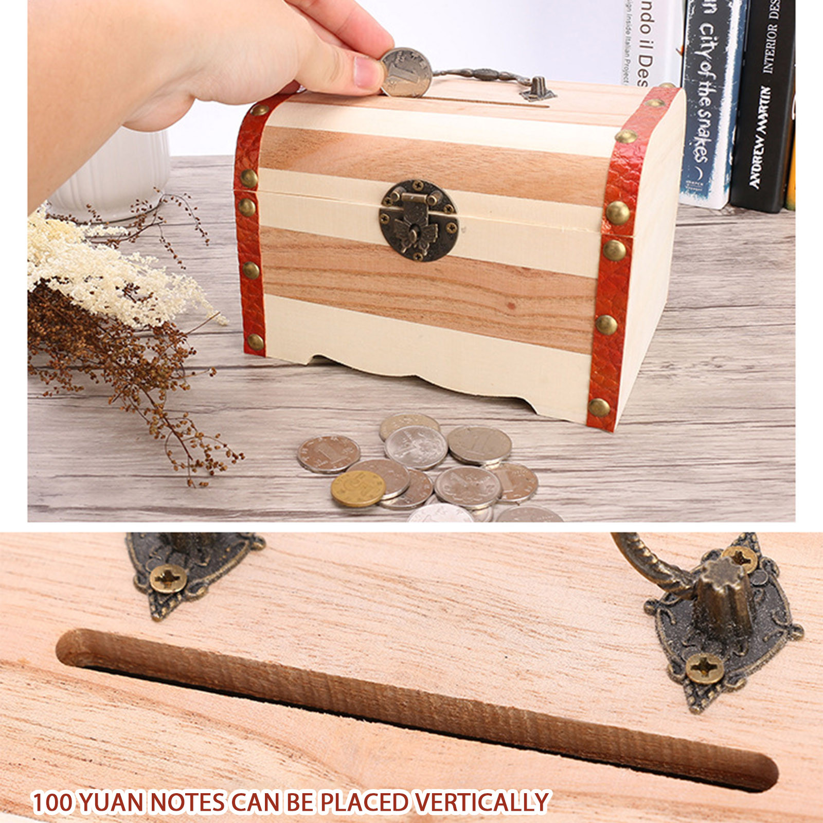 ДеревянныйПигг YБанка Сейф деньги коробка экономия с замком резьба по дереву ручной работы