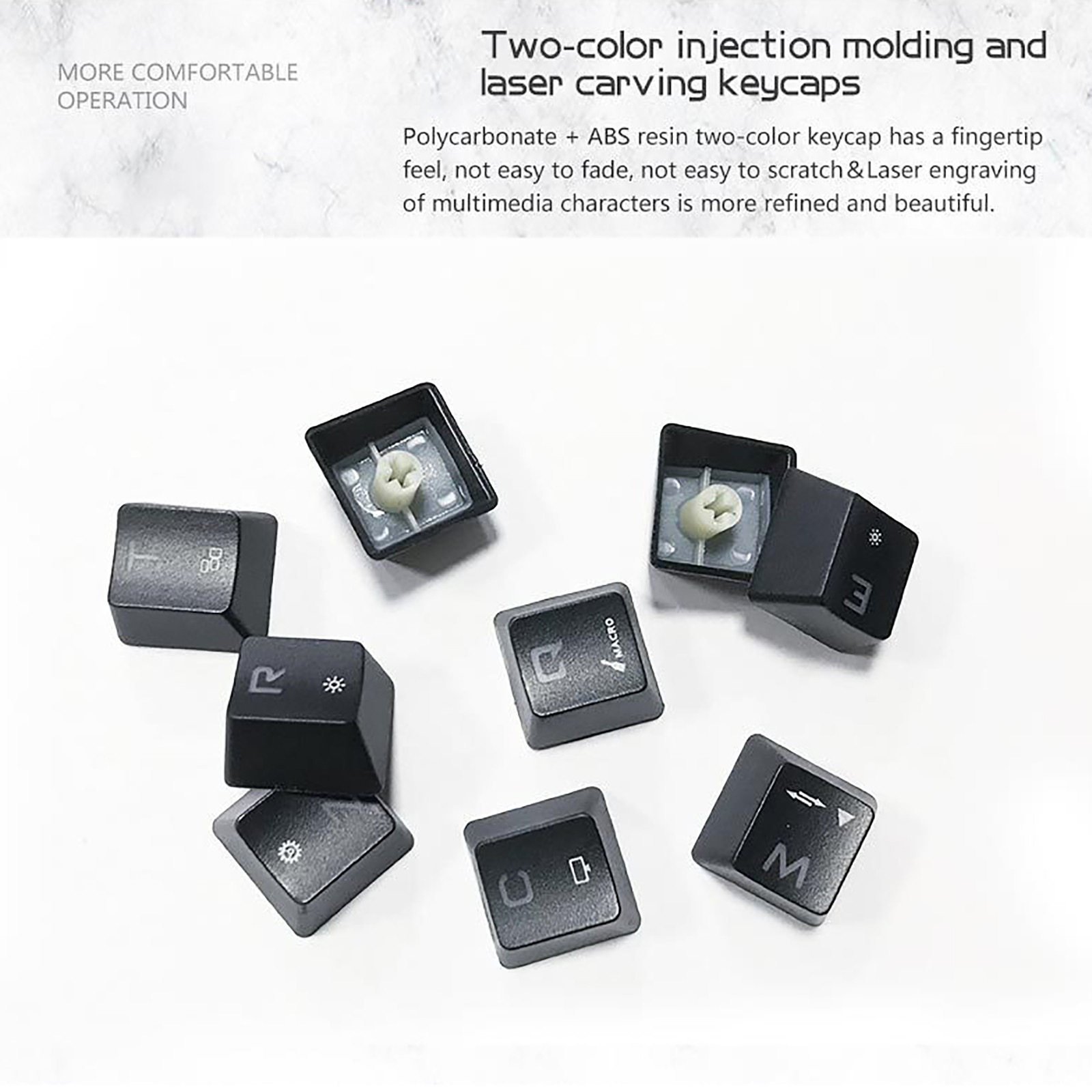 Качество термопластичного профиля из АБС-пластика, тонкий двухцветный, прозрачный дизайн, комфортные ощущения, не легко смазывать, не липкий отпечаток пальца.