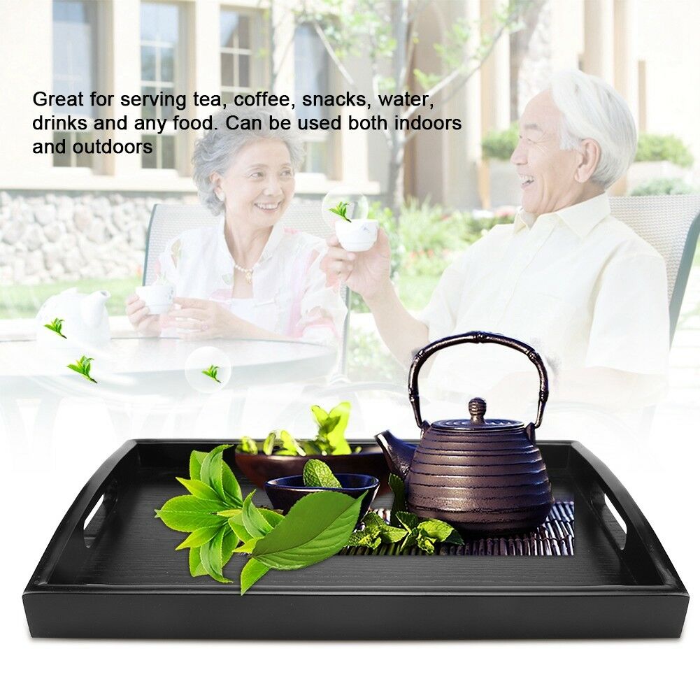 Поднос большой черный деревянный прямоугольник поднос для еды дворецкий подносы для завтрака с ручками легко захватывать TRYC889