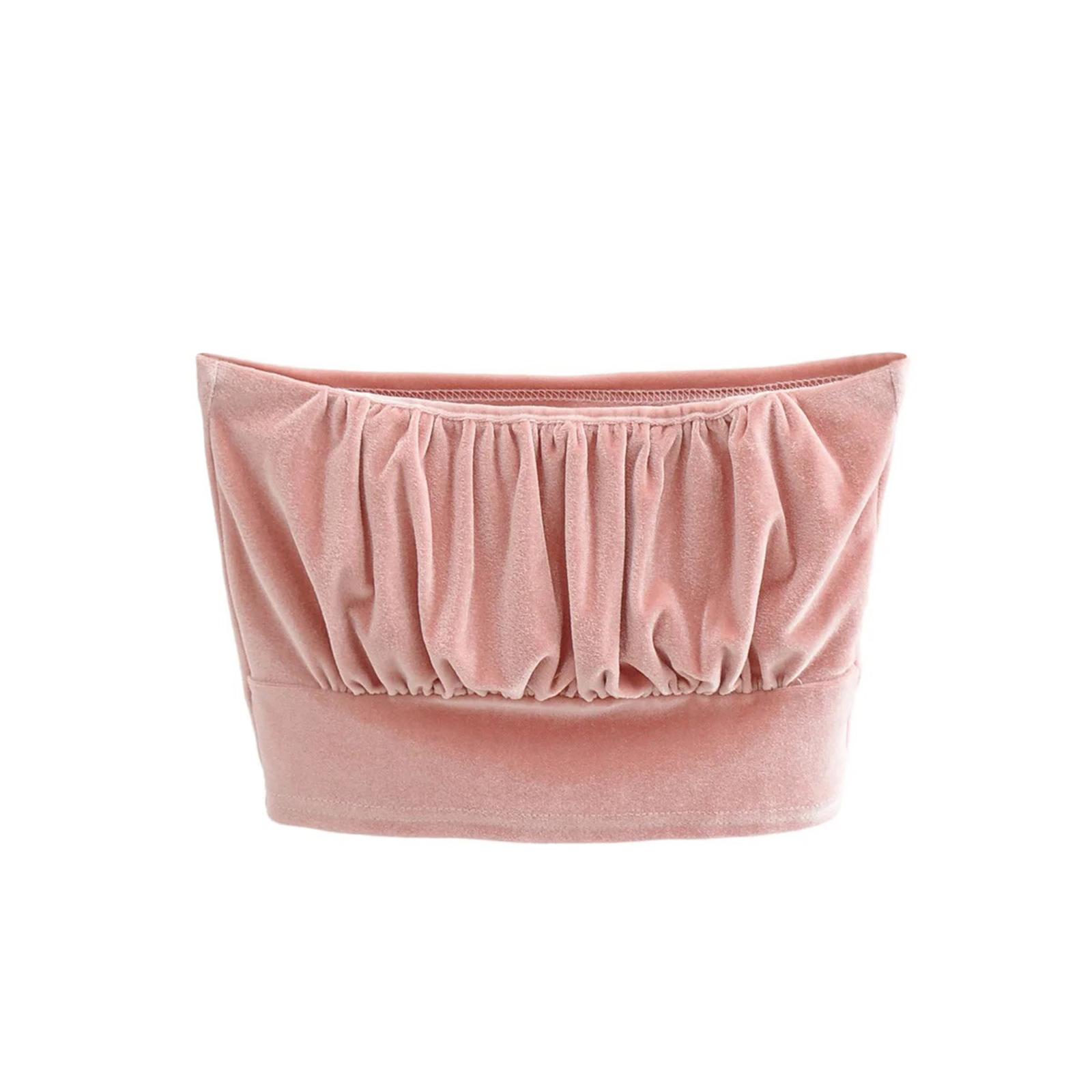 Женское сексуальное бархатное бюстье бандо с рюшами, эластичные Короткие топы без рукавов без бретелек