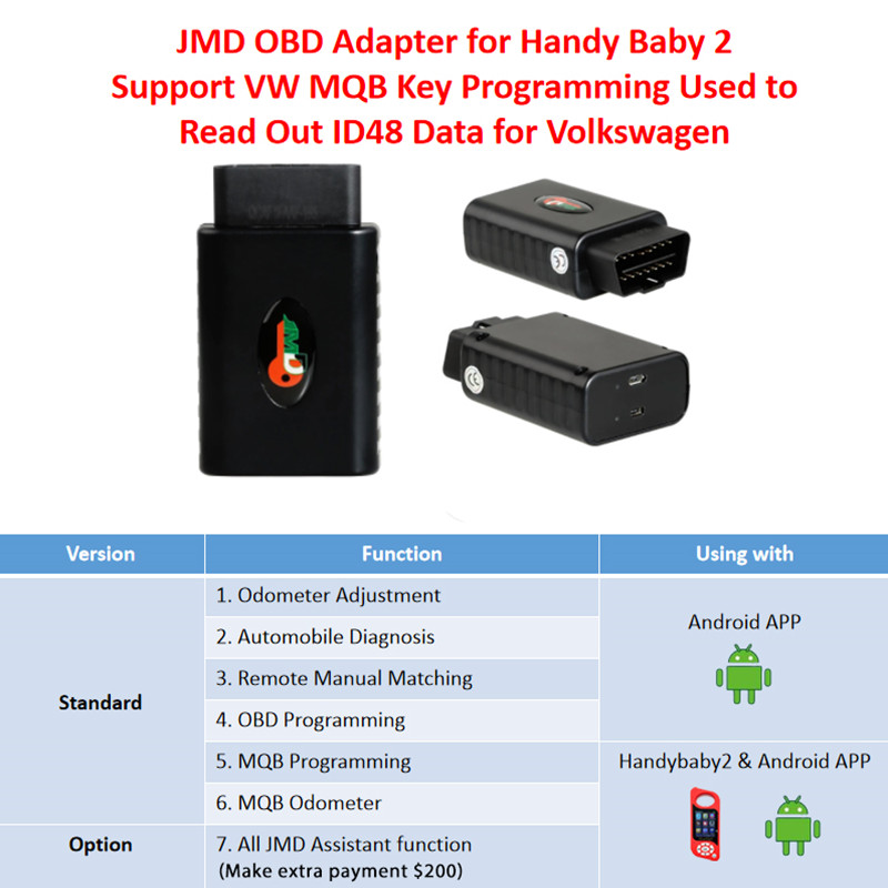 JMD Handy Baby 2 Ebaby JMD OBD адаптер Считывание данных ID48 с MQB одометром программирование для Audi/Volkswagen автомобили все ключи утеряны