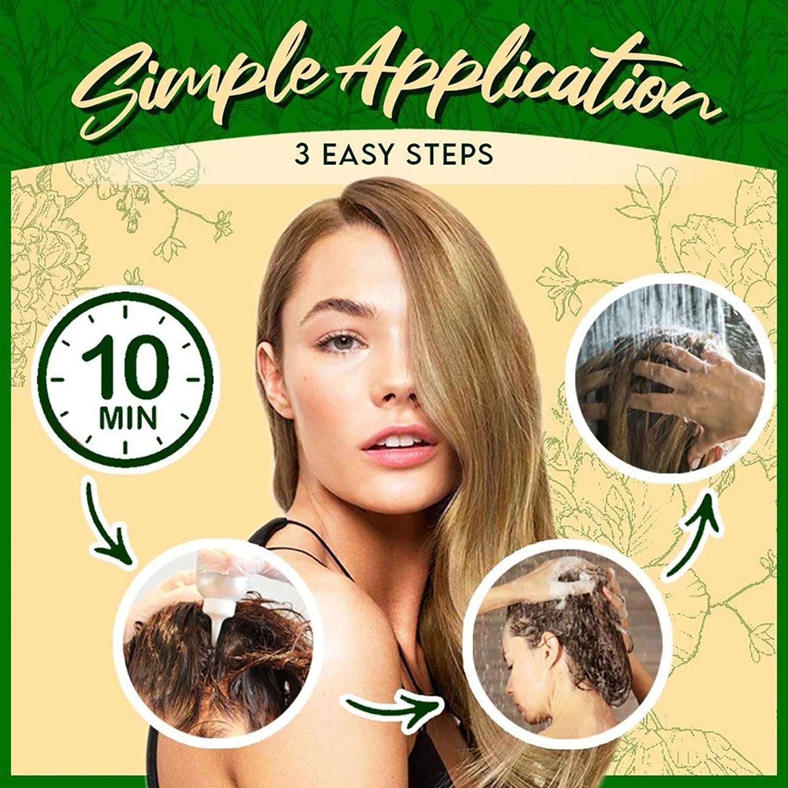 Освежайте волосы Цвет отСерыйК любым цветамВы хотите в течение нескольких минут с нашим Революционный«3 в 1» Травяной шампунь для окрашивания волос!
