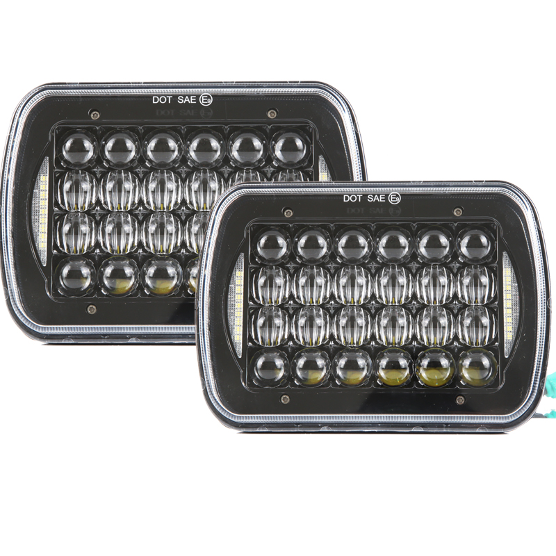2PCS 5x7" 7X6" Inch Retangular Black LED Square Headlight Hi Lo Headlamp for Jeep Cherokee XJ Wrangler Truck 4X4