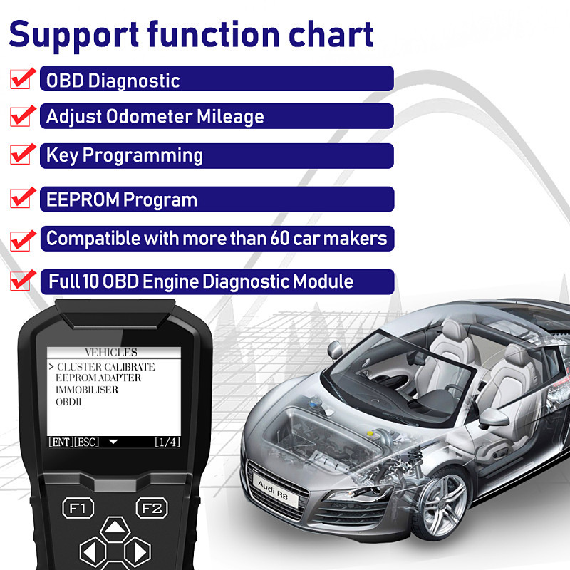 1. Топ 12 причин, чтобы получить OBDPROG MT601 автоматический ключевой программист:1. Поддержка программирования стандартных клавиш;2. Поддержка считывает ключи от памяти иммобилайзера;3. Поддержка программирования иммобилайзера;4. Поддержка механического программирования номера ключа;5. Поддержка программирования идентификационных номеров транспортного средства;6. Простота в эксплуатации с помощью программируемого меню;7. Поддержка программирования автомобильного пульта дистанционного управления;8. Поддержка считывателя ПИН-кода Immo;9. Поддержка регулировки пробега ОДОМЕТРА (через obd);10. С полной и прочной базой данных для наиболее важных автомобилей;11. Поддержка обновления с помощью веб-загрузки;12. Поддерживает чип EEPROM read; Примечание:1. Язык: только английское программное обеспечение2. Код продавца: 852000013. Полная конфигурация (C + D + E): иммобилайзер + Программное обеспечение OBD и регулировка одометра + адаптер EEPROM4. Не поддерживает функцию чипа Toyota G4. Он не поддерживает индийские автомобили и функцию VW 4th и 5th immo, если вы не уверены, поддерживает ли ваш автомобиль или нет, пожалуйста, свяжитесь с нами, прежде чем сделать заказ, мы проверим для вас. 2. Покрытие транспортного средства OBDPROG MT601: Чип EEPROM read: EEPROM ADAPTER V30.40 Иммобилайзер: для ACURA, для AUDI, для BAIC, для BESTURN, для BRILLIANE, для BYD, для CHANGAN, для CHANGHE, для CHERY, для CHRYSLER, для CITROEN, для DFLZ, для FPV, для DS, для FORD, для GEELY, для G-M, для GREATWALL, для HAFEI, Для HAIMA, для HAWTAI Motor, для HONDA, для HONGQI, для HUAPU, для HYUNDAI, для INFINITI, для JAC, для JAGUAR, для KIA, для LANDROVER, для LEXUS, для LIFAN, для LINCOLN, для LUFENG, для MAZDA, для MG, для MITSUBISHI, для NISSAN, Для OPEL, для PEUGEOT, для PORSCHE, для RENAULT, для ROEWE, для SAIC ENGLANG, для SEAT, для SKODA, для SMART, для SSANGYONG, для SBARU, для SUZUKI, для TOYOTA, для VW, для YOUNGLOTUS, для ZZMAZDA, для ZZNISSAN; OBDII: OBDII V30.02 для диагностики Одометр через OBD: Для AUDI, для VW, для BENZ, для Chrysler, для Ford, для G-M, для Porsche, для Skoda, для Seat3. Отзывы о функциях: OBDPROG MT601 IMMO & Remote programming Отзывы:Для Maruthi для Suzuki key programming в 2 мин,Для Hyundai I 20 key programming done,Для Hyundai verna fludic remote сделано за несколько секунд. Да, это может сделать ключ потерян, а также вы можете добавить.Для автомобилей Honda, как изготовление запасных, так и все ключи потеряны и удаленное программирование, до сих пор никогда не потерпели неудачу.Для Mitsubishi Pajero 2014. Все ключи потеряны.Для Hyundai i 10 Key ok...Для Hyundai i 10 remote ok.Для Hyundai i 10 grand remote в 2 мин ОКДля honda crv 2008 remote and key okДля jeep cherokee 2008 remote and key okДля mazda cx9 2009 smart key okДля Ford Eecosport 2015 Flip key programming ok...Для Suzuki Ignis 2003 все потеряно ключ, программирование новый ключ ок.Для Hyundai GETS 2007 KEY OKДля HONDA ACCORD 2008 KEY AND REMOTE OKДля Range rover sport hse 2012 кнопка запуска, все ключи lost OK2013 Elantra remote OK2007 для VW Rabbit add key и remote OK2012 город и уезд умный ключ ОК2002 Jetta add key FAIL (транспортное средство не поддерживает msg, не может даже считывать пин-код)2007 Quest add key OK2008 Accord add key OK2016 для Subaru Forester добавить ключи OK, удаленная программа не работаетДля Range rover sport 2007 add key okДля subaru outback 2008 add key okДля infinity fx 2009 smart key okДля Audi a4 2006 rb8 dash дизельный двигатель считывание pin от ecu OkДля Mazda 2 2009 все хорошо сделано за считанные секундыДля Tucson 2014 .. Ключ и Удаленная Программирование ОКДля GMC ACADIA 2008 не может добавить ключ... вы должны сделать все ключи потеряны. ... 12 минут. .. Работа завершенаДля ford raptor 2012 key programing ok не менее 2 клавиш должны иметьДля ford expedition 2011 все ключи lost okAccent 2012 ключ Программирование pin чтение ОКI10 2012 чтение pin и замена ecu (ecm neutrelize) ок все ОКPrado txl и gx 2013 умный ключ Программирование ОКPrado 2012 ключ зажигания Про
