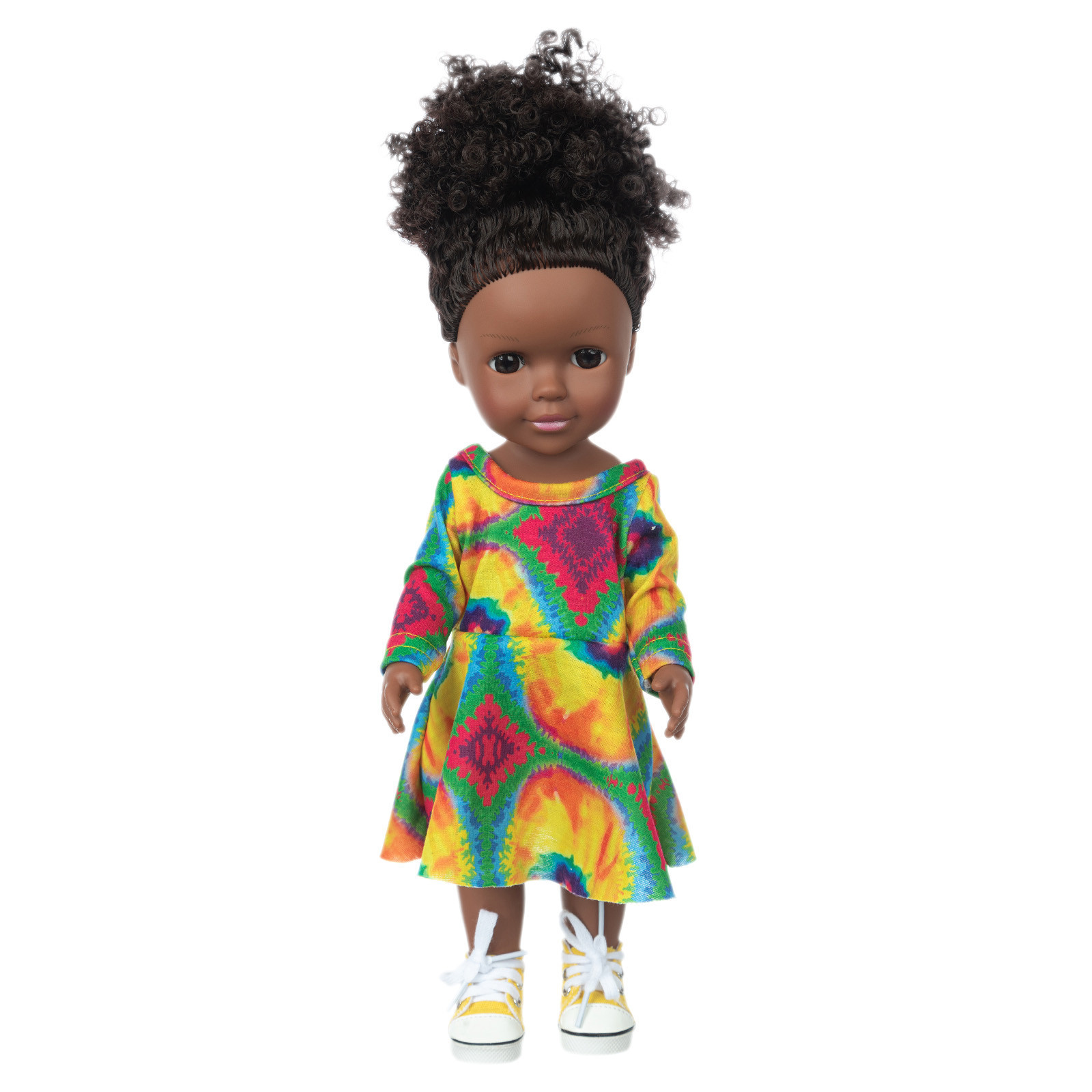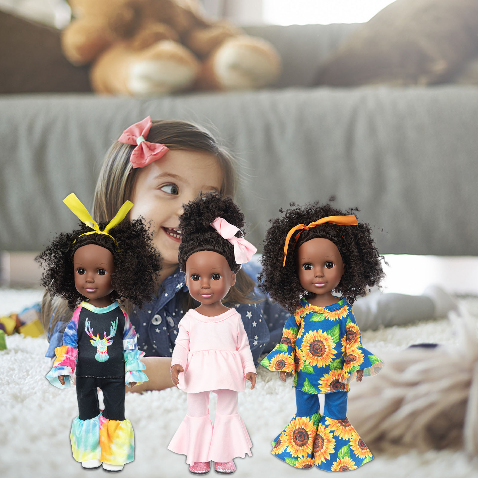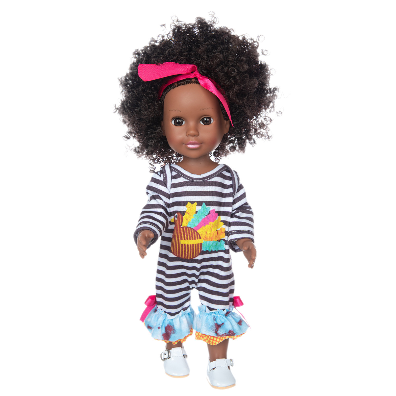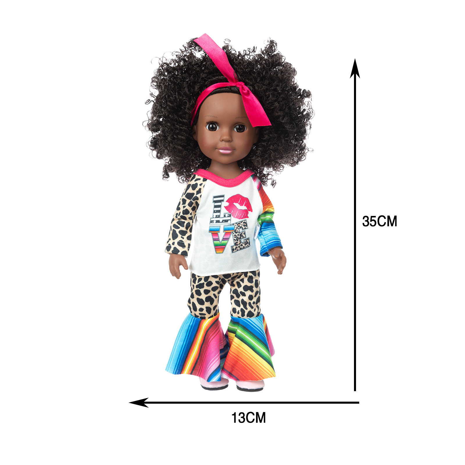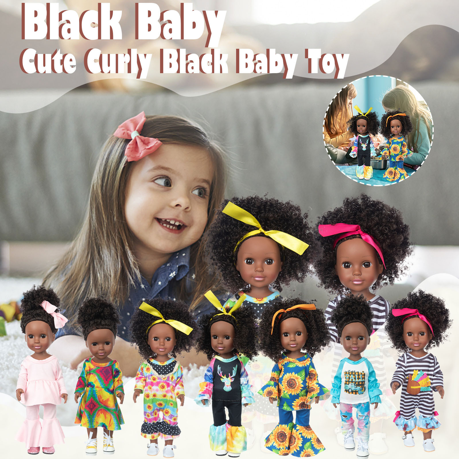 Черный Африканский черный ребенок милый кудрявый черный 14 дюймов виниловая детская игрушка