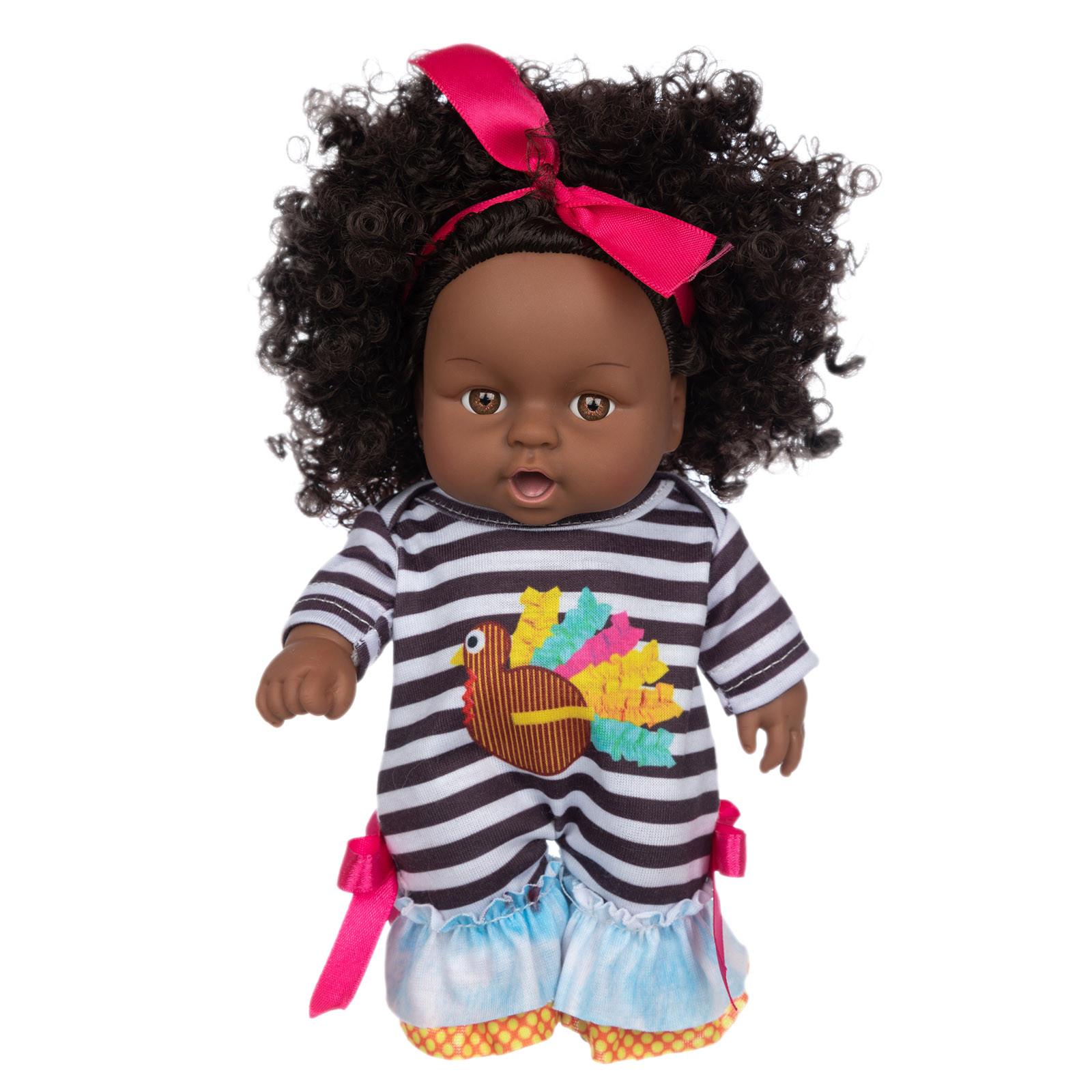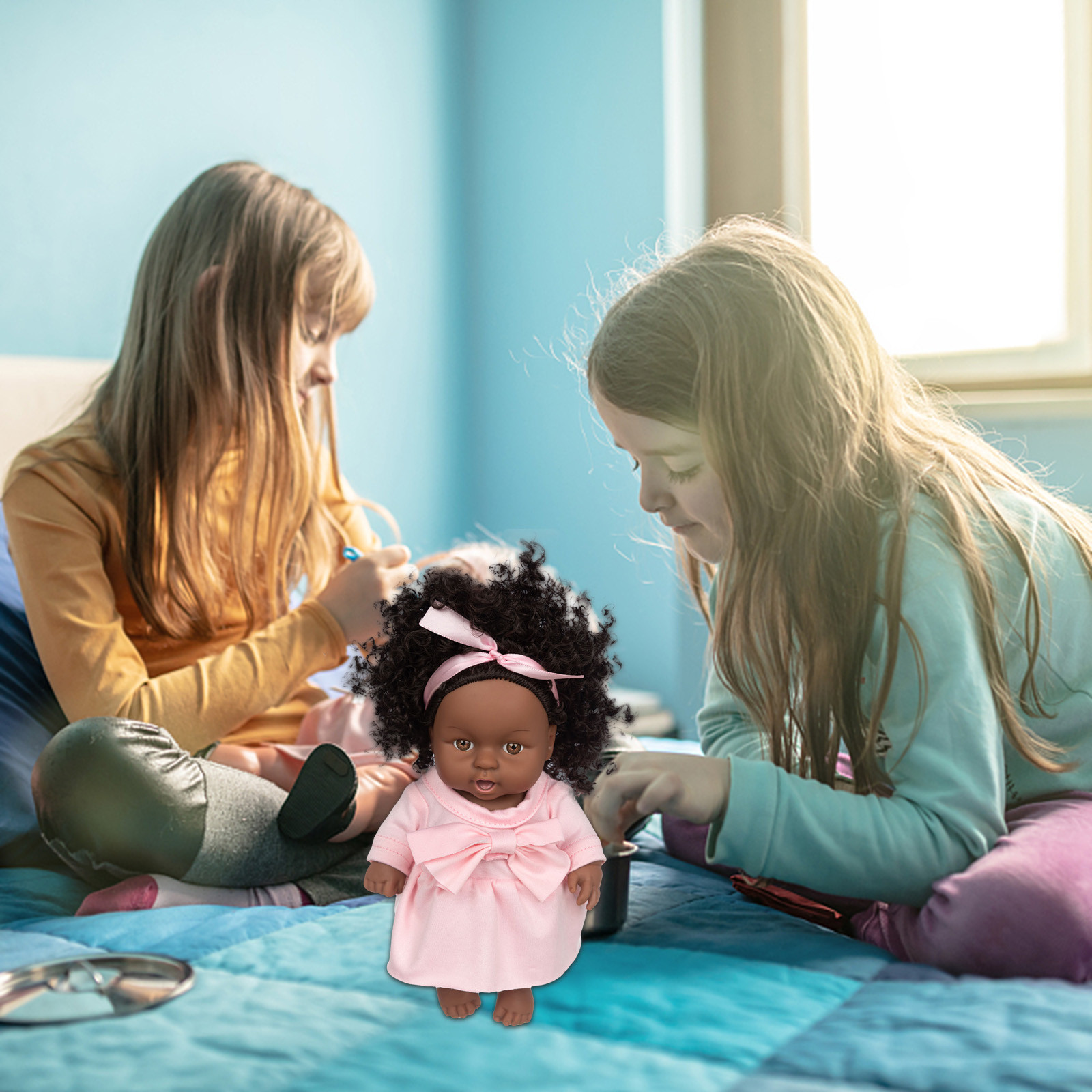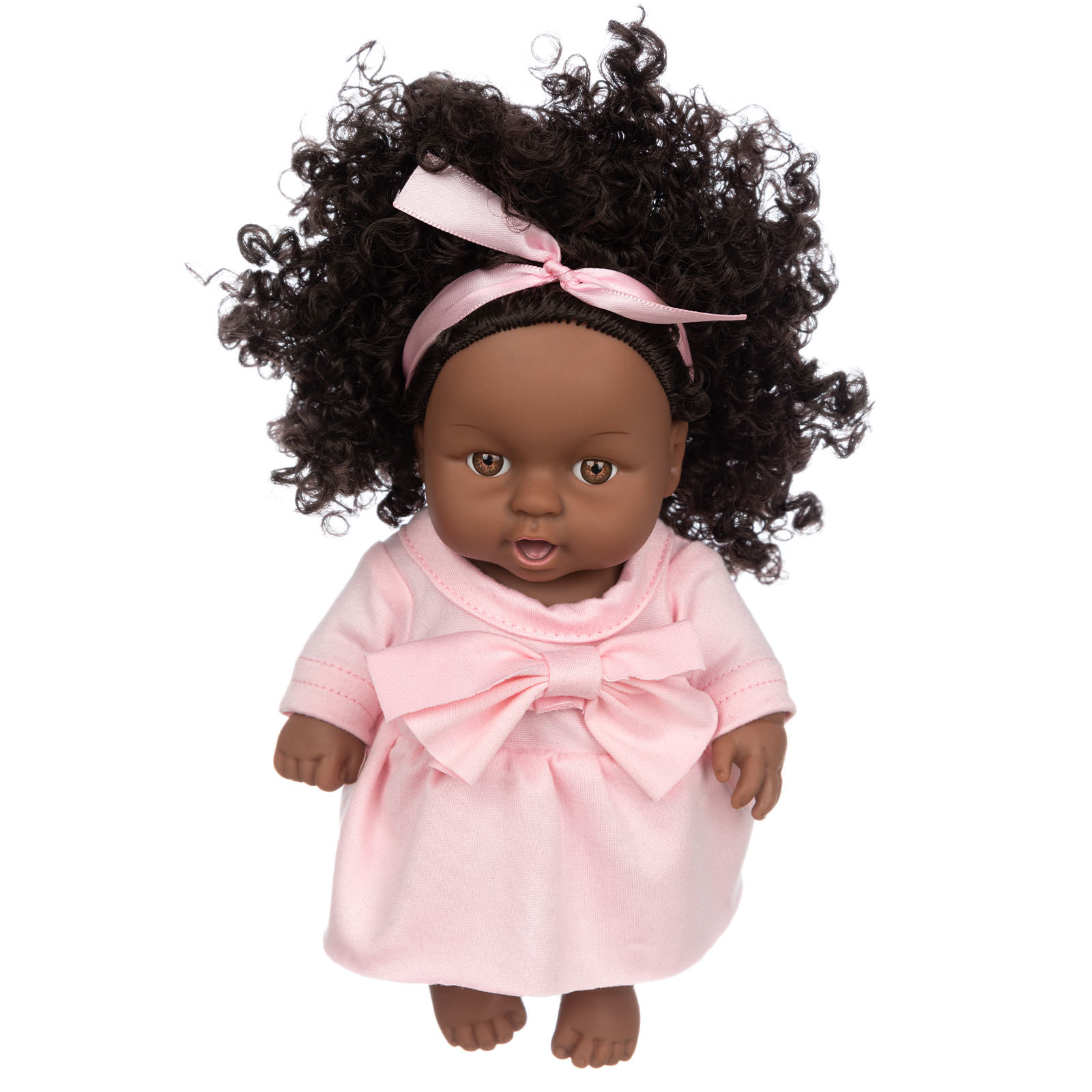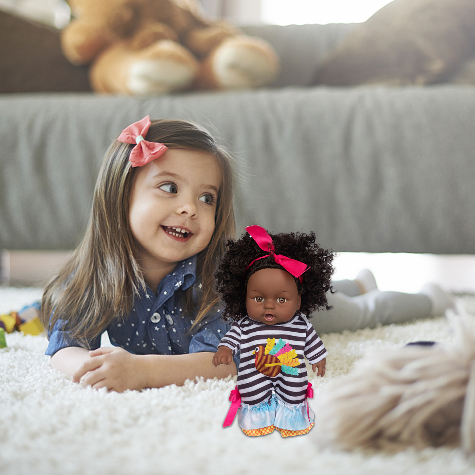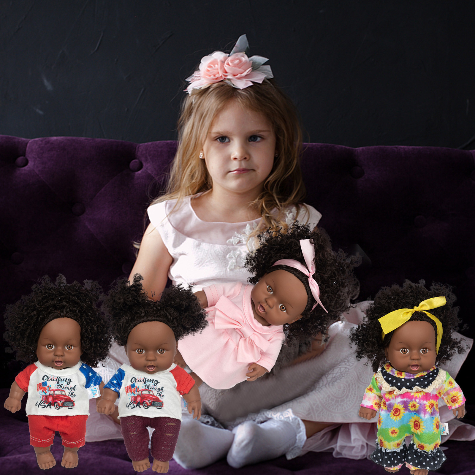 Black Skin African Black Baby Cute Curly Hair Lace Skirt 30CM Vinyl Baby Toy