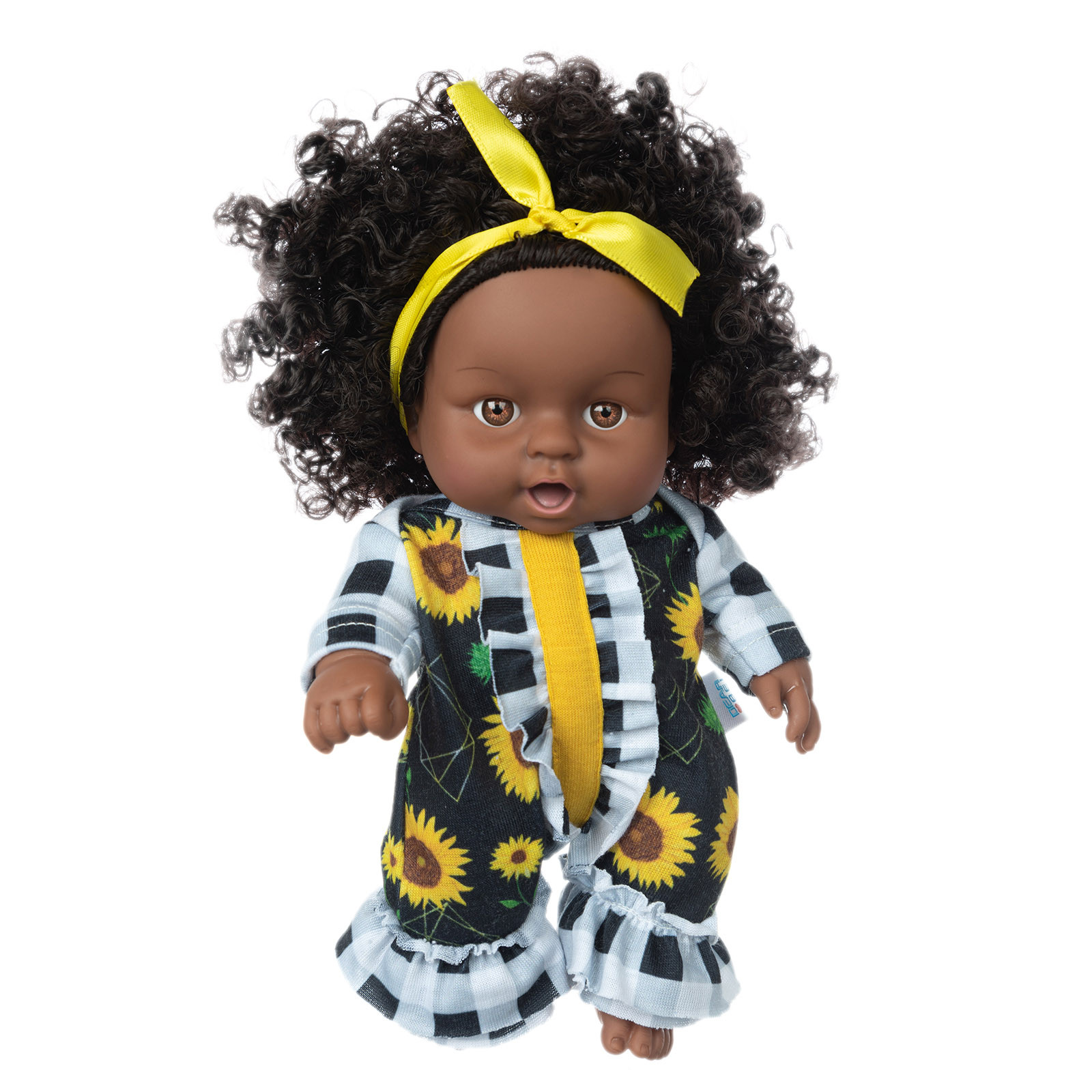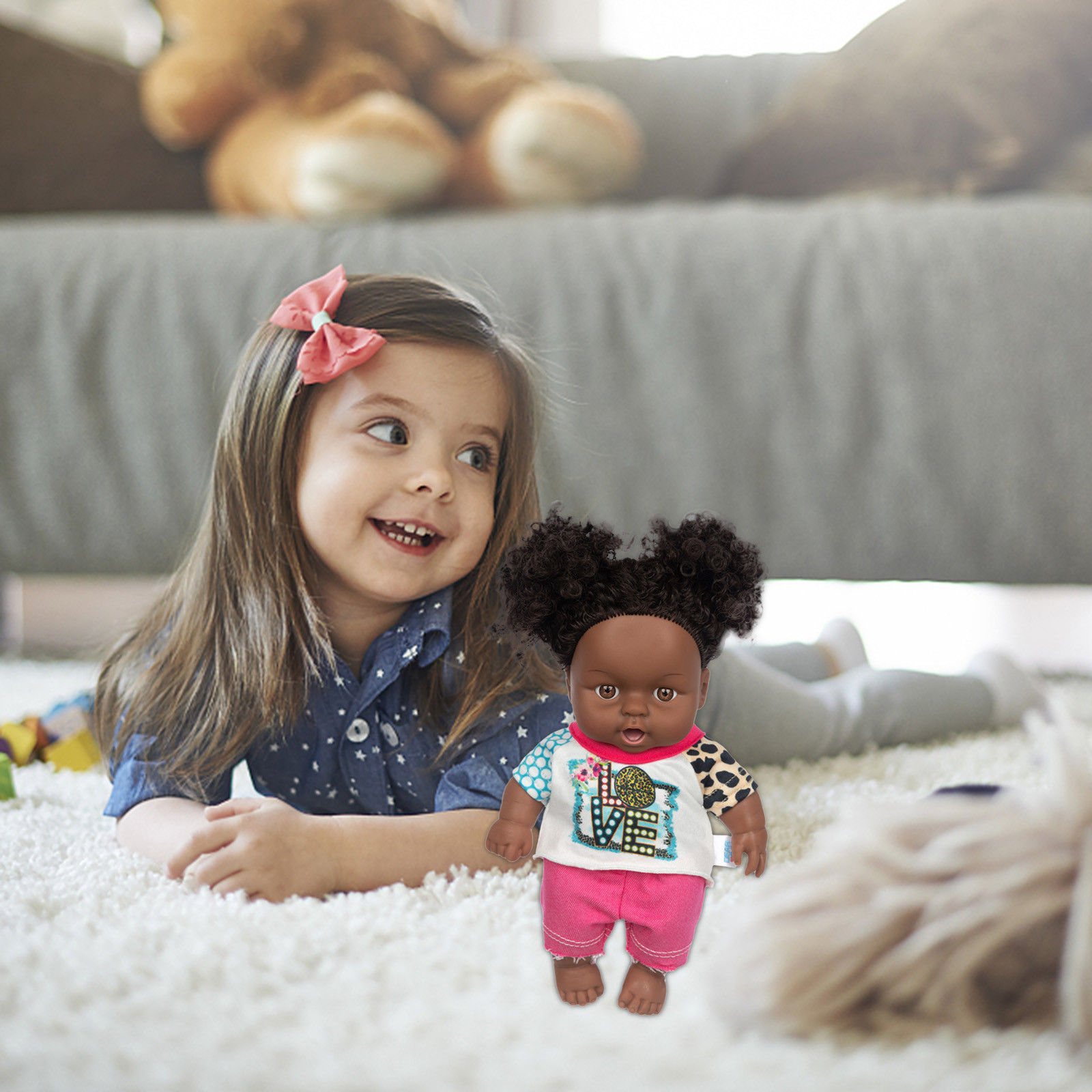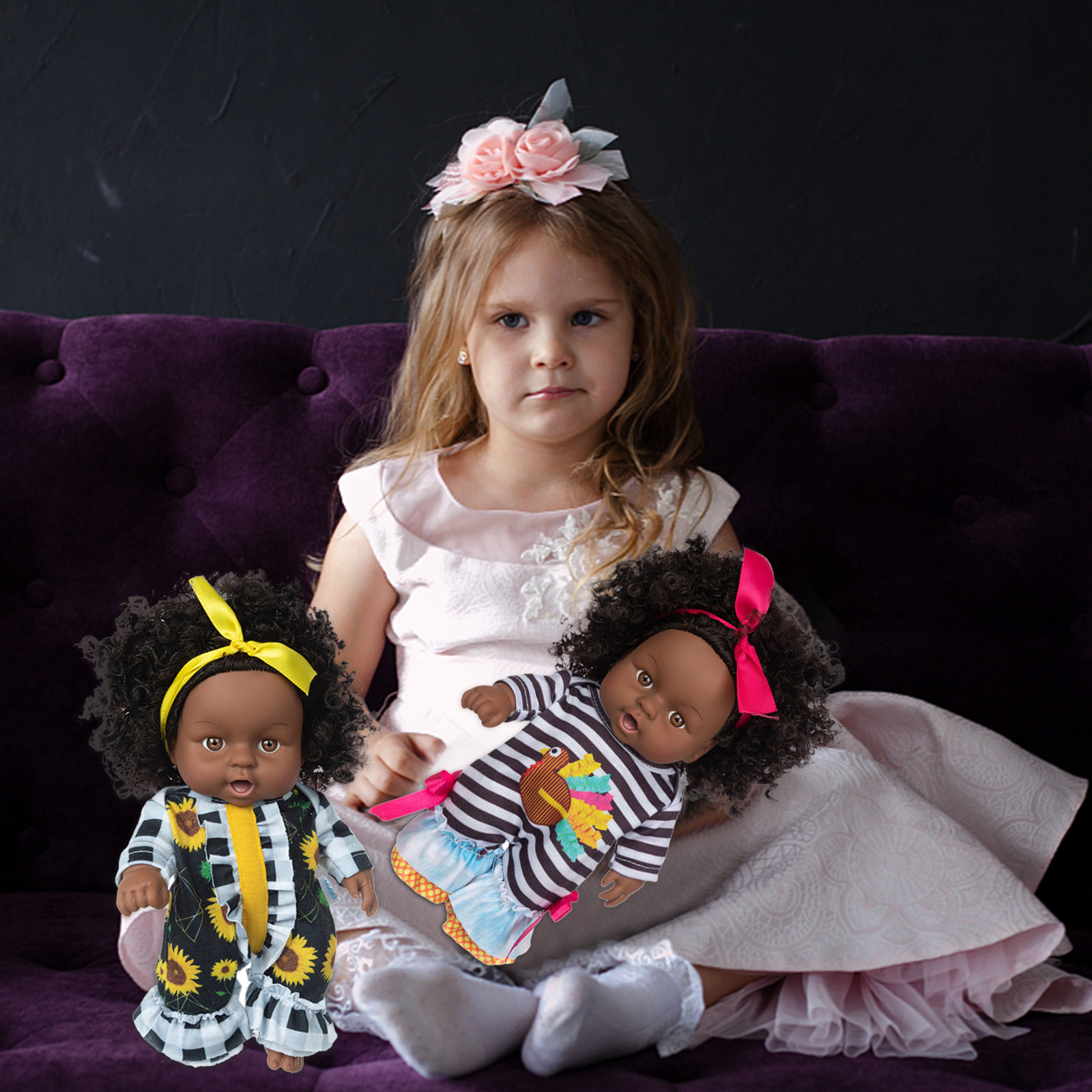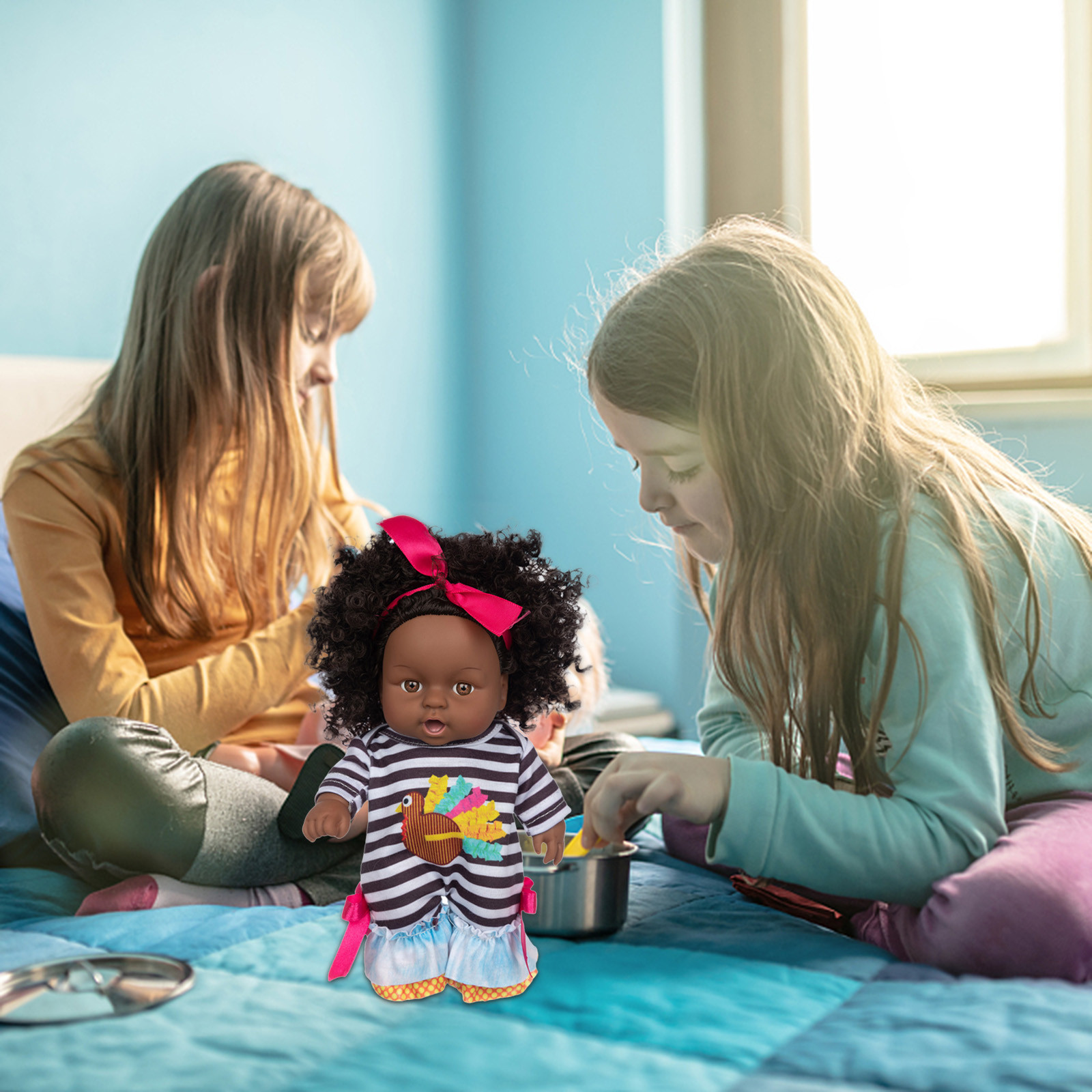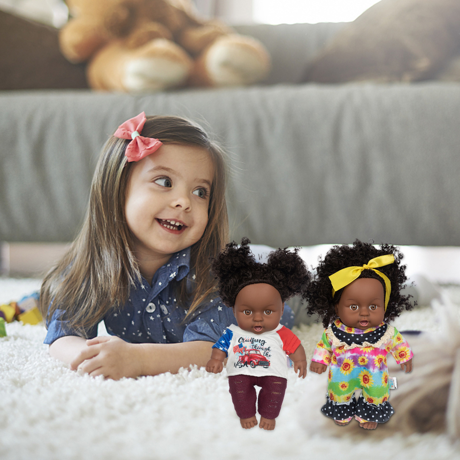 Black Skin African Black Baby Cute Curly Hair Lace Skirt 30CM Vinyl Baby Toy