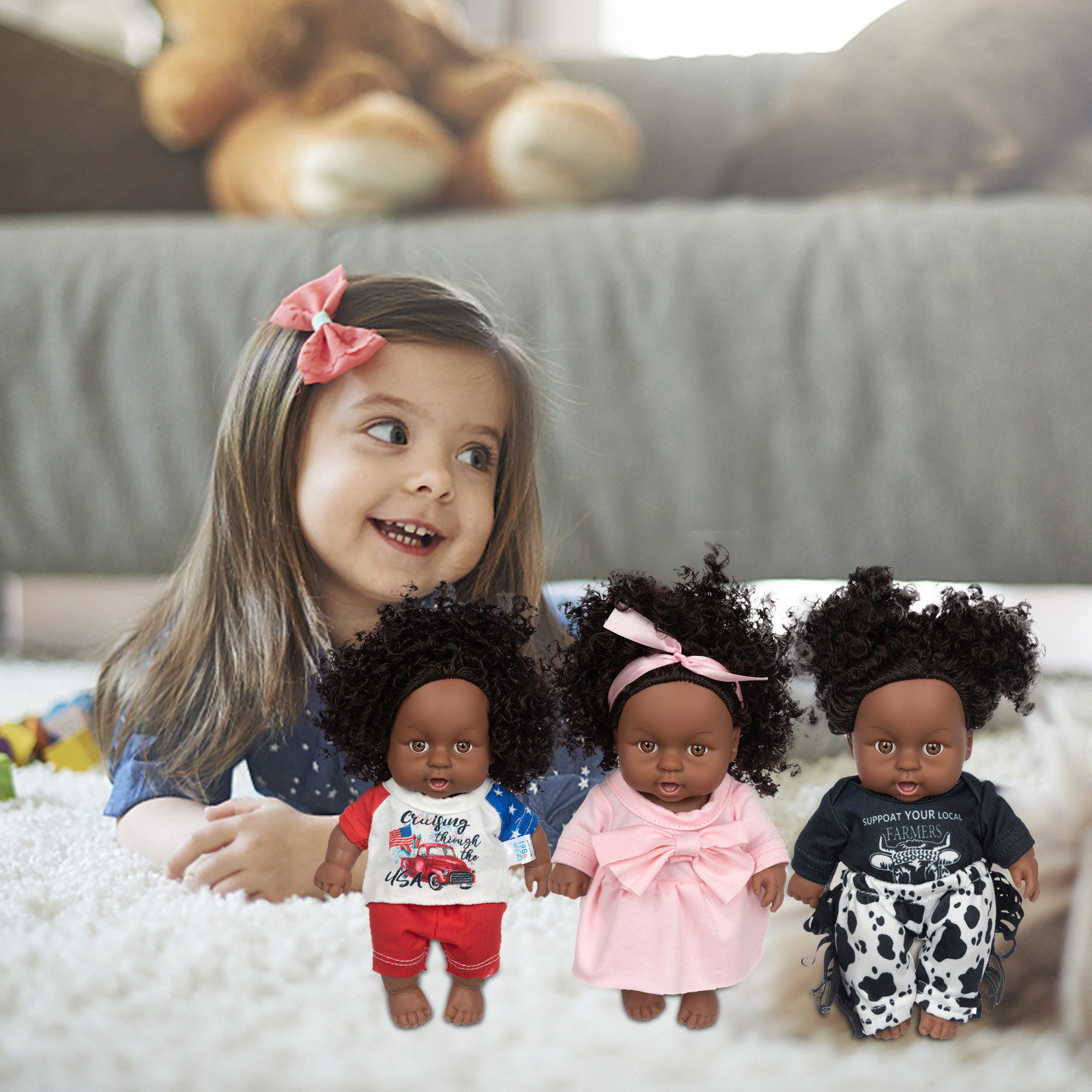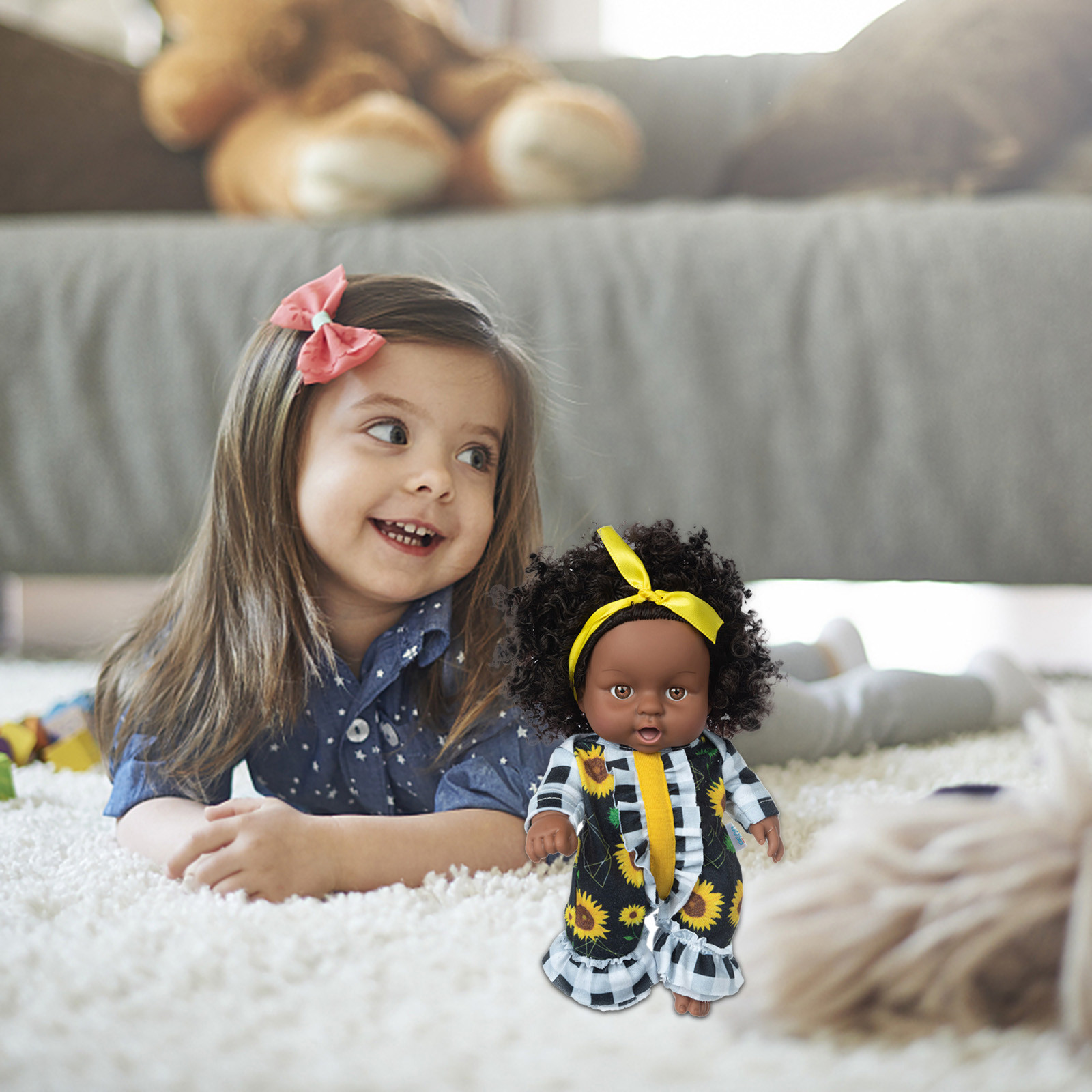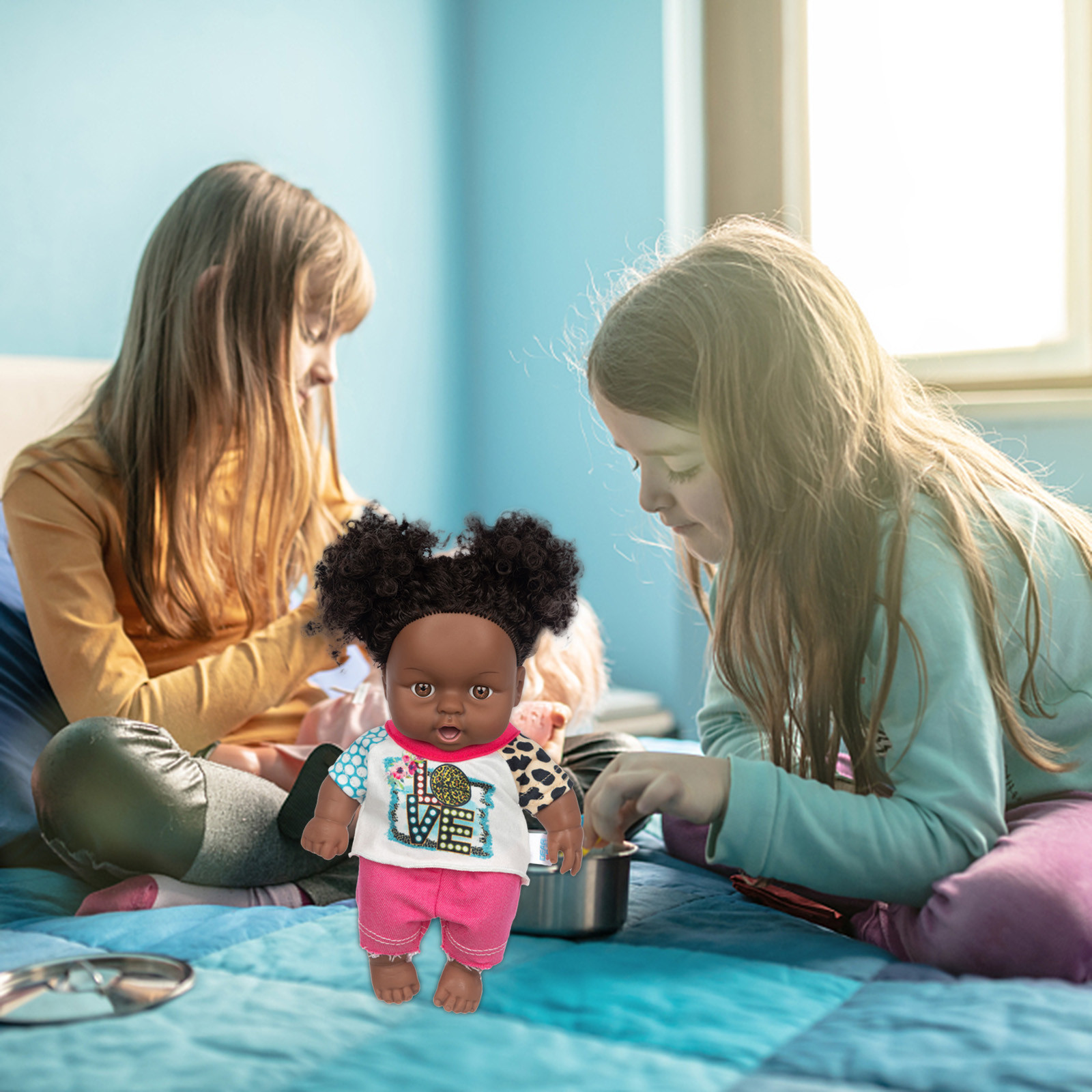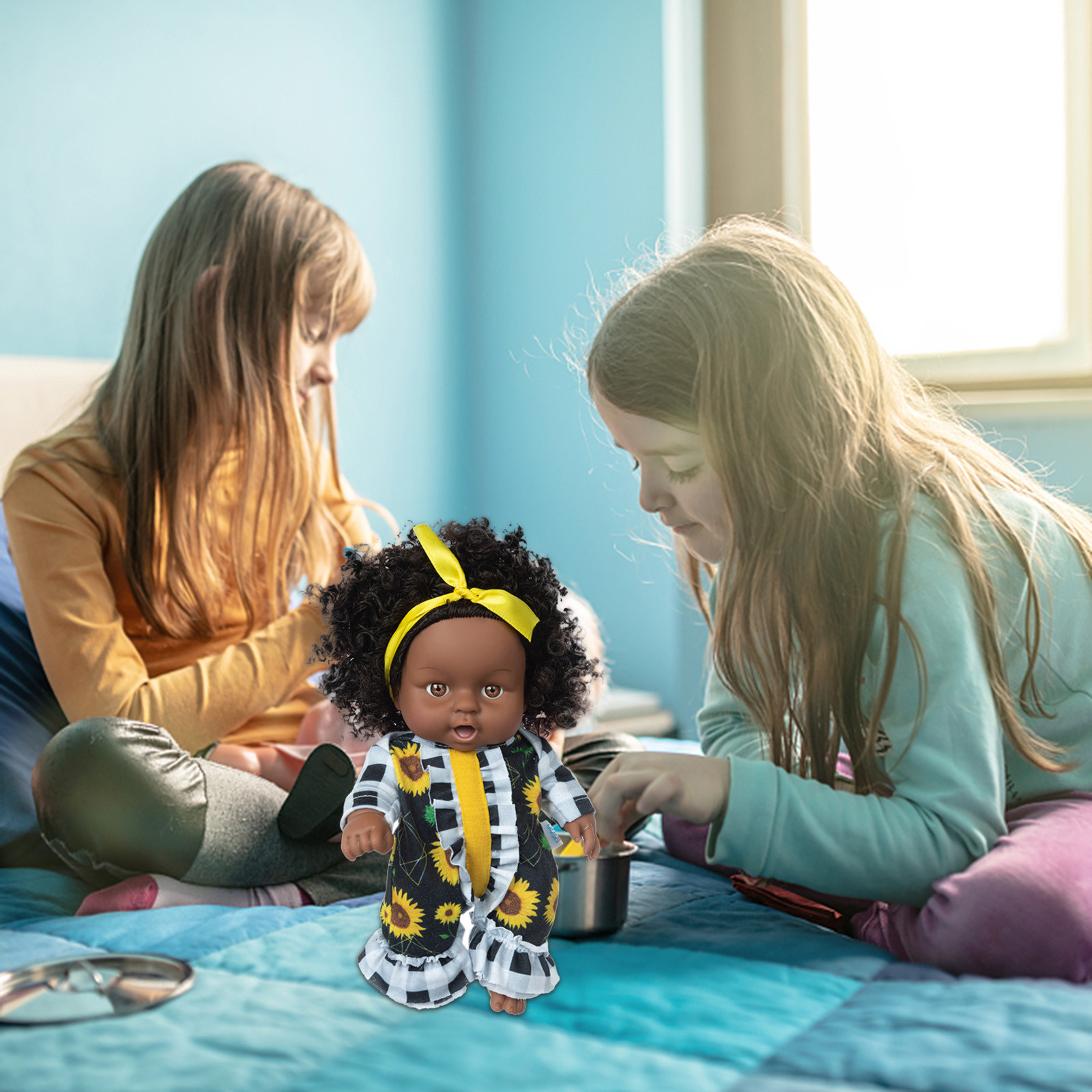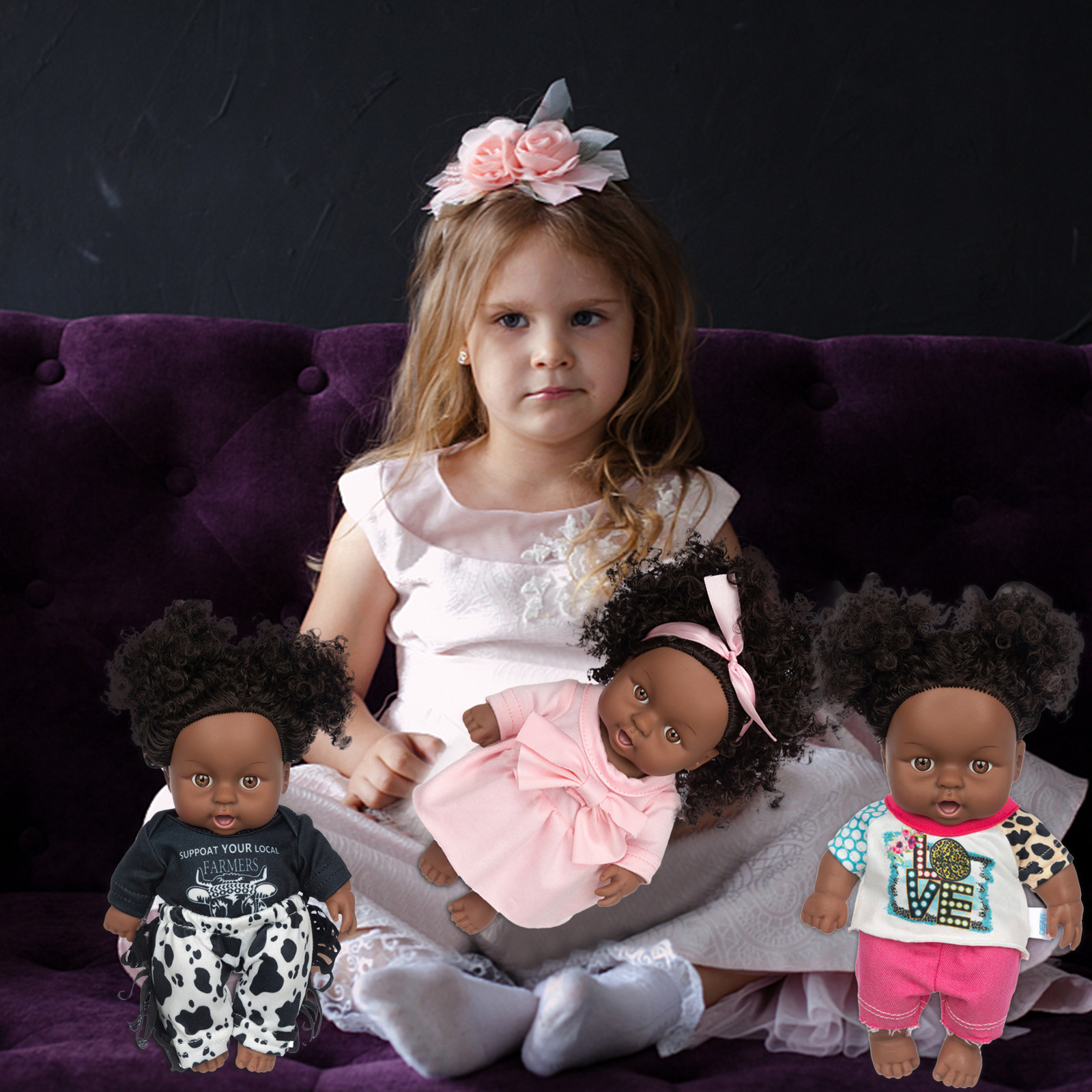 Black Skin African Black Baby Cute Curly Hair Lace Skirt 30CM Vinyl Baby Toy
