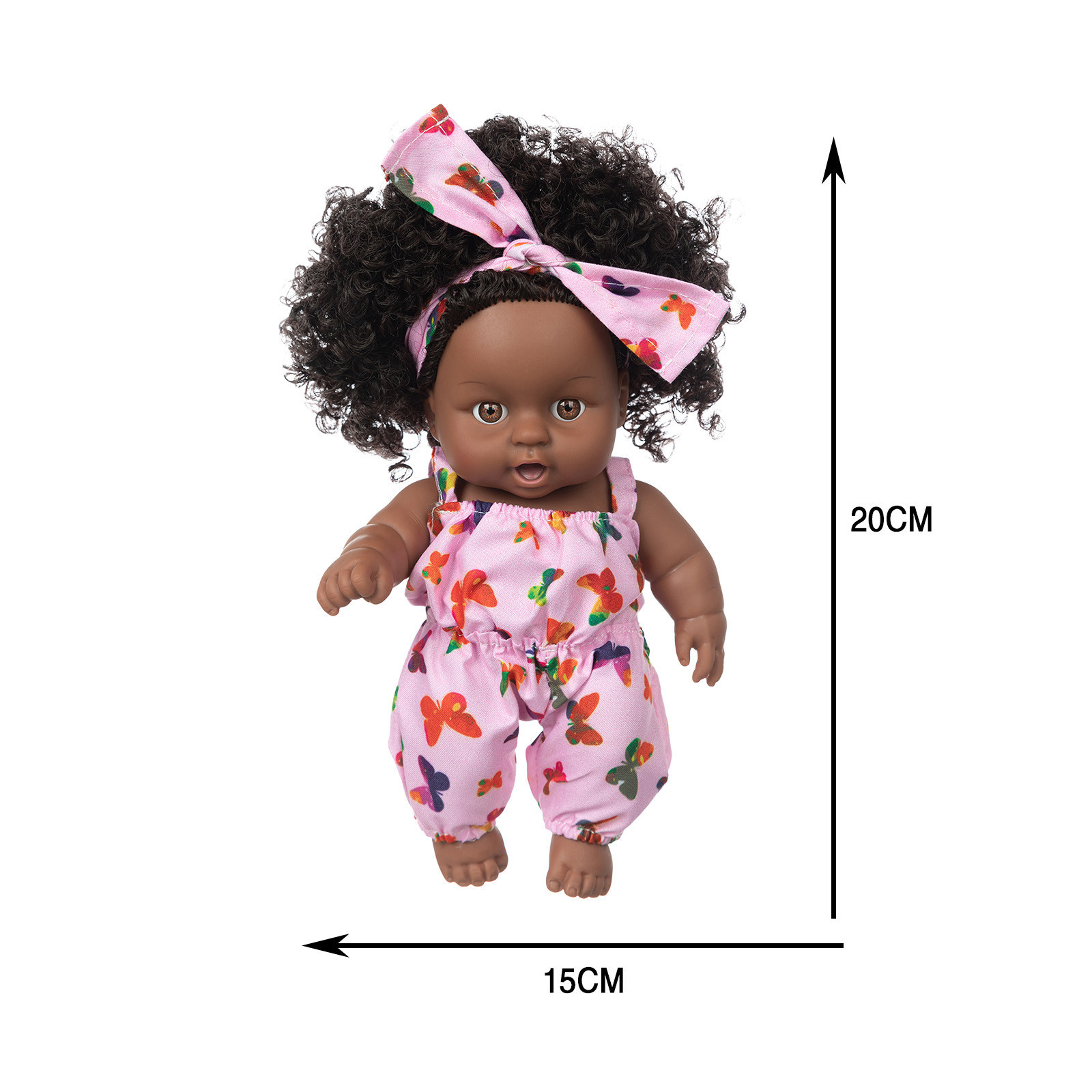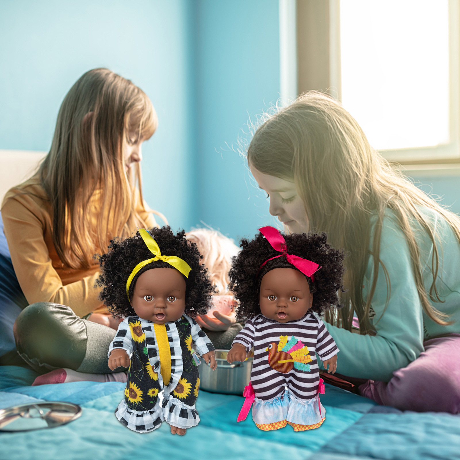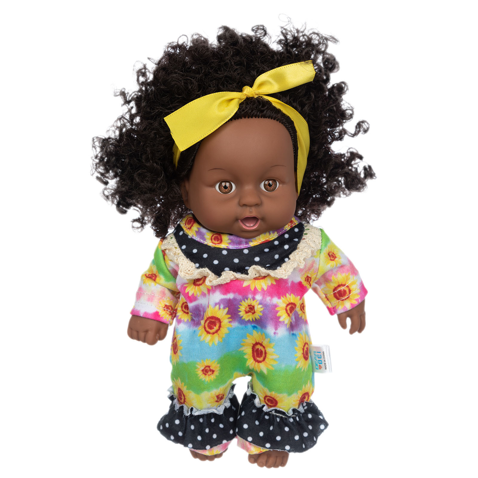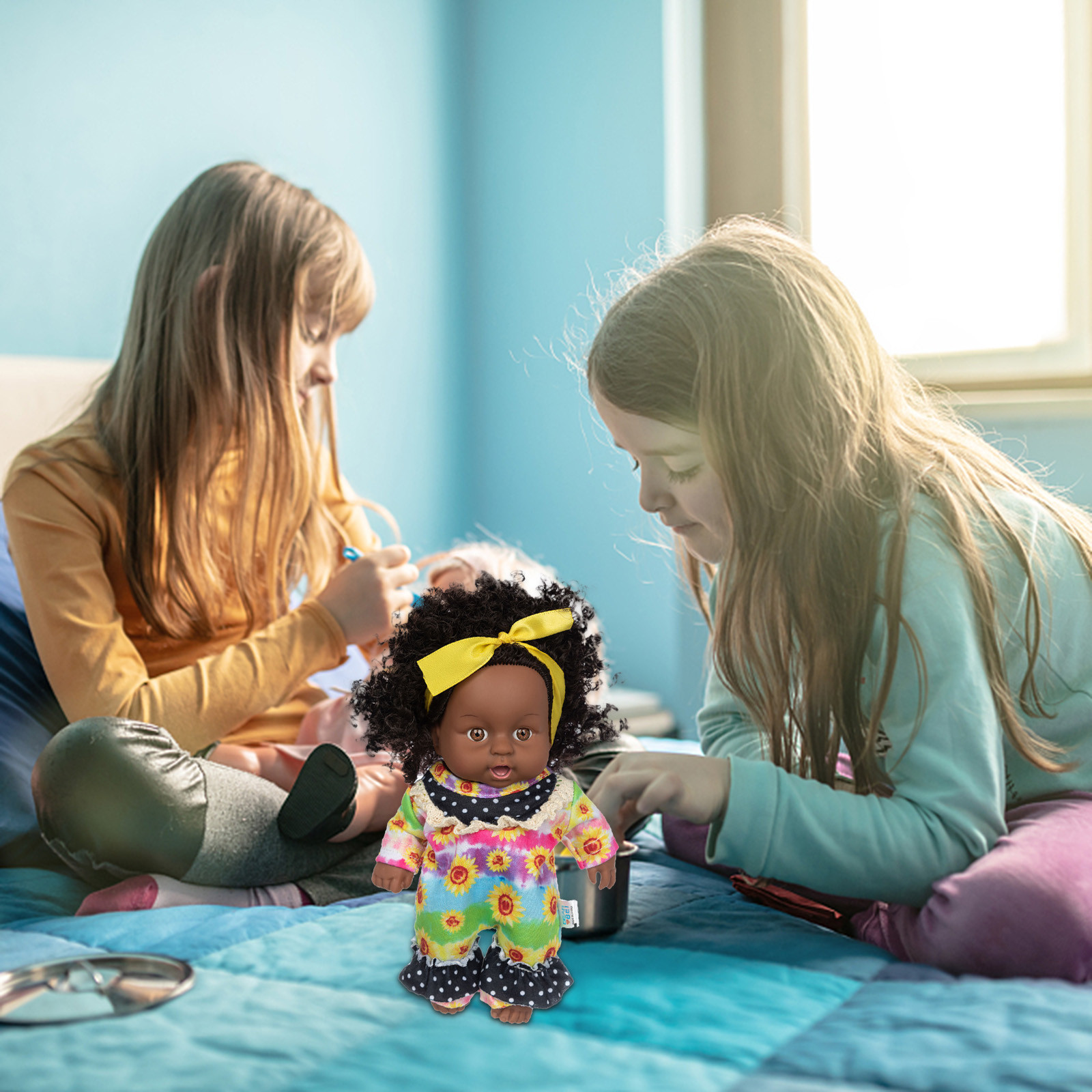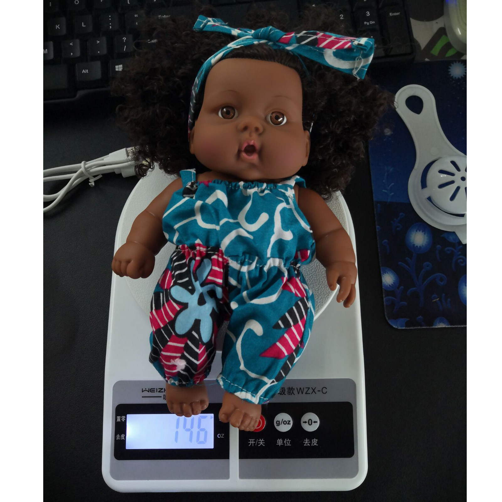 Black Skin African Black Baby Cute Curly Hair Lace Skirt 30CM Vinyl Baby Toy
