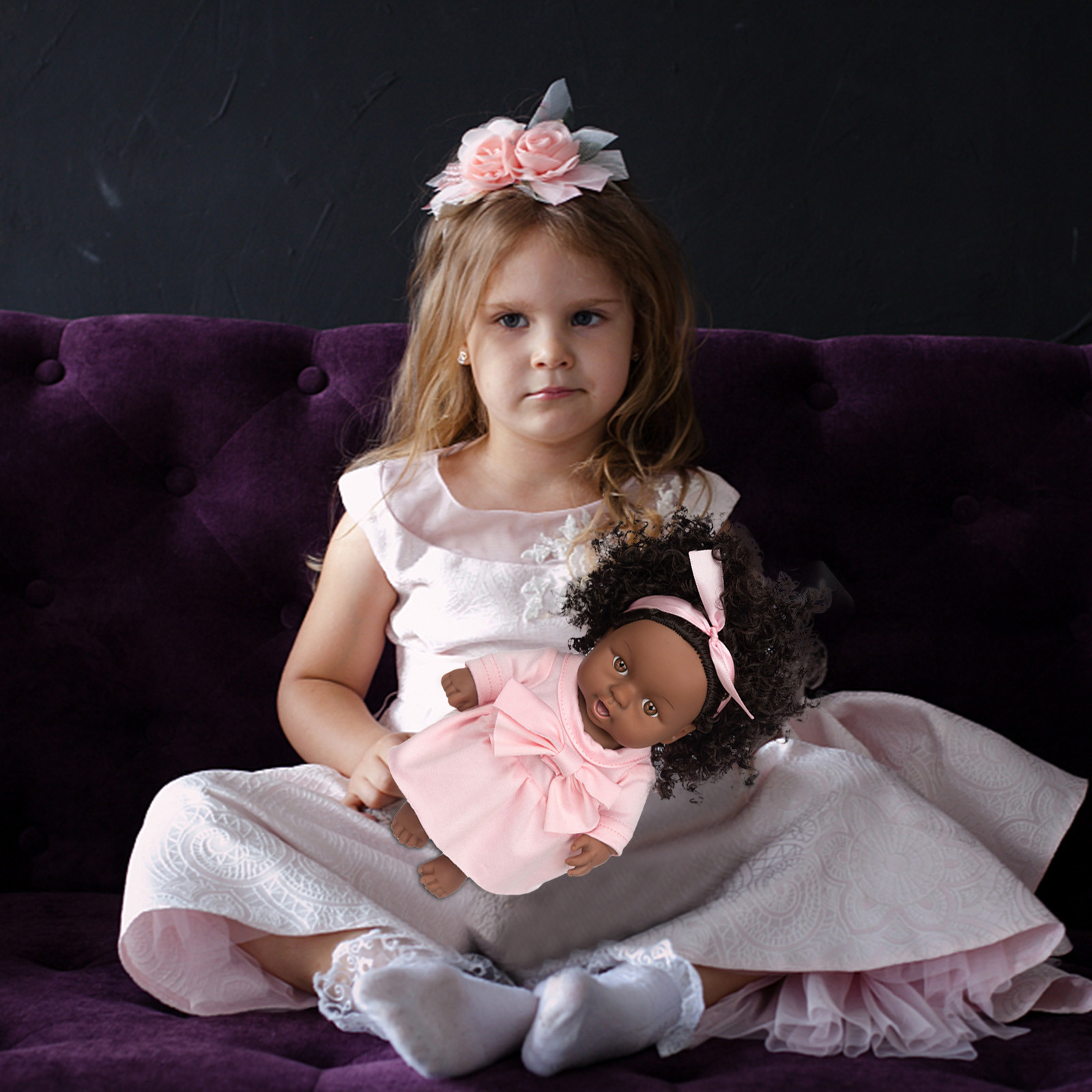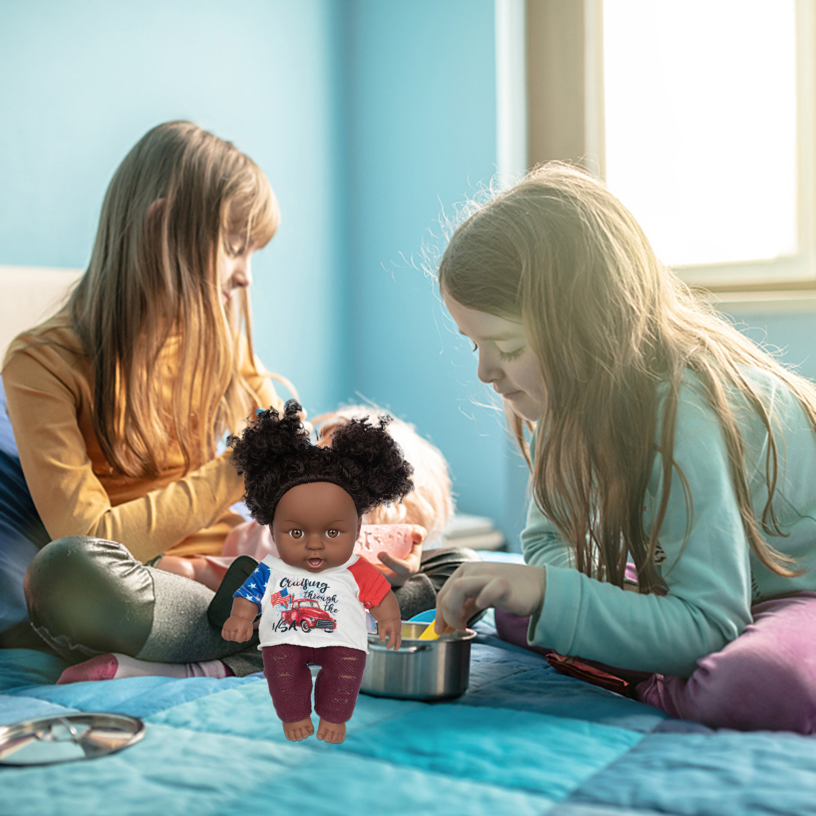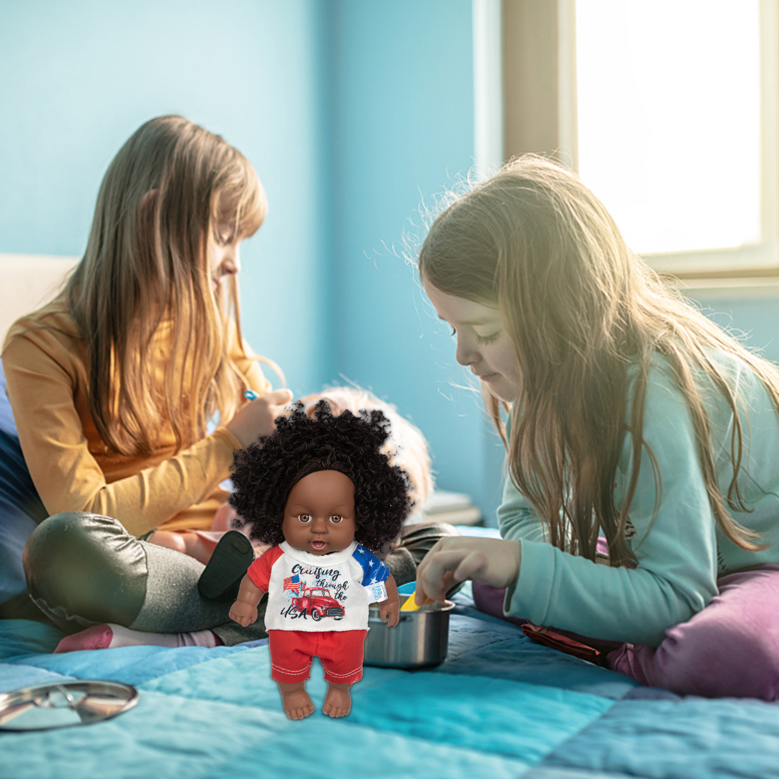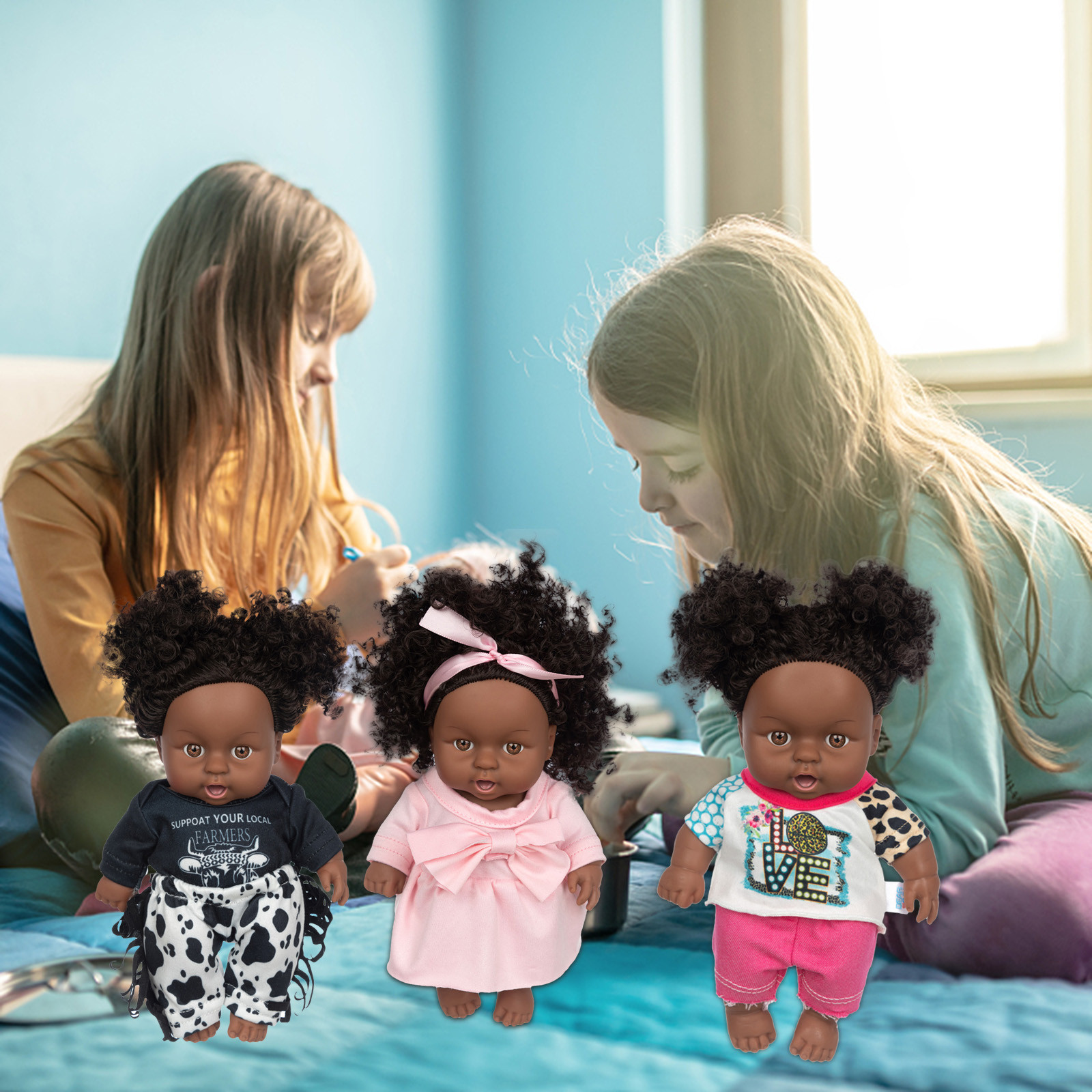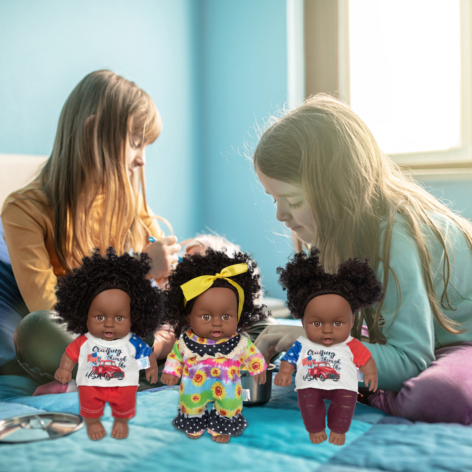 Black Skin African Black Baby Cute Curly Hair Lace Skirt 30CM Vinyl Baby Toy