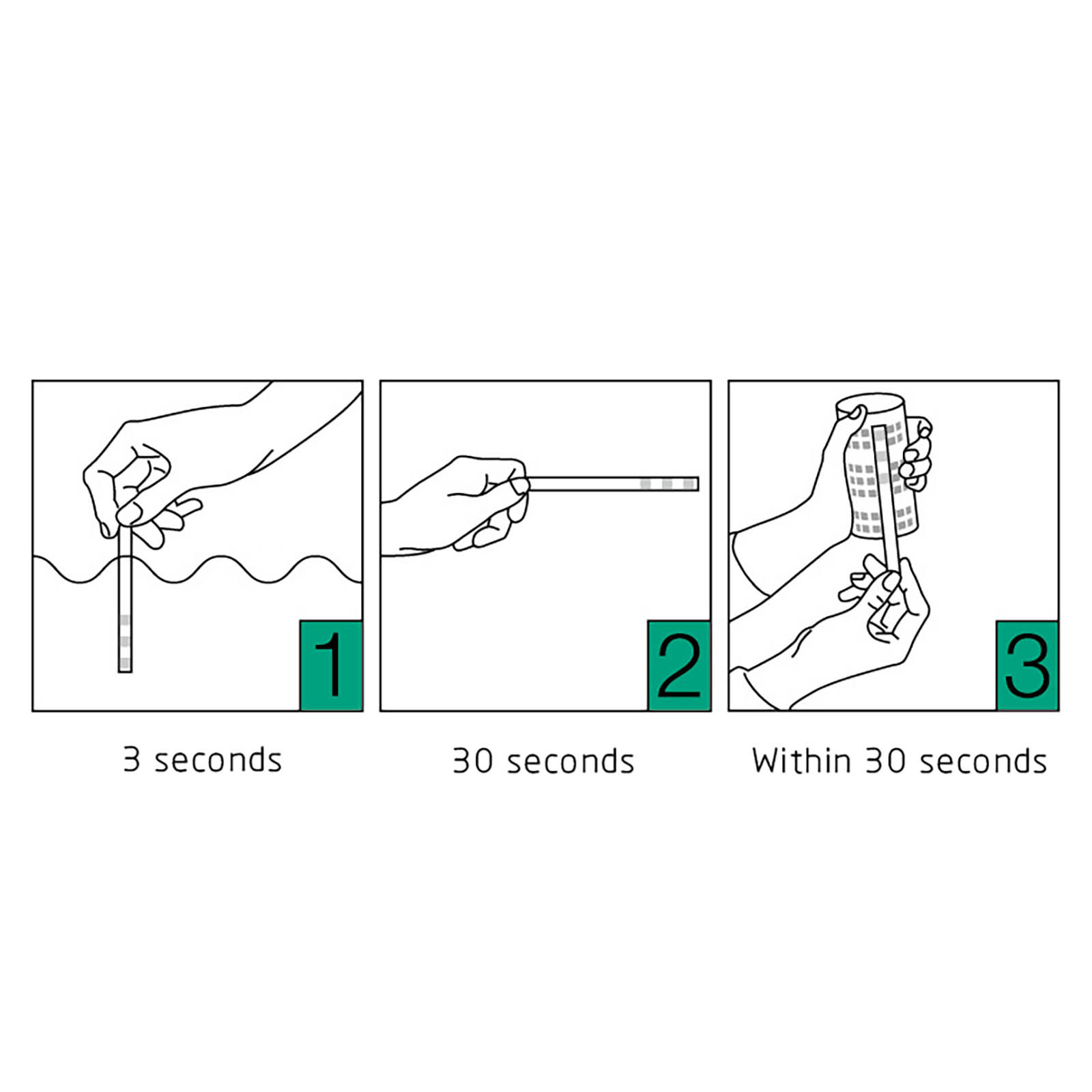 3. Сравните тест Полоса с цветовой таблицей на корпусе бутылки и завершить чтение В течение 30 секунд для получения точных результатов
