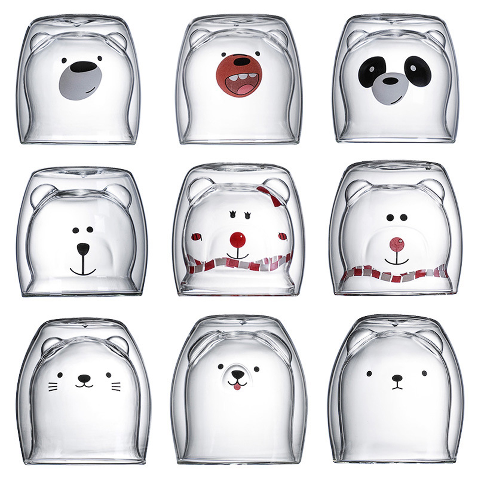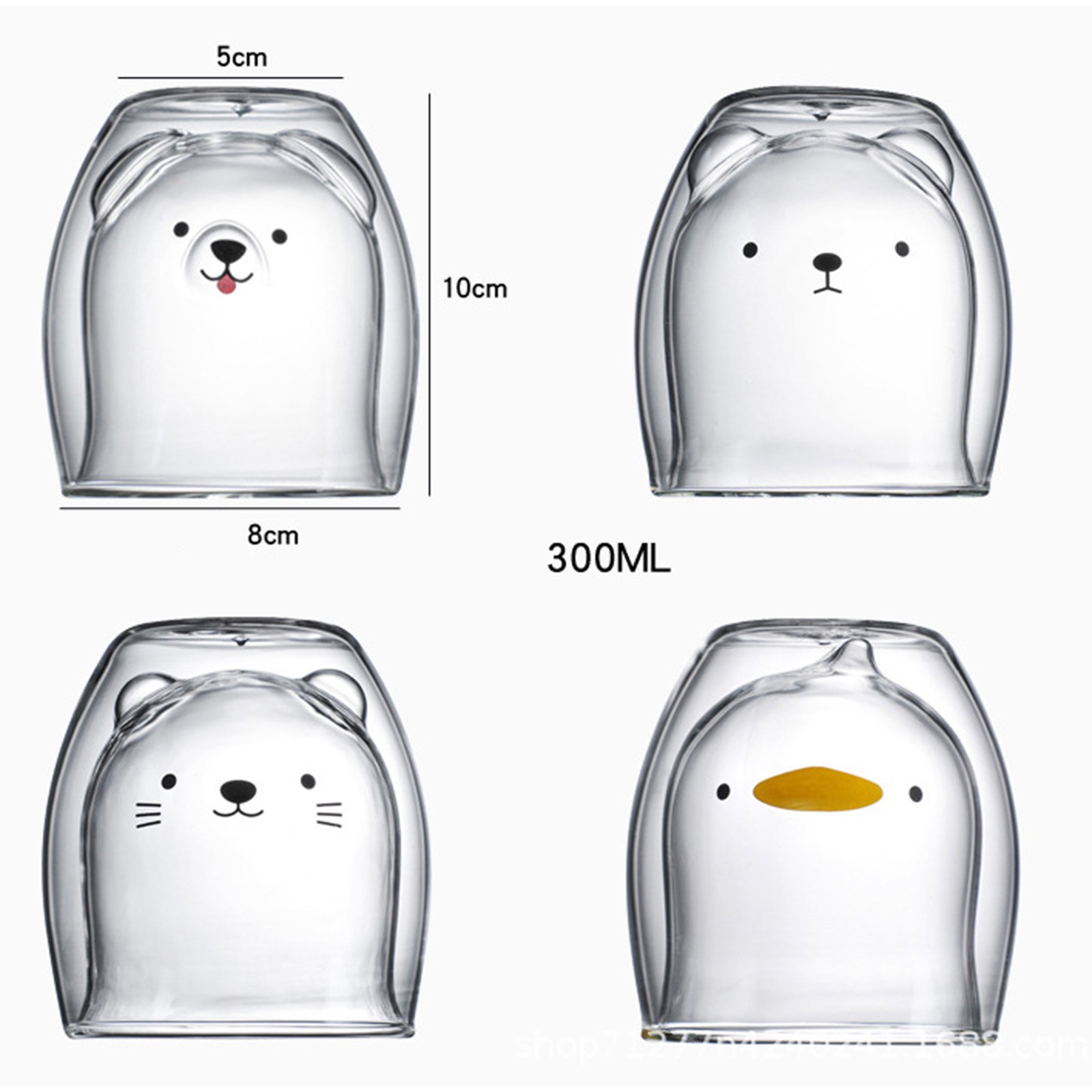 Изолированные стаканы с двойными стенками, Каждая кружка с милым животным, вмещающим 230-280 мл.