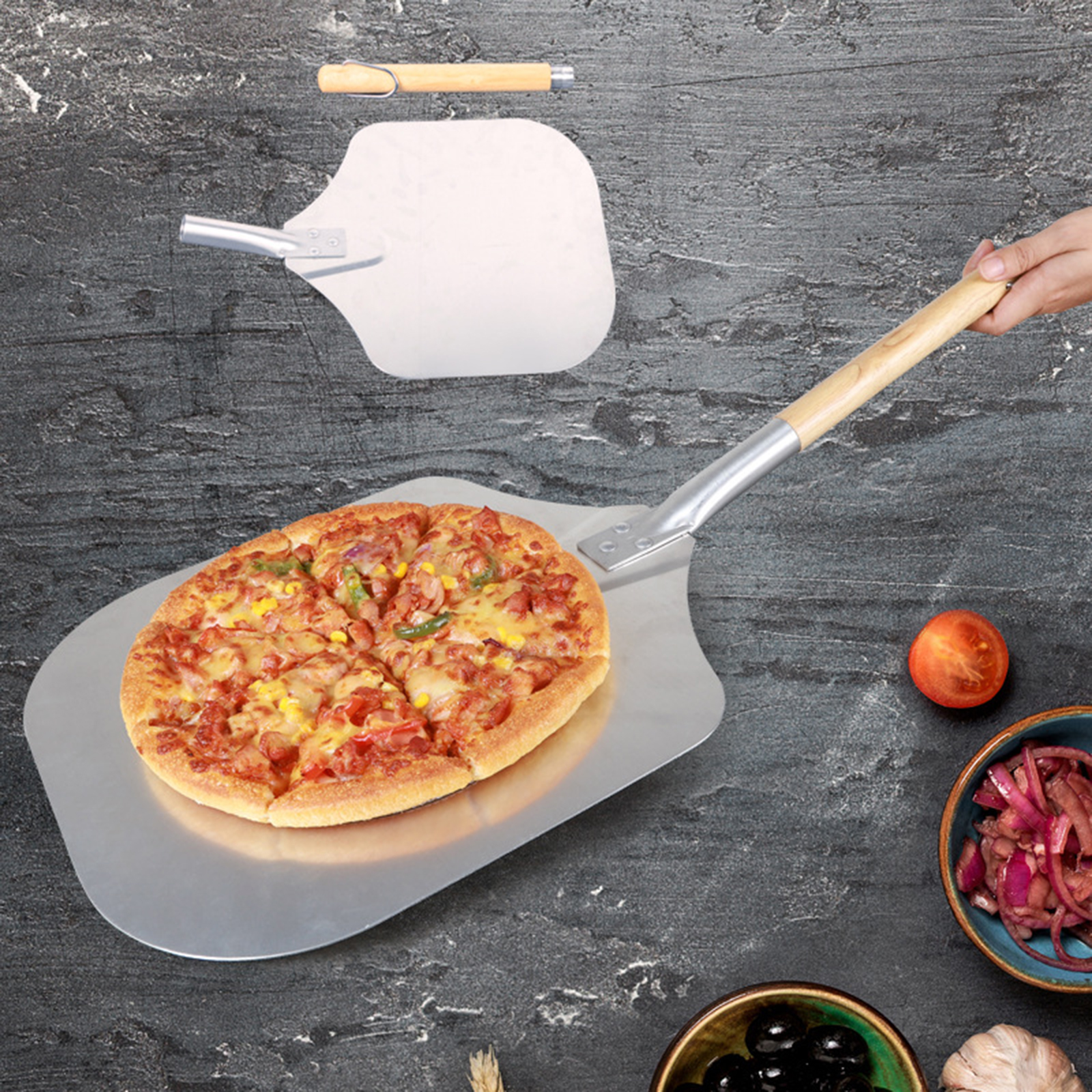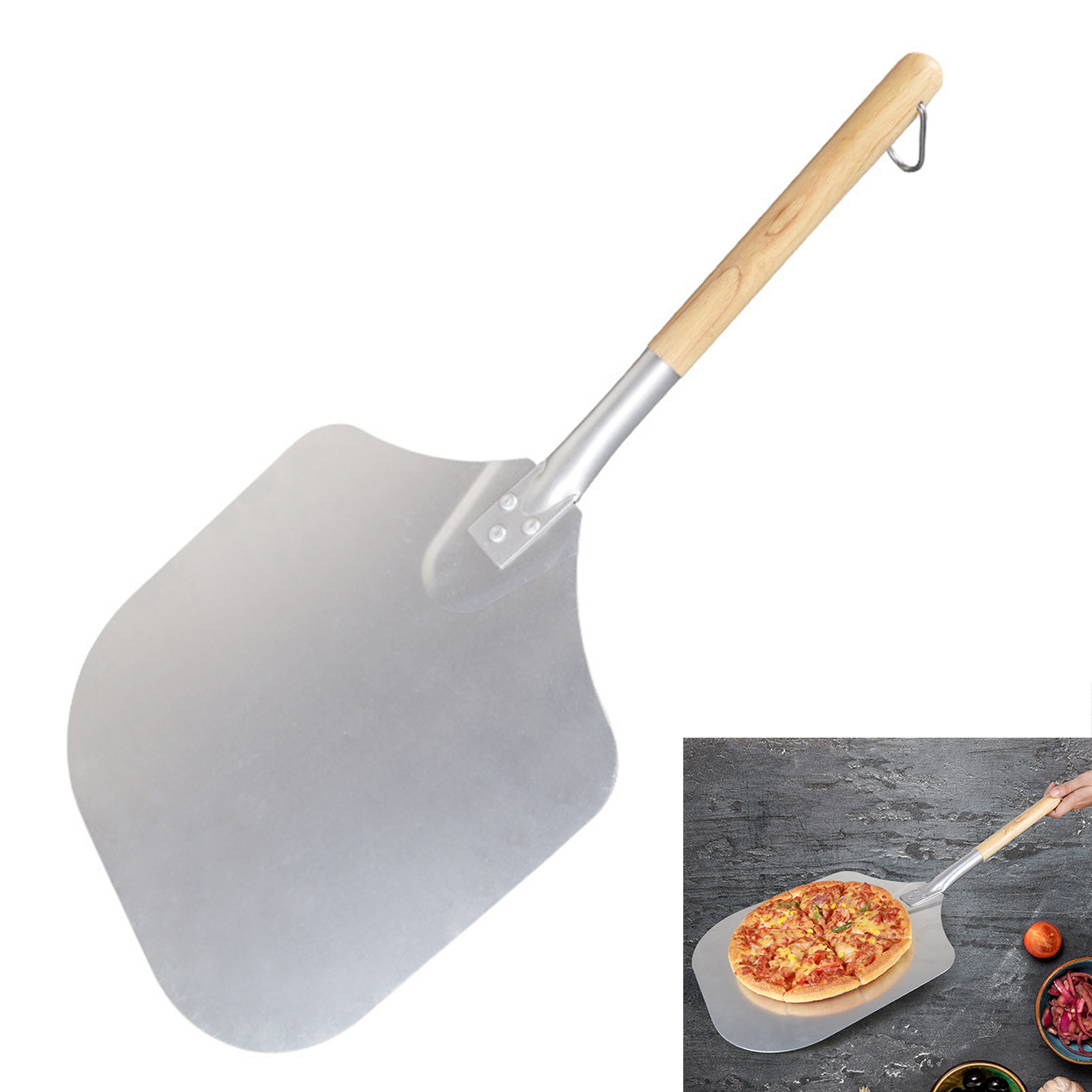 1. Съемная ручка-алюминиевая Корка Для Пиццы разработана со съемной деревянной ручкой