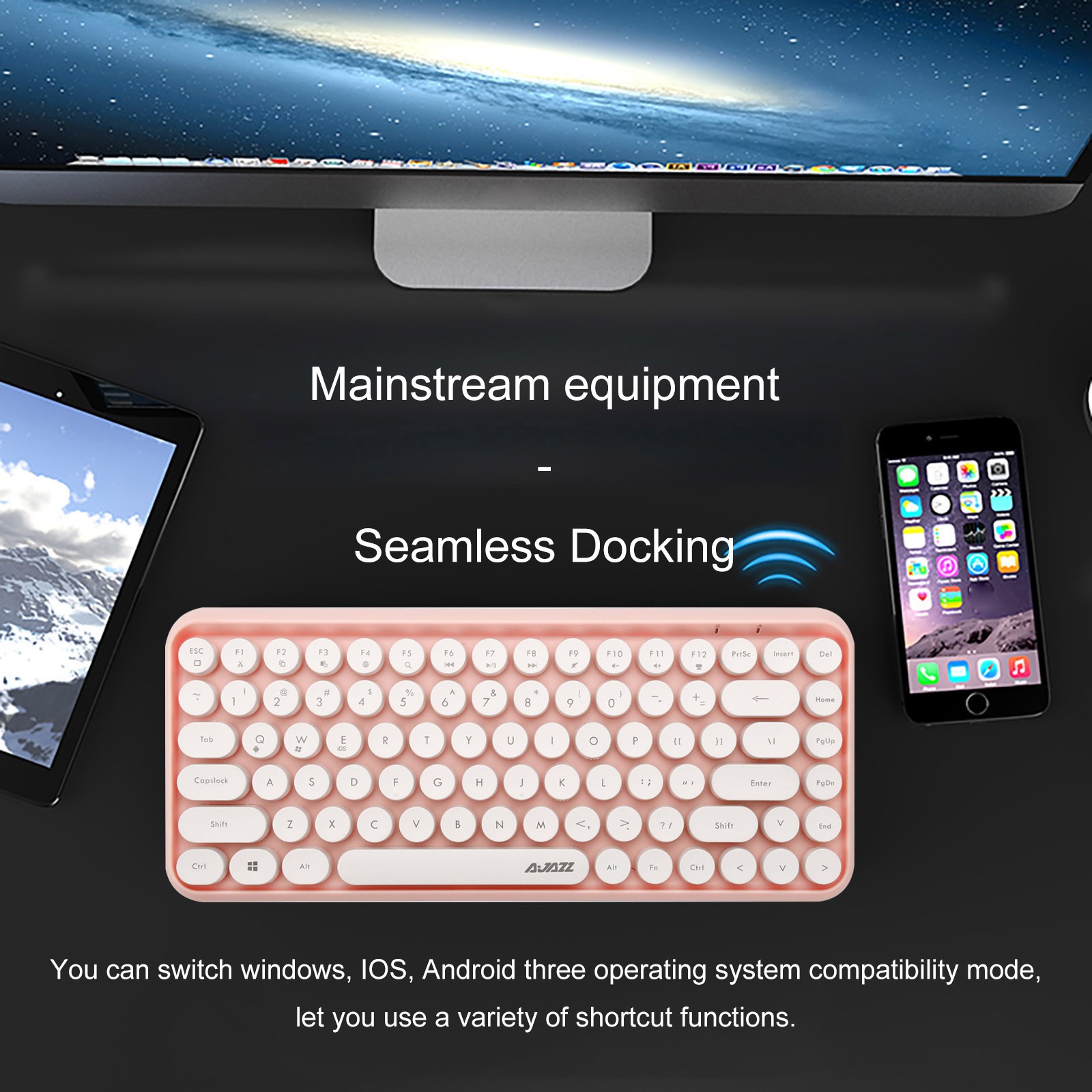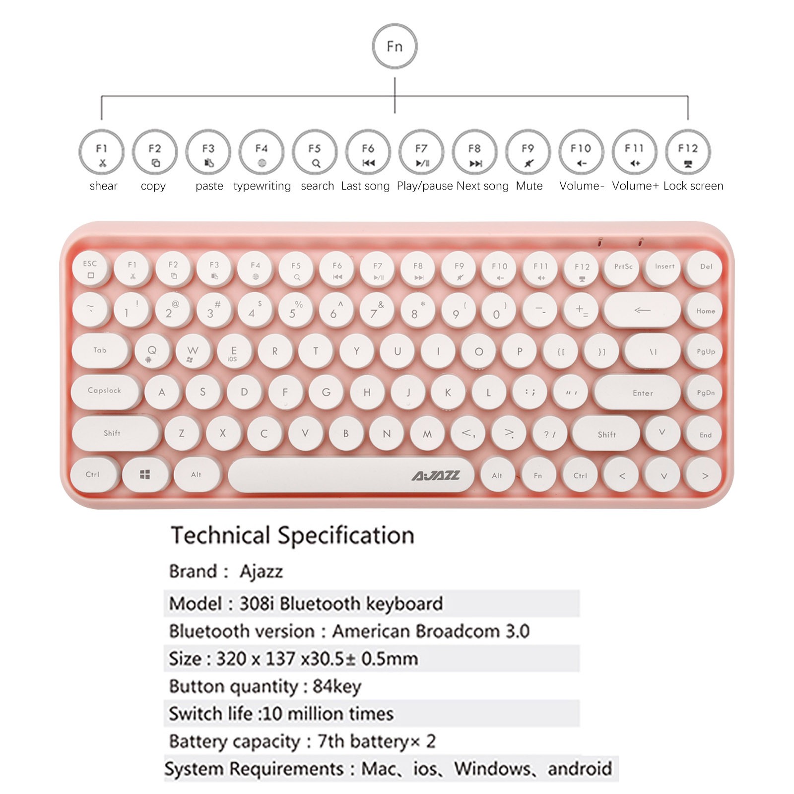 Ajazz 308i Bluetooth Беспроводная игровая Офисная Клавиатура 84-клавишная классическая круглая клавиатура