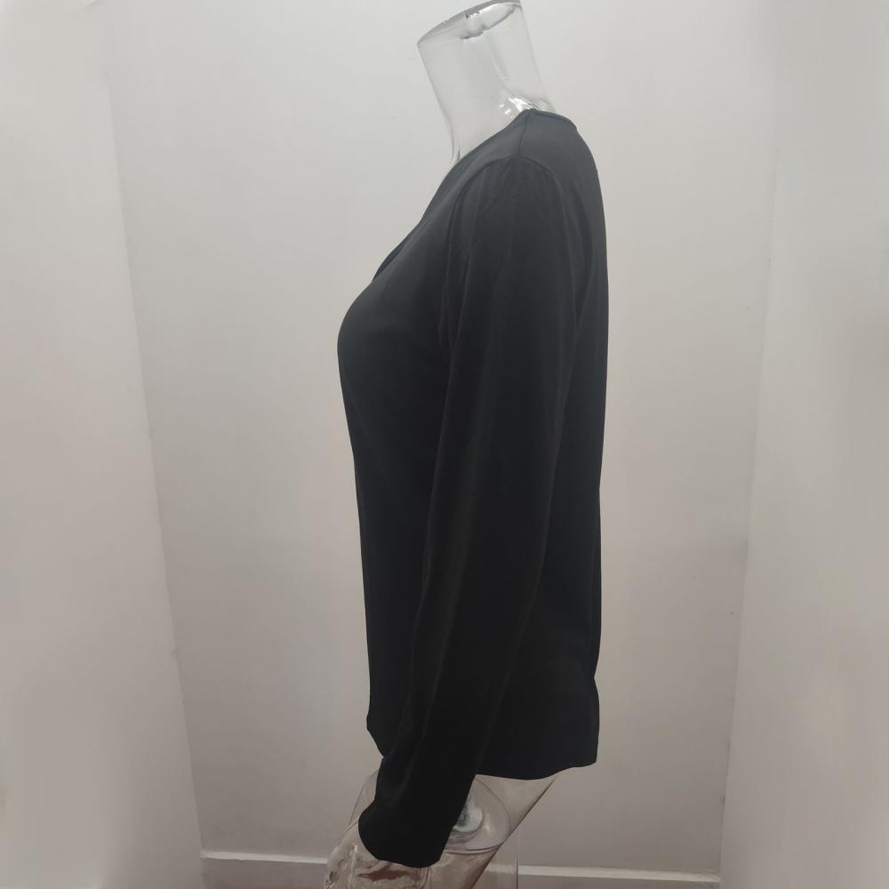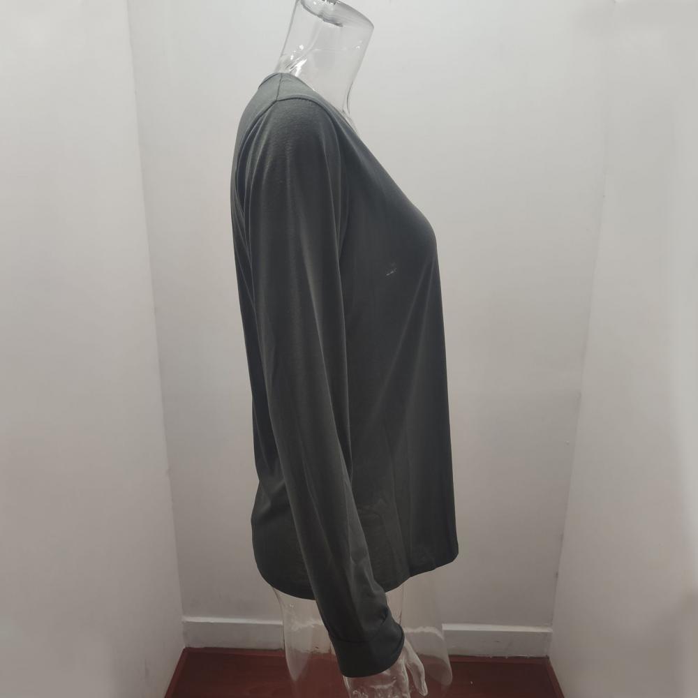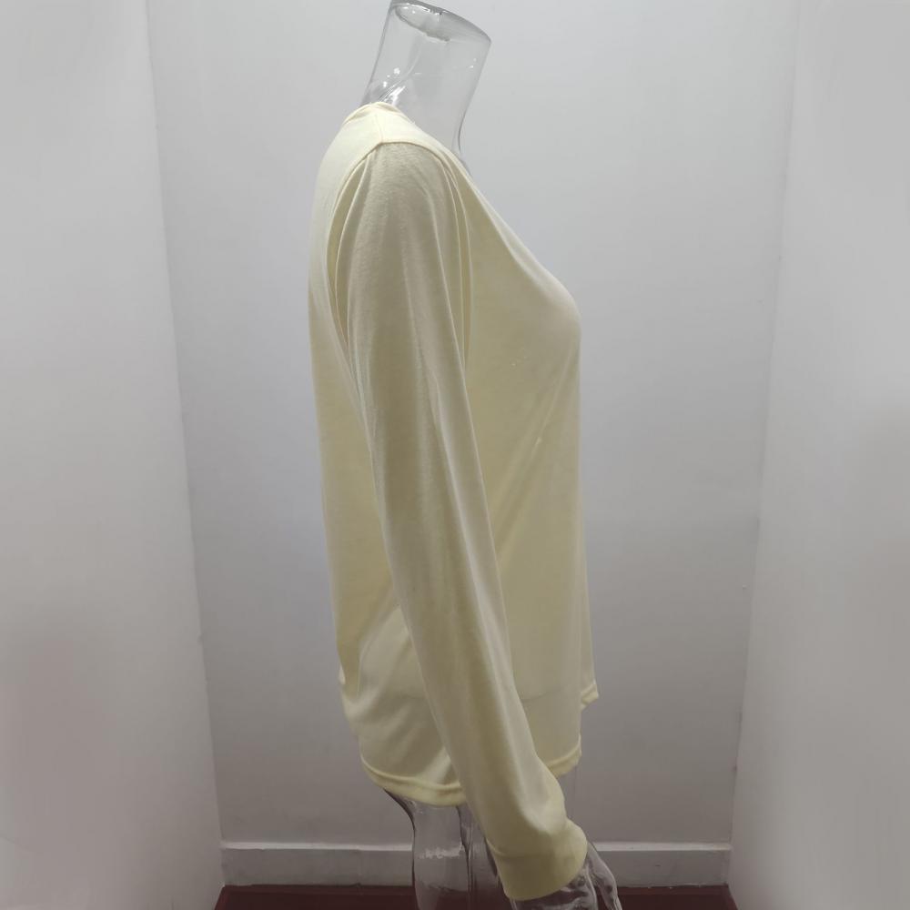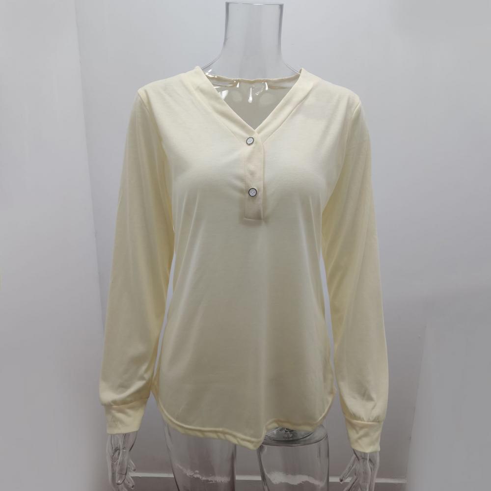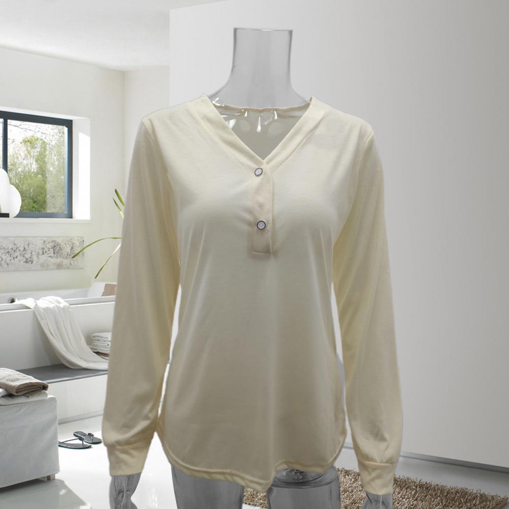 2021 модная женская однотонная блуза с v-образным вырезом, пуговицами и длинным рукавом, свободная футболка средней длины, повседневные свободные рубашки
