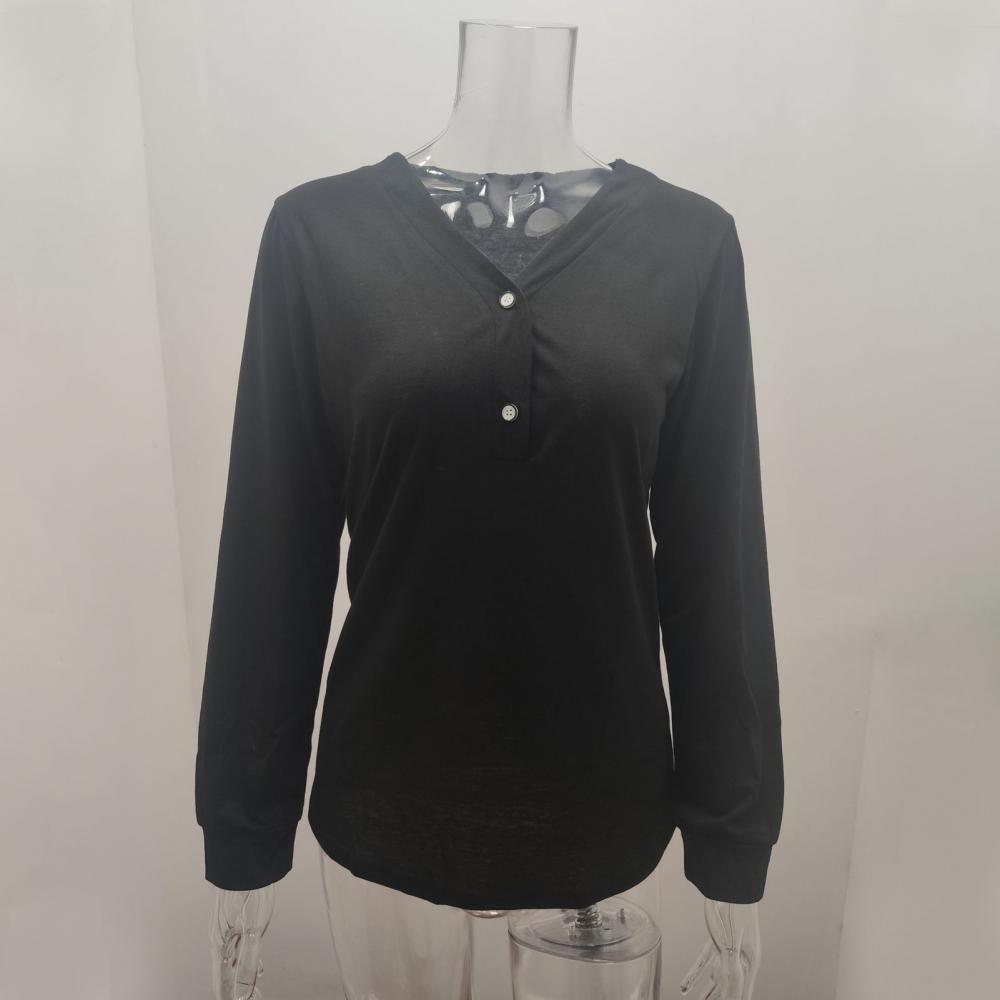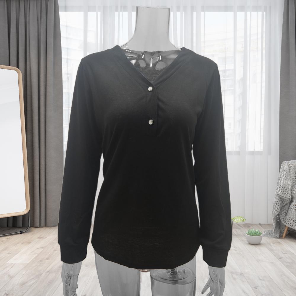 Однотонная блузка украшена пуговицами, которая является повседневной, но стильной.