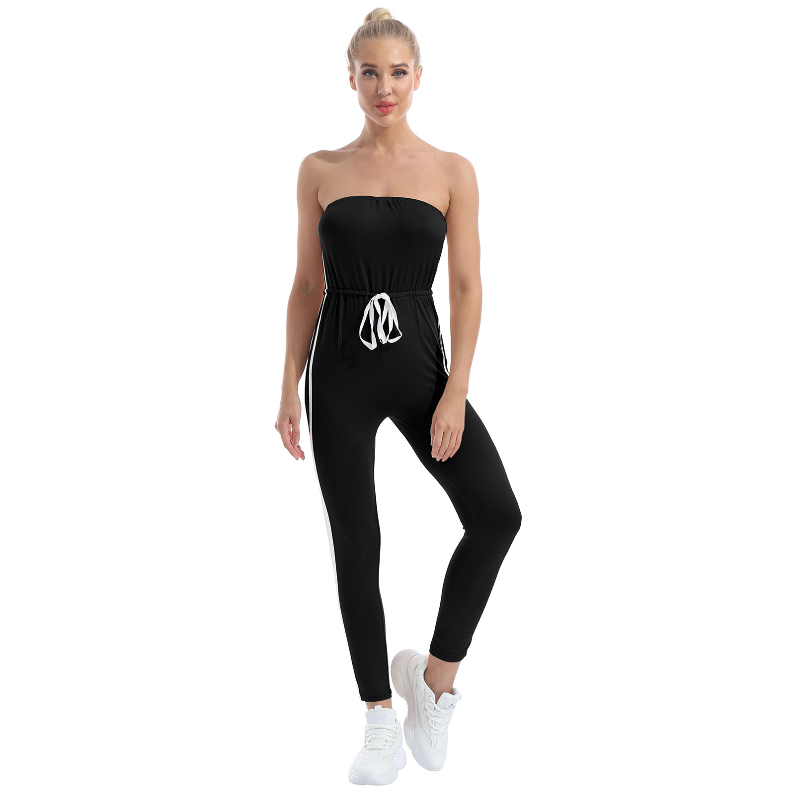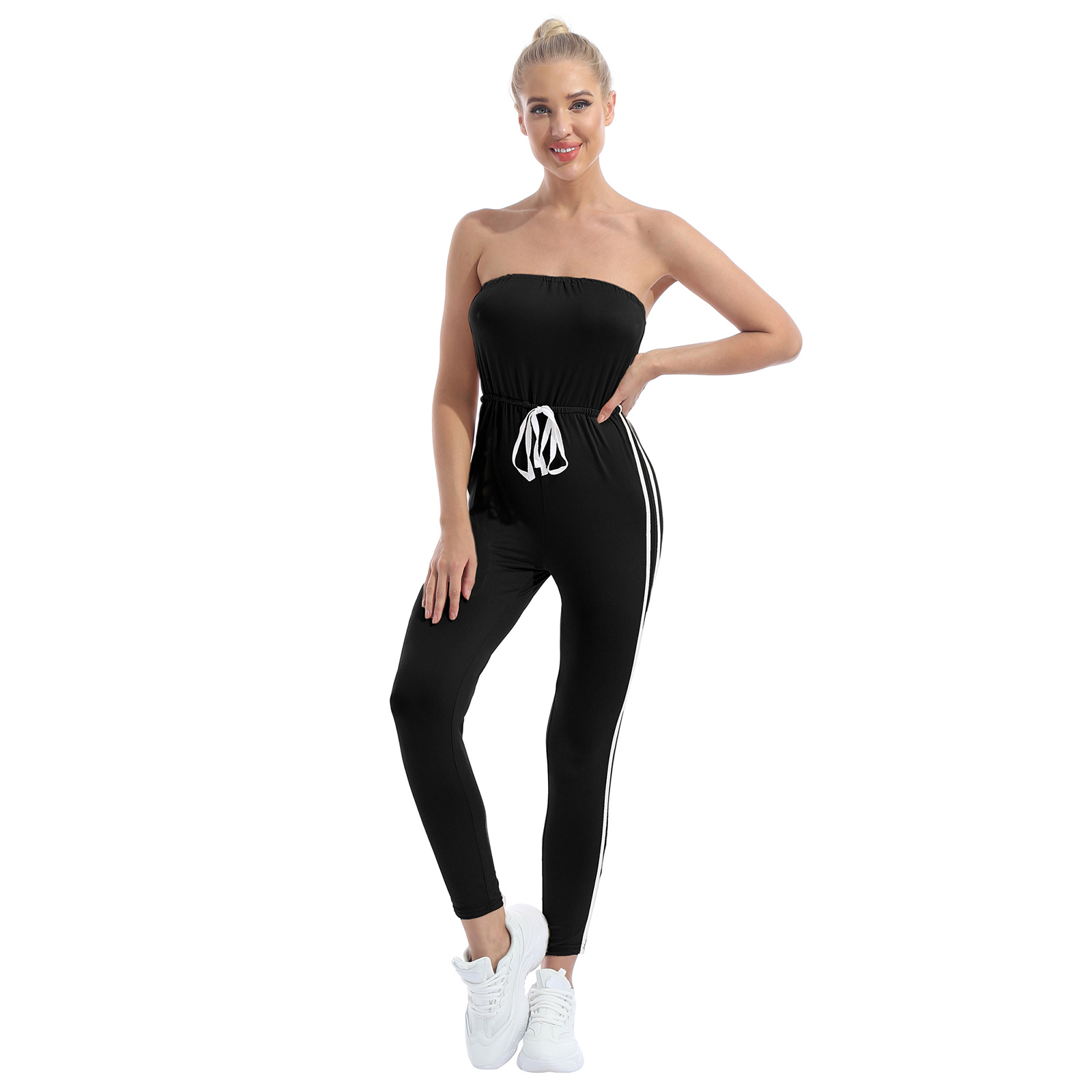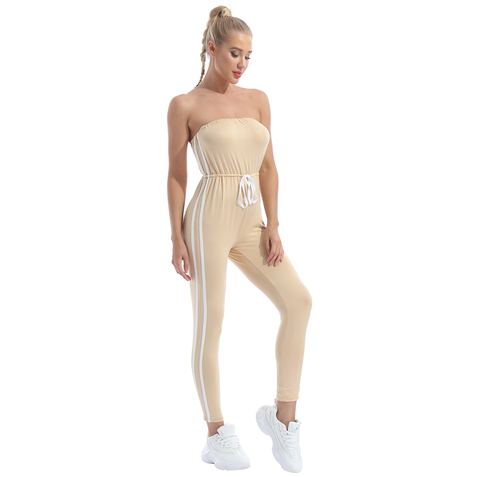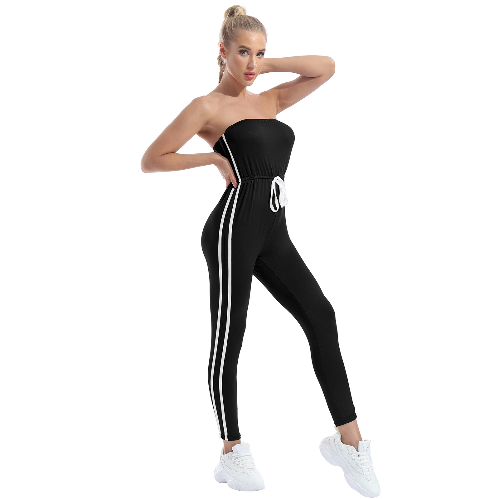 Женский цельный комбинезон без рукавов с открытой верхней частью, топ без рукавов с завязками на талии, комбинезон с полосками сбоку.