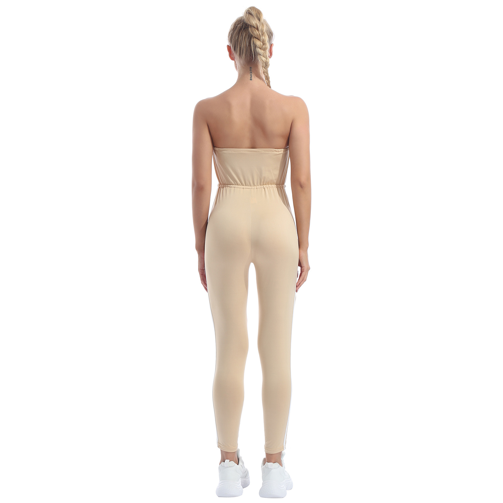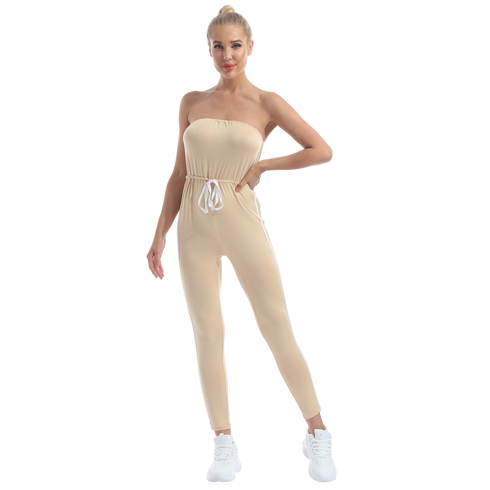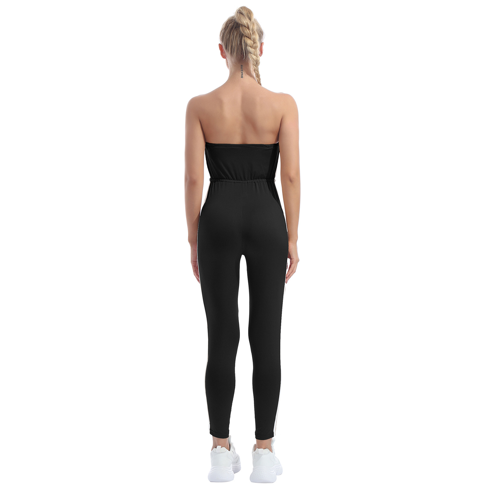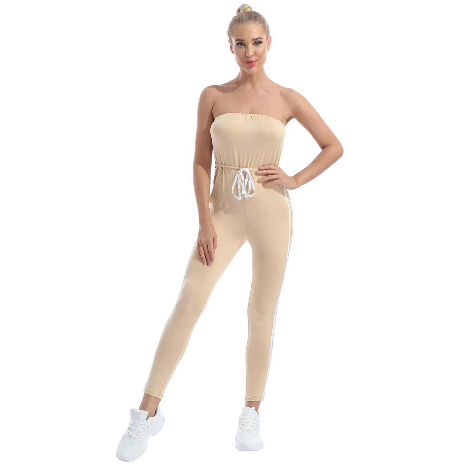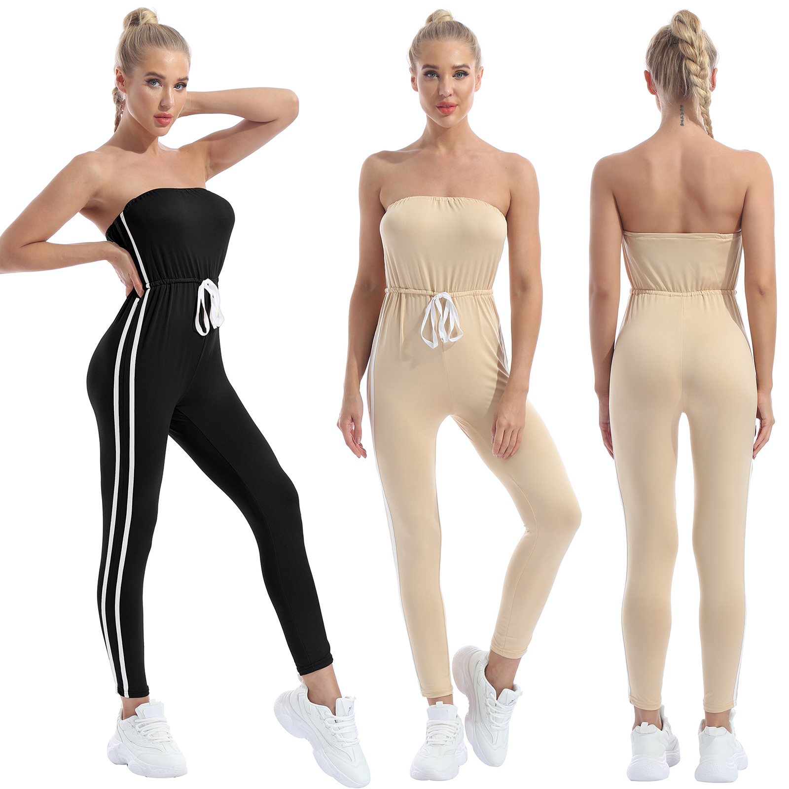 Женский цельный комбинезон без рукавов с открытой верхней частью, топ без рукавов с завязками на талии, комбинезон с полосками сбоку.
