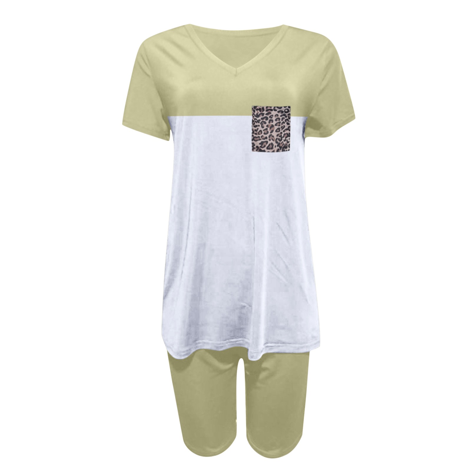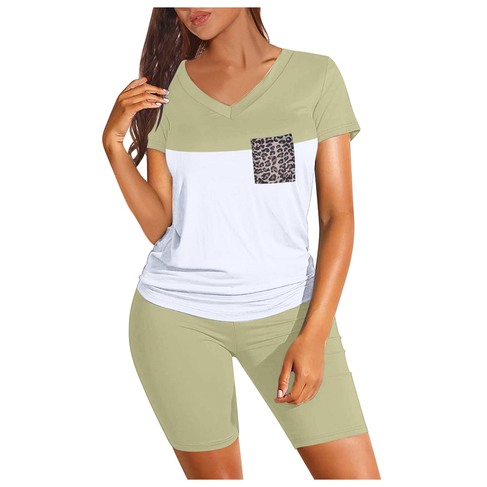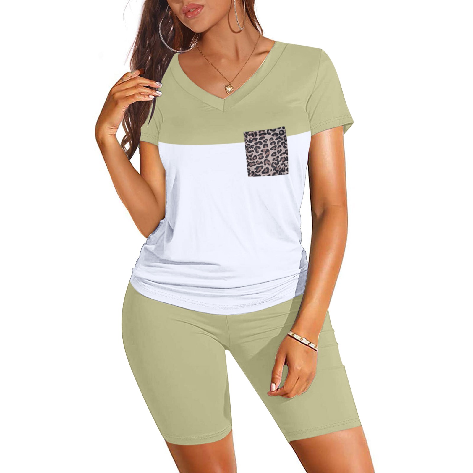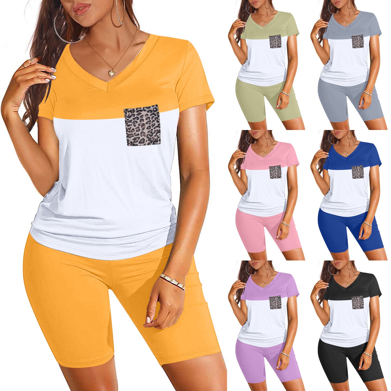 Женские костюмы с шортами 2021, комплект из двух предметов с леопардовым принтом и коротким рукавом, с V-образным вырезом, комплект из байкерских шорт, летние женские комплекты размера плюс