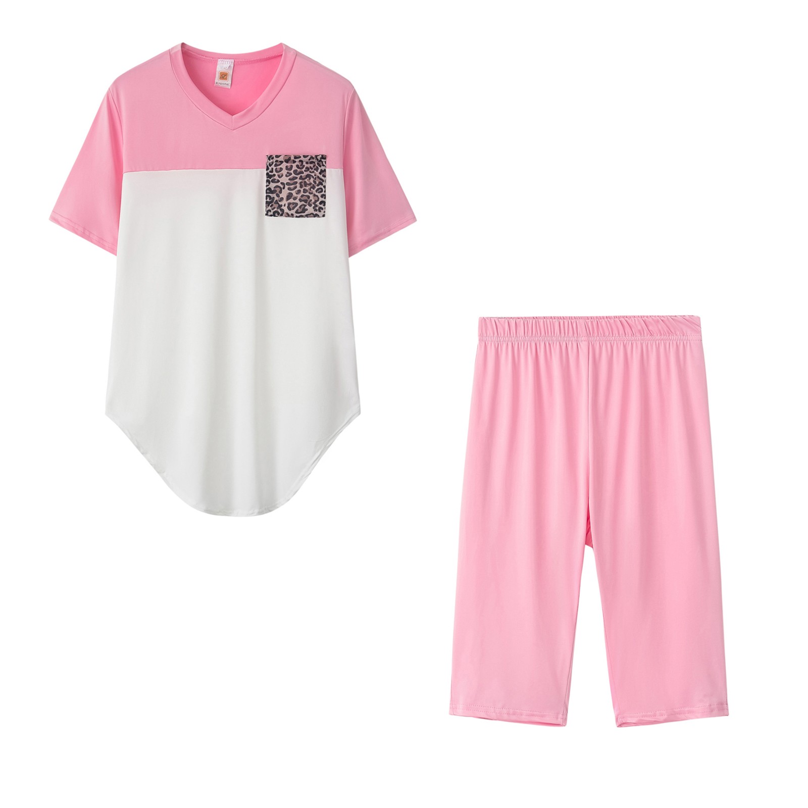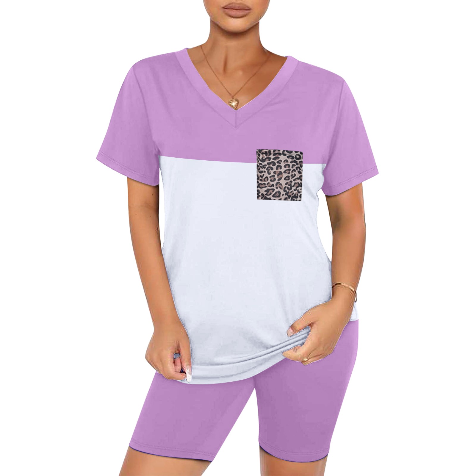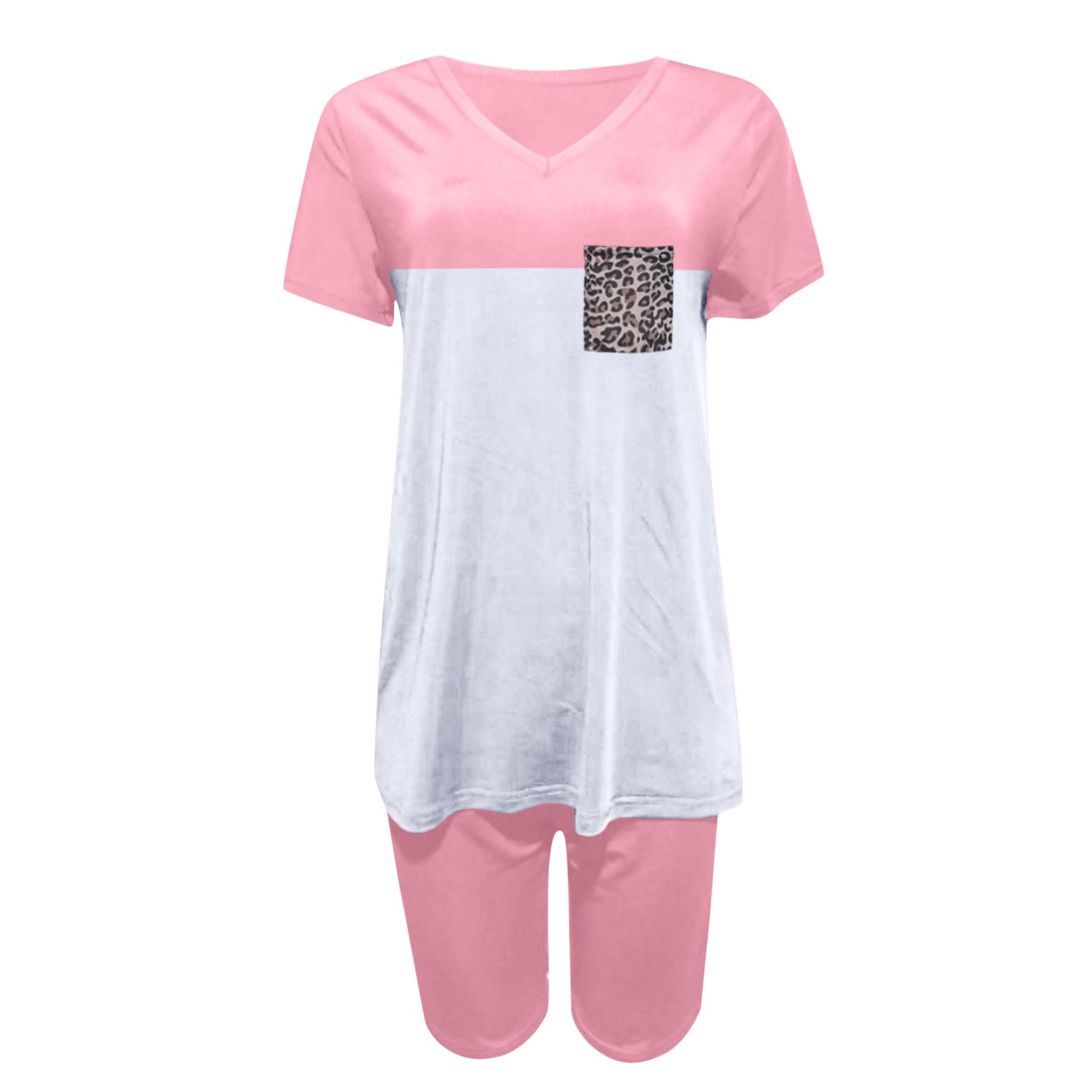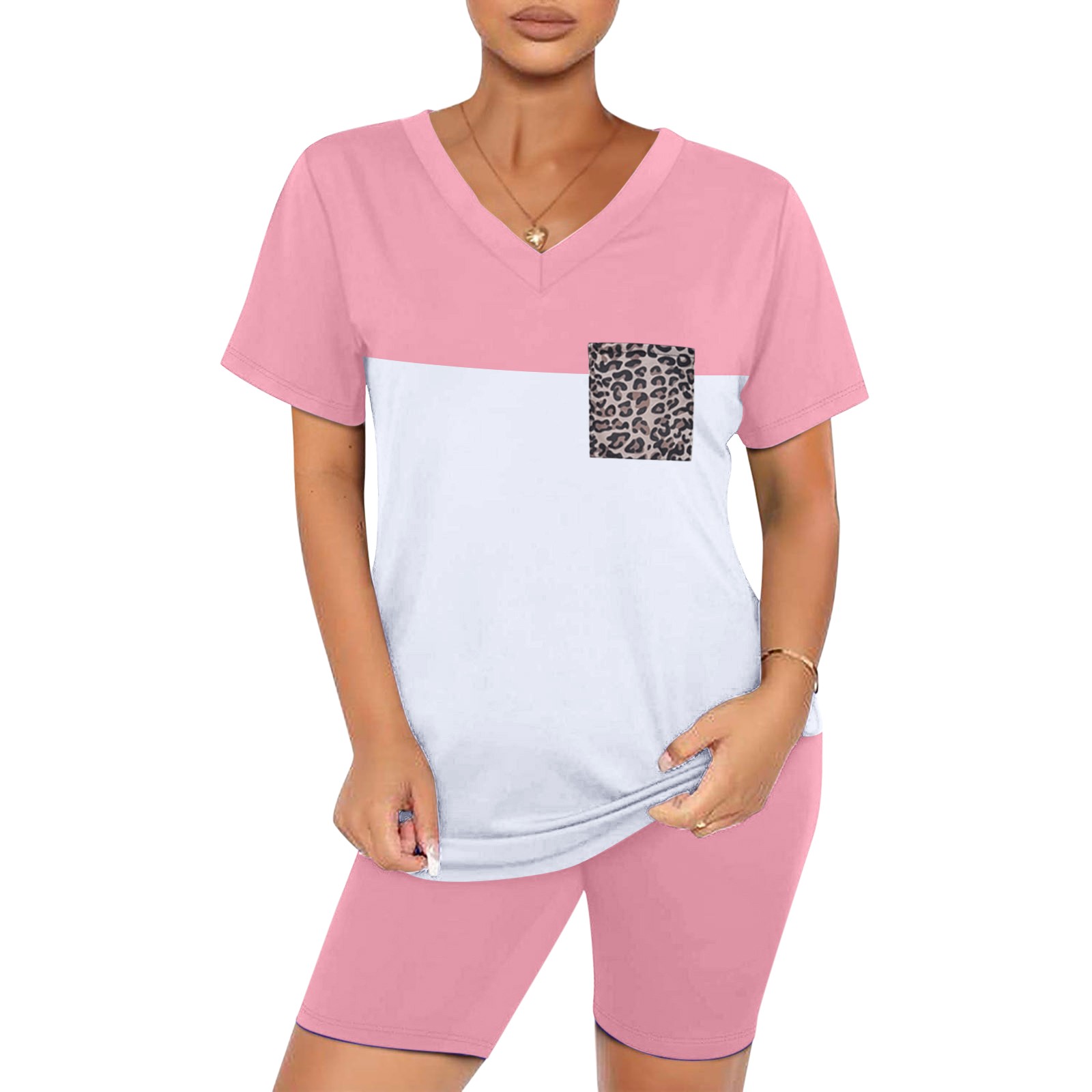 Женские костюмы с шортами 2021, комплект из двух предметов с леопардовым принтом и коротким рукавом, с V-образным вырезом, комплект из байкерских шорт, летние женские комплекты размера плюс