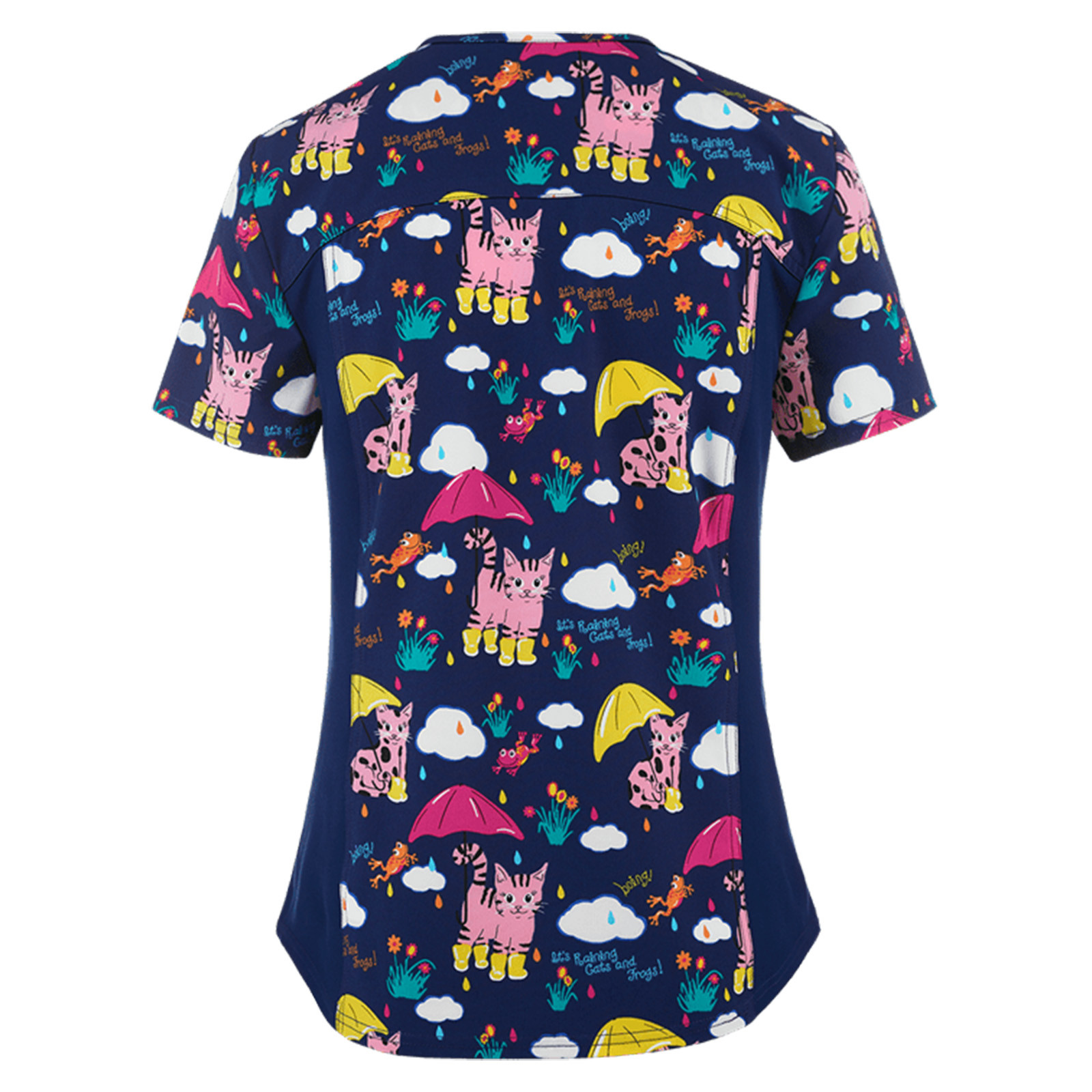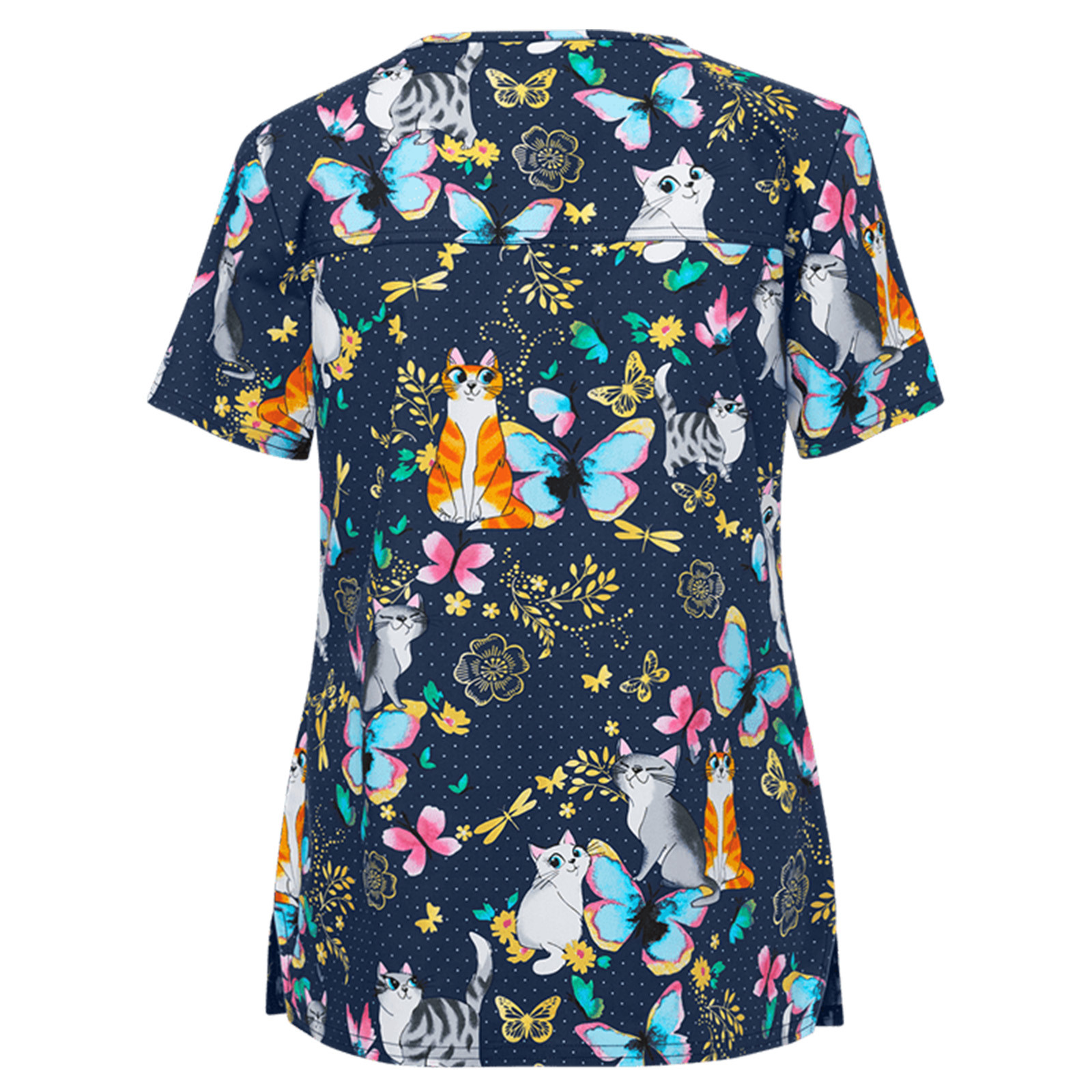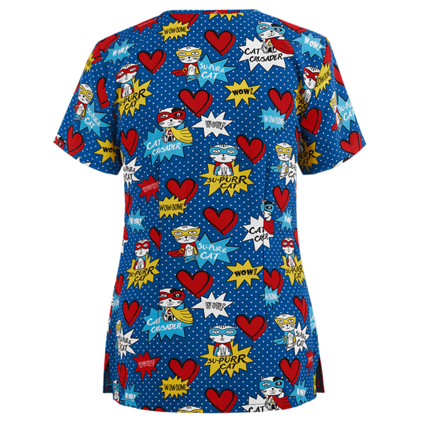 Милые женские топы с мультяшным принтом, женская футболка, повседневная женская форма с коротким рукавом, с v-образным вырезом и карманом A50