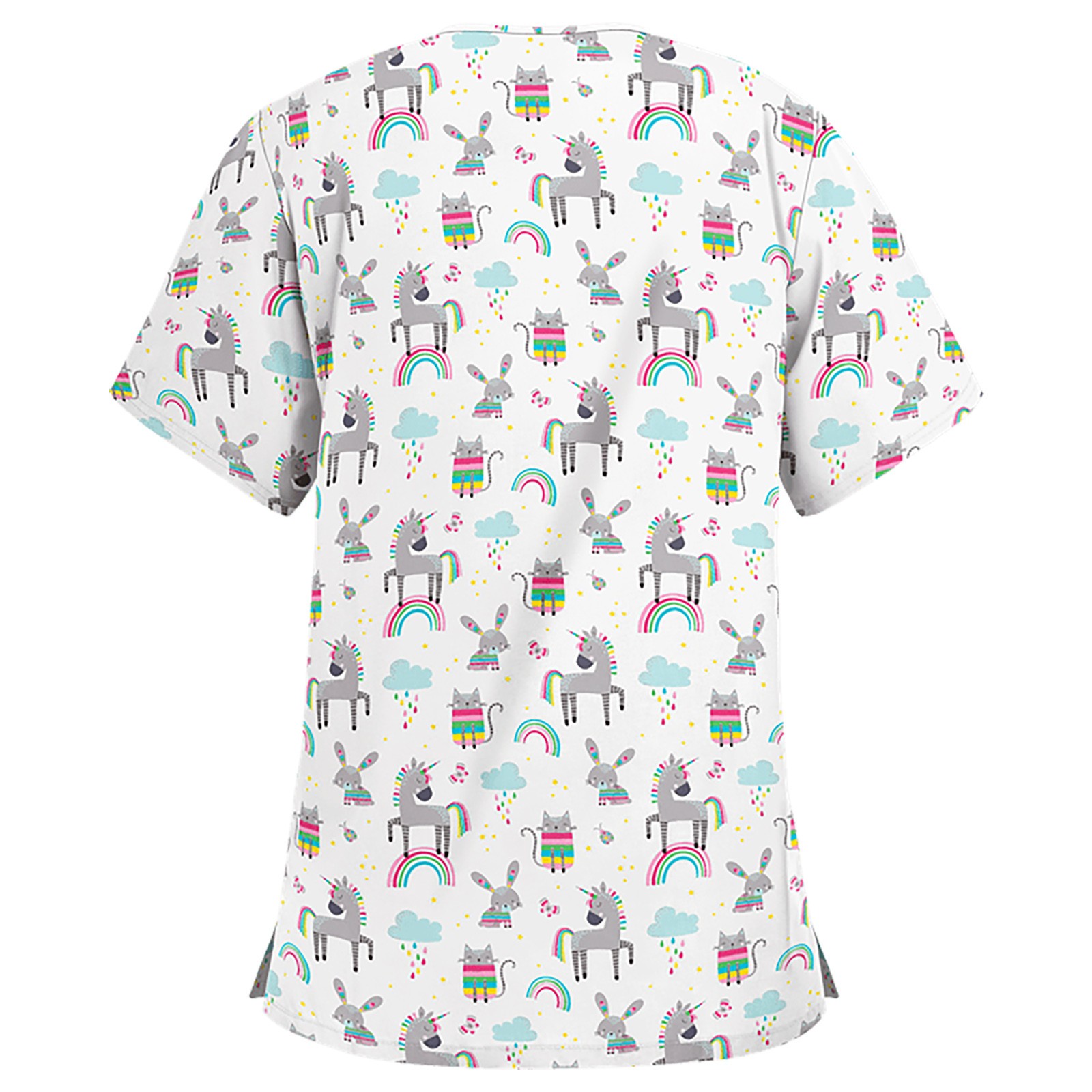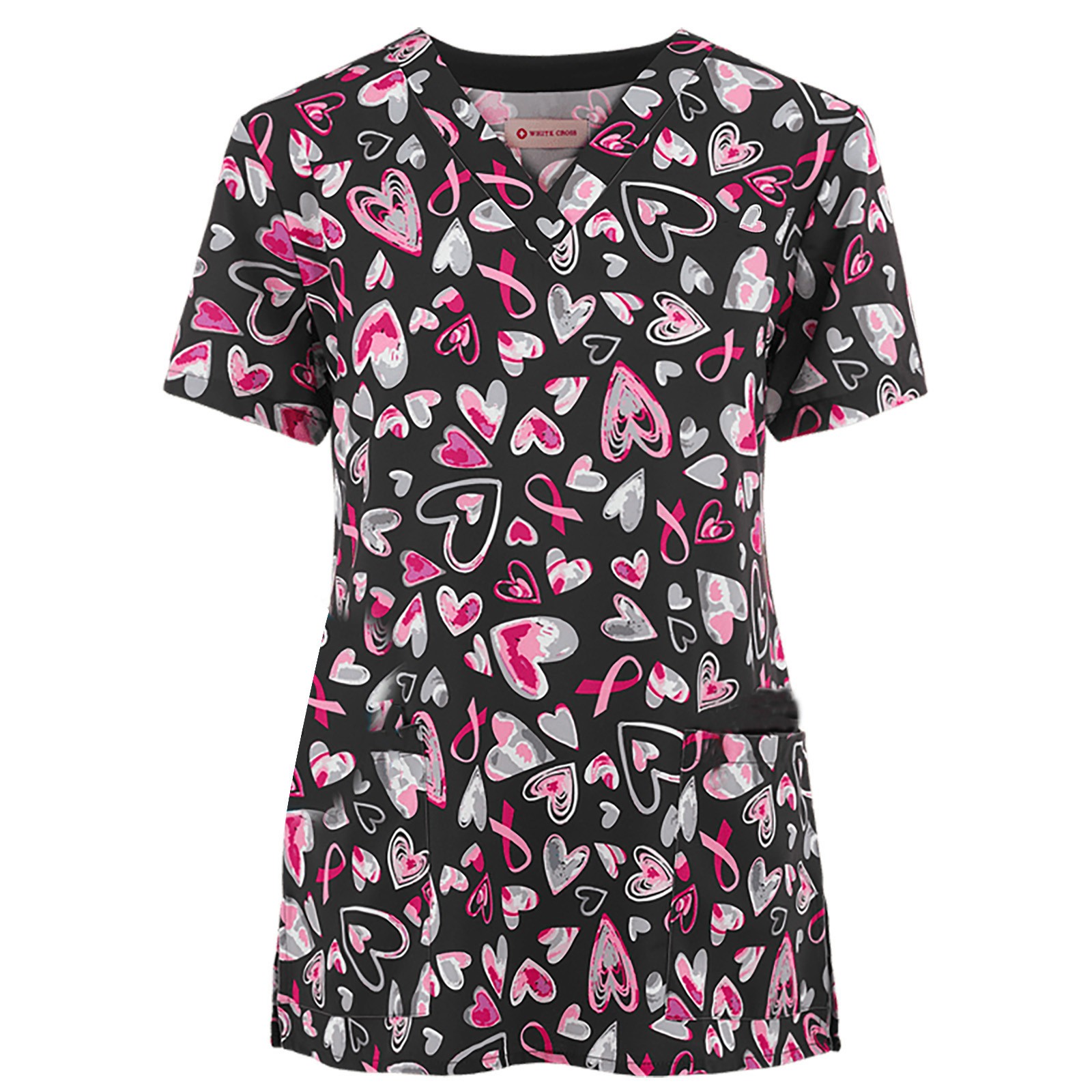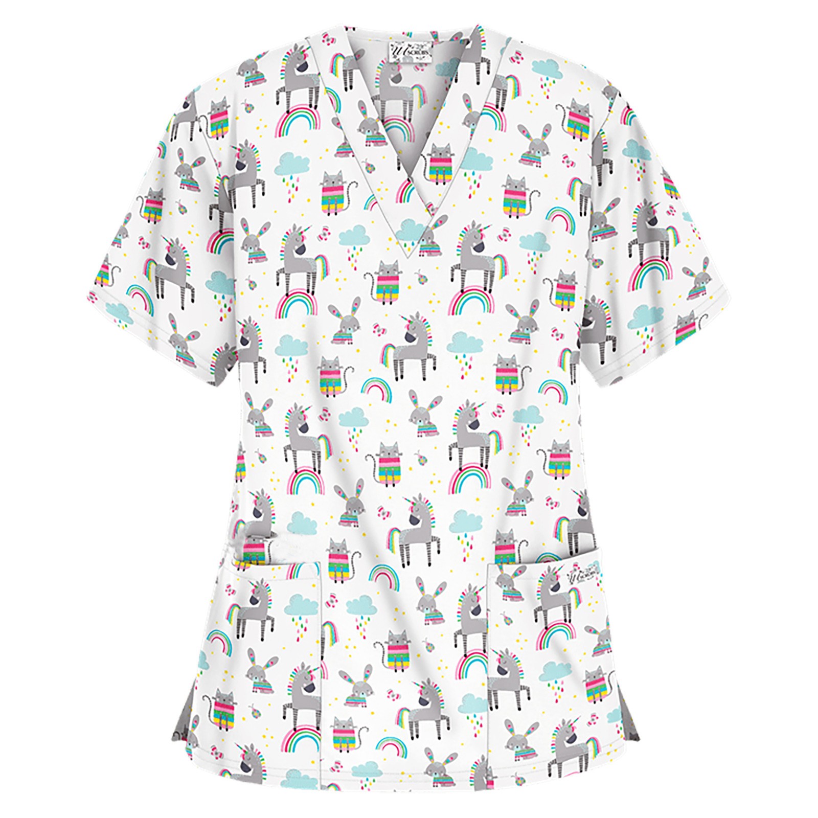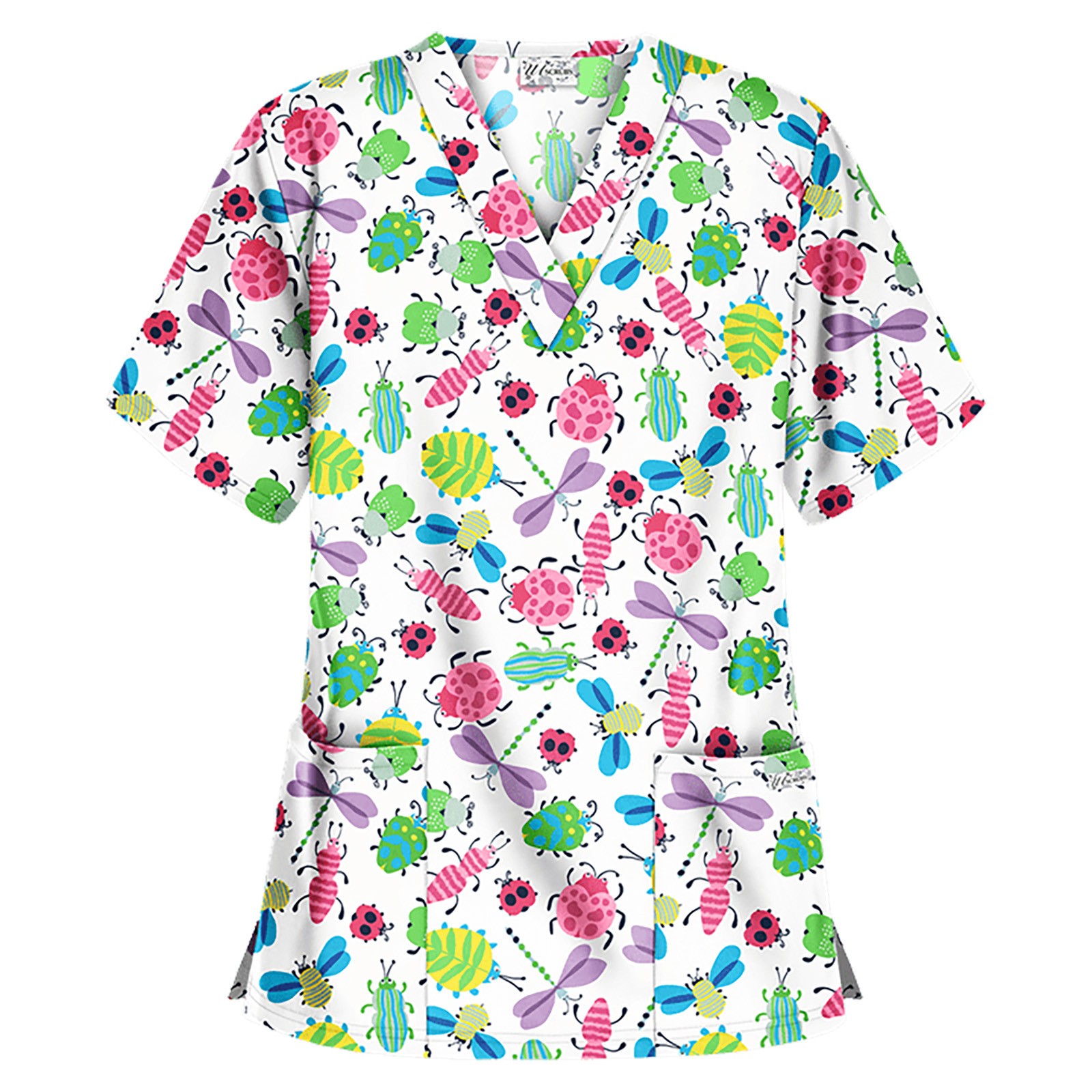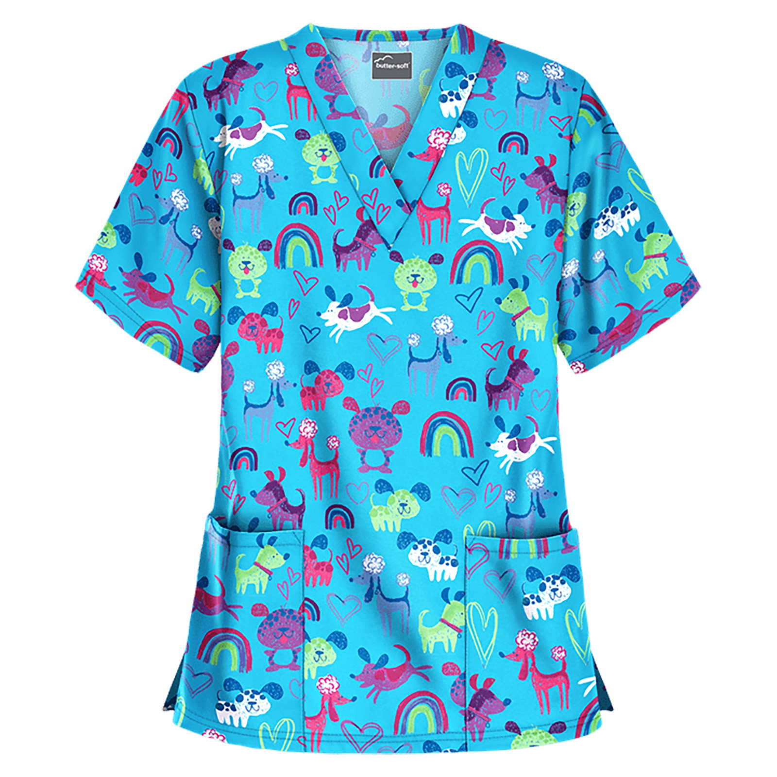 Крой и стиль: женский эластичный скраб-топ с v-образным вырезом и прорезями, классический свободный крой