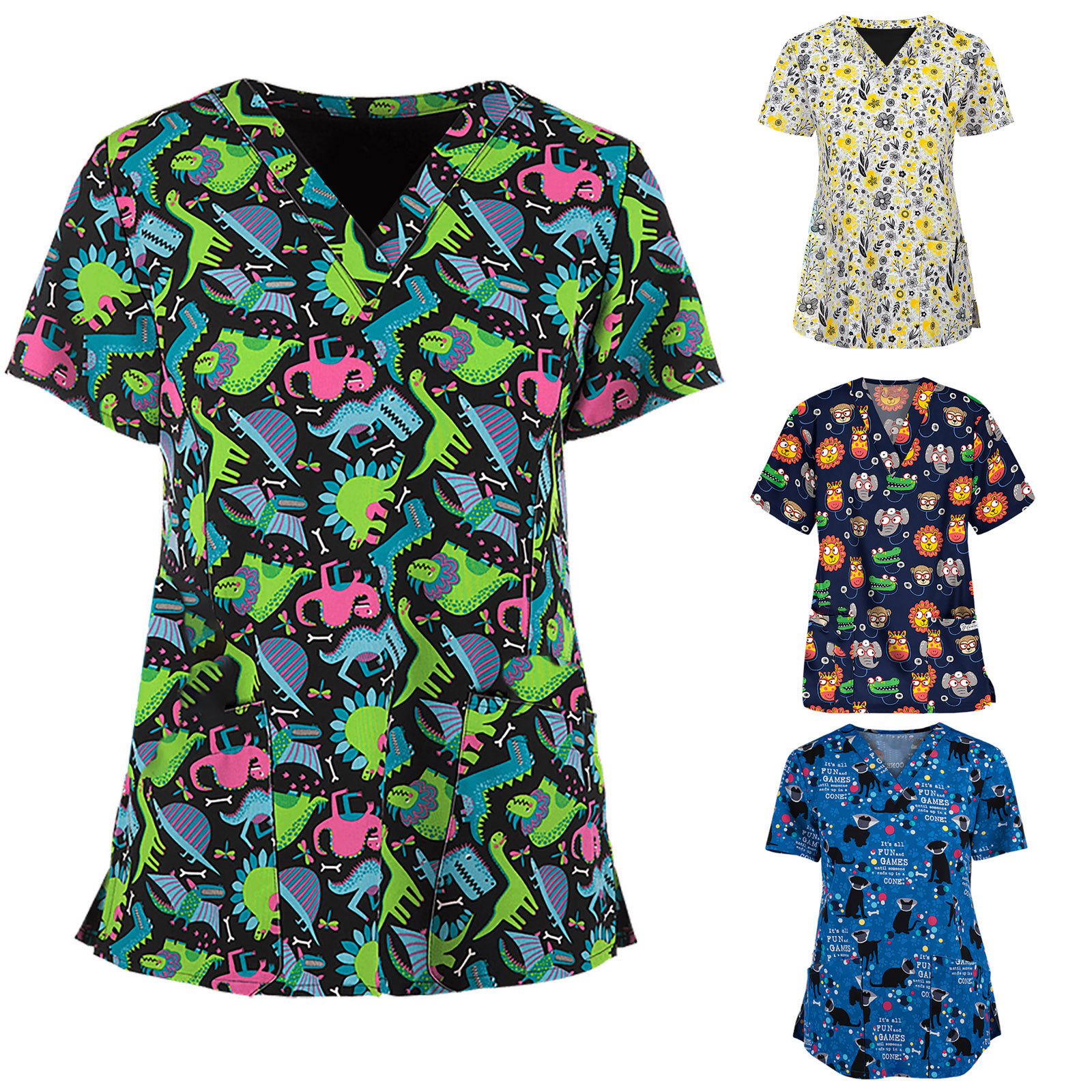 Разноцветный хлопковый с принтом животного униформа для салонов красоты, униформа для ухода за питомцами, скраб, топы, Veterinaria, рабочая одежда, туника для здоровья, A50