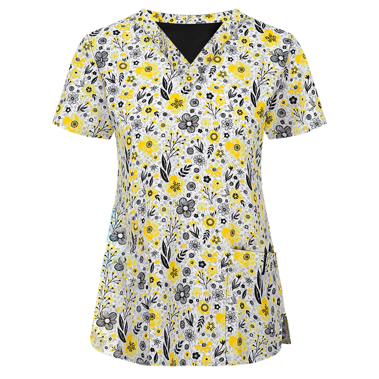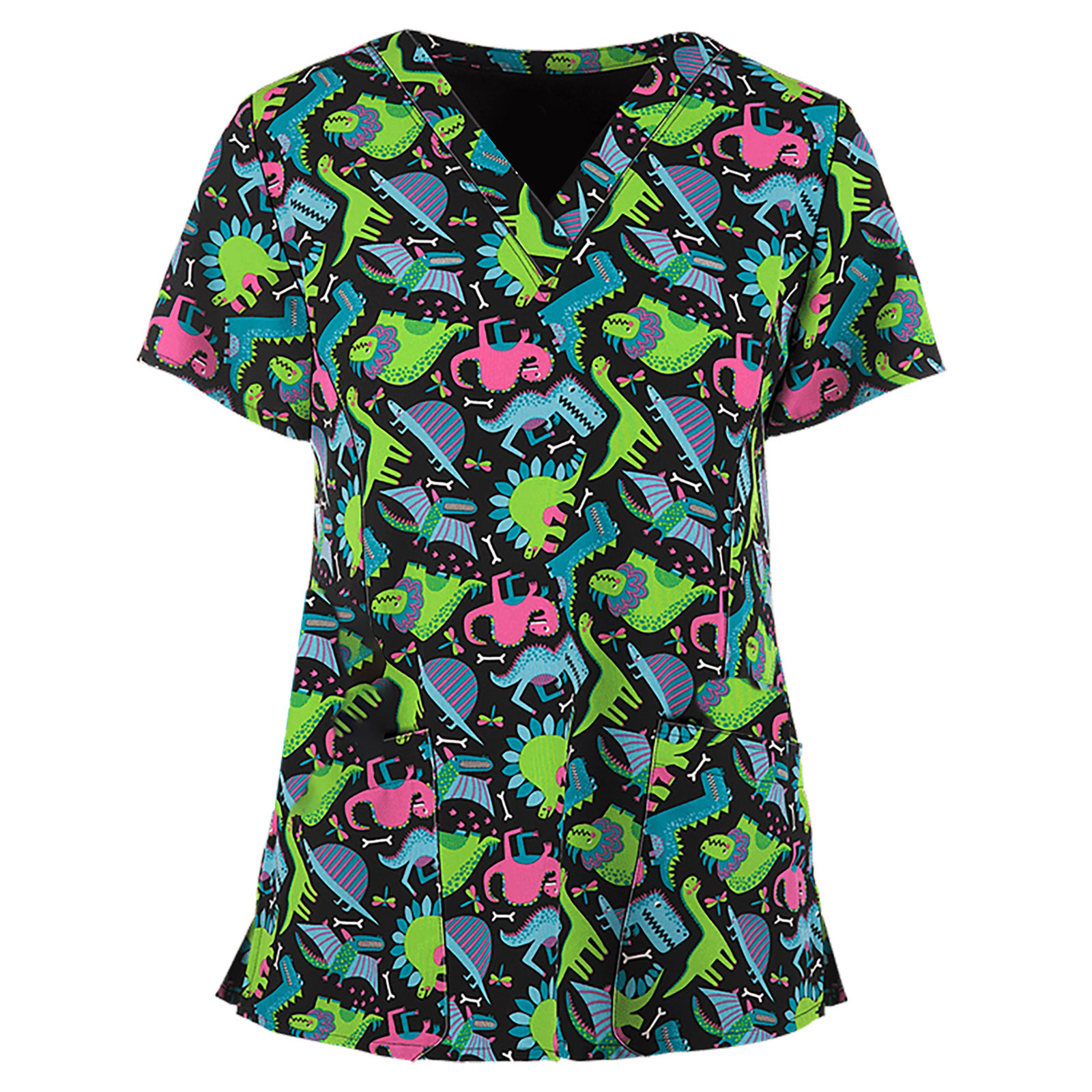 Крой и стиль: женский эластичный скраб-топ с v-образным вырезом и прорезями, классический свободный крой