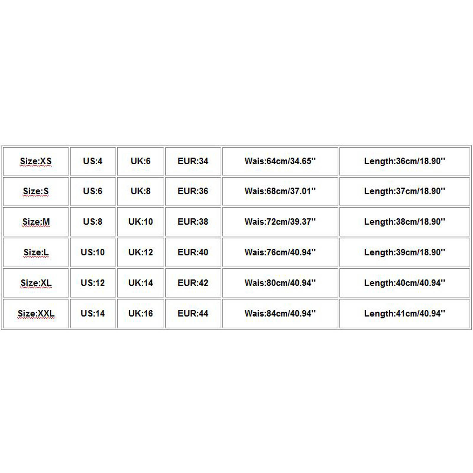 Размер | США | Великобритания | Евро | Wais | Длина |