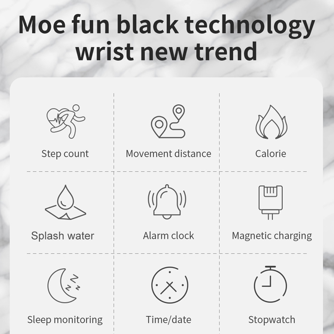 - 10. Основные функции: подсчет шагов, расстояние движения, расход калорий, пульс, артериальное давление, режим нескольких движений, напоминание о сообщениях SNS, Обнаружение сна, подсветка рук и экрана, напоминание о сидячем положении, интеллектуальный будильник, поддержка wechat, доступ к apple health и т. Д.