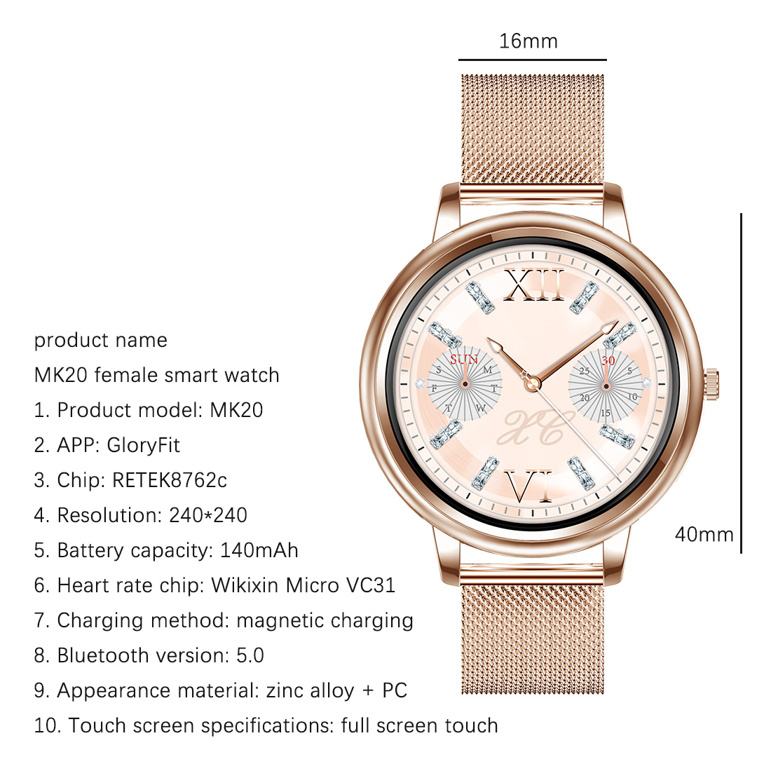 Смарт-часы MK20 женские диаметр 39 мм сенсорный экран 2021 дюйма совместимы с Android и IOS |