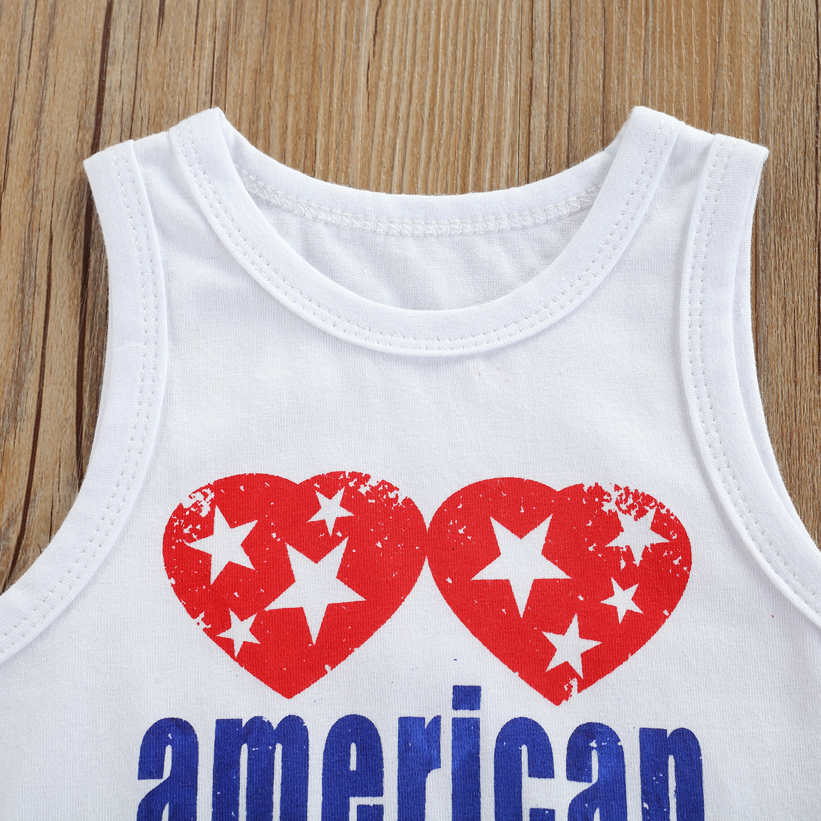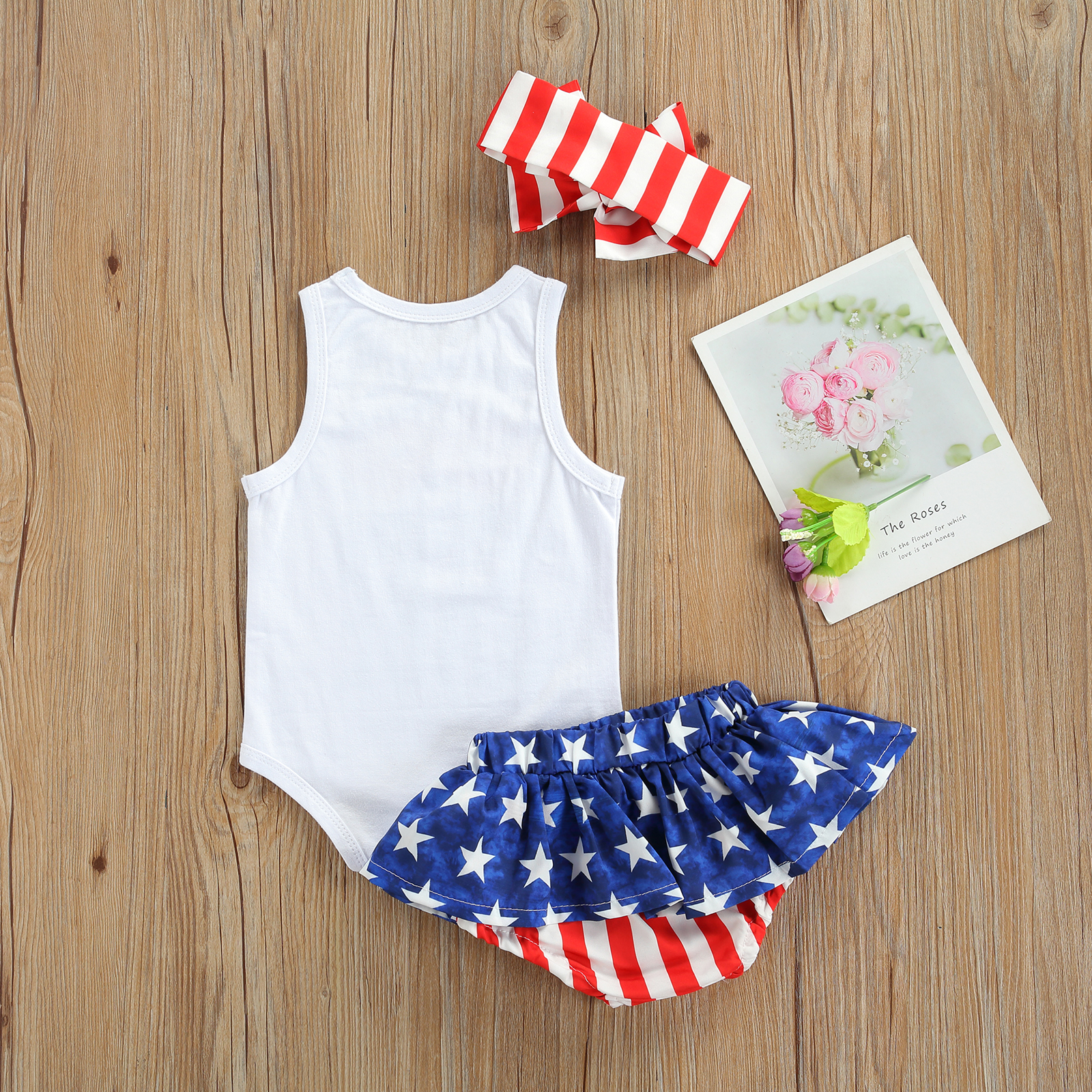 Комплект одежды из 3 предметов для новорожденных на День Независимости, комбинезон + Полосатые трусики со звездами + повязка на голову, на возраст 0-24 месяца, без рукавов принт буквы