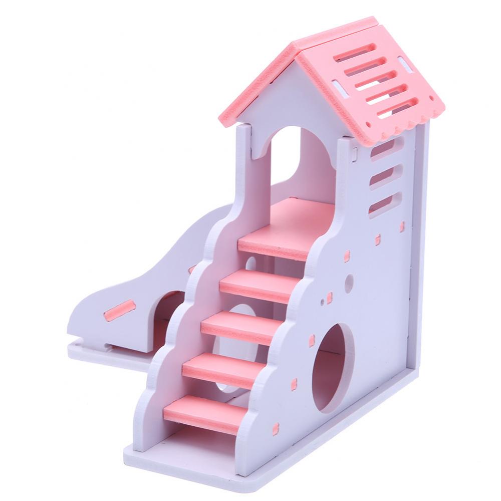 Красочные мини эко-доска деревянная горка Сделай Сам собрать хомяк дом маленькие животные игрушки для домашних животных двойная лестница стиль замок павильон вилла