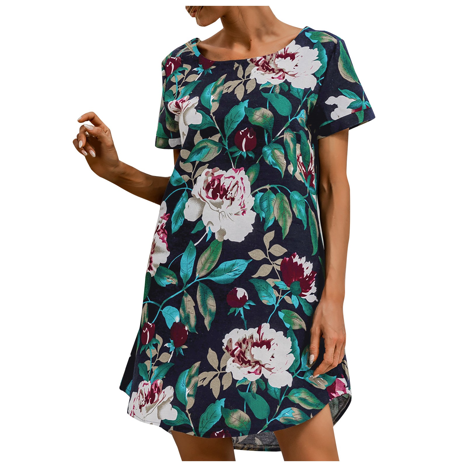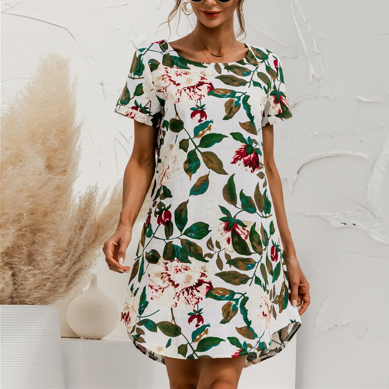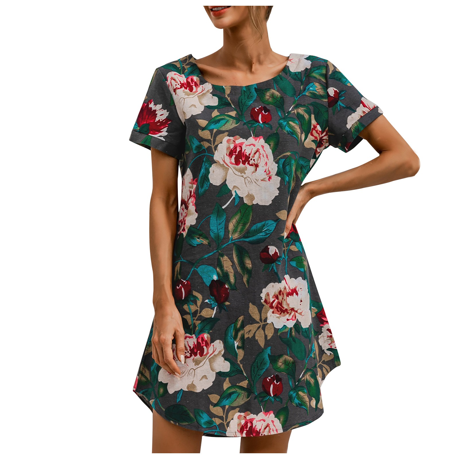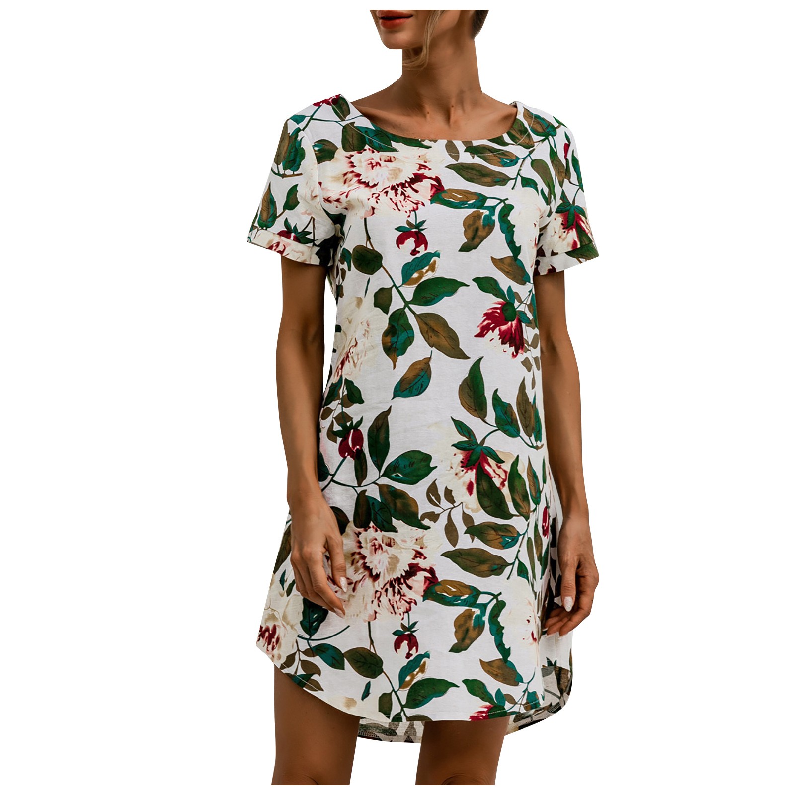 Женское повседневное свободное платье с коротким рукавом и круглым вырезом с цветочным принтом