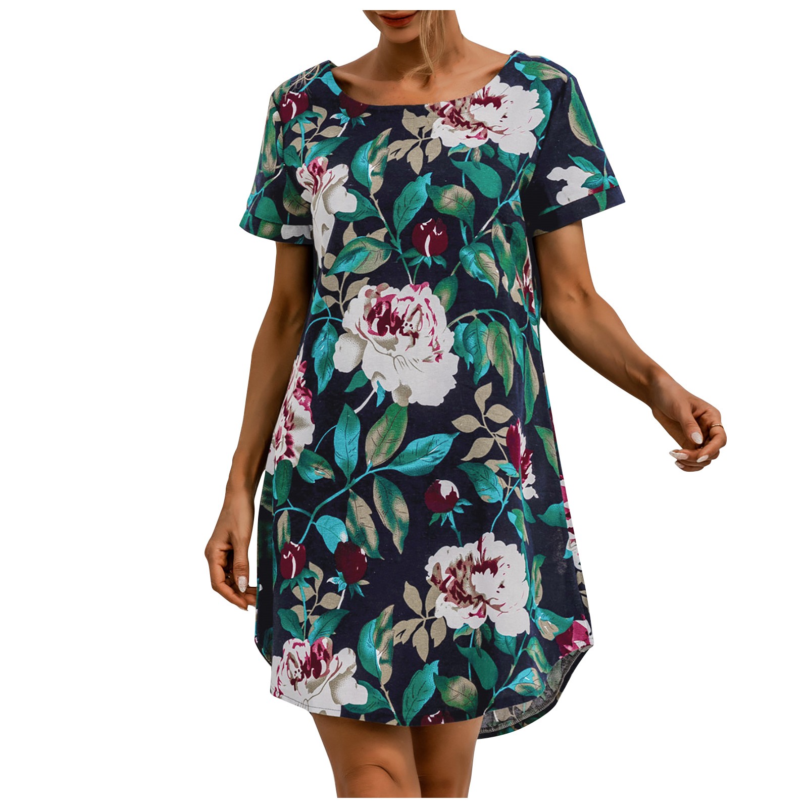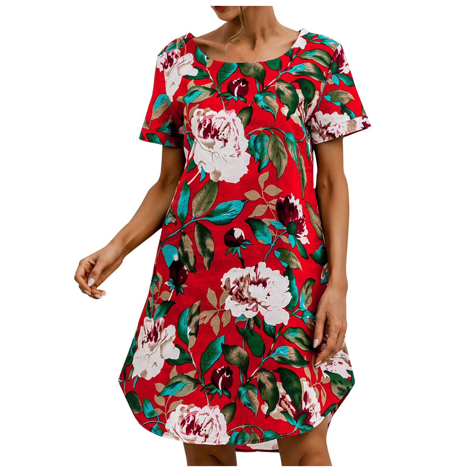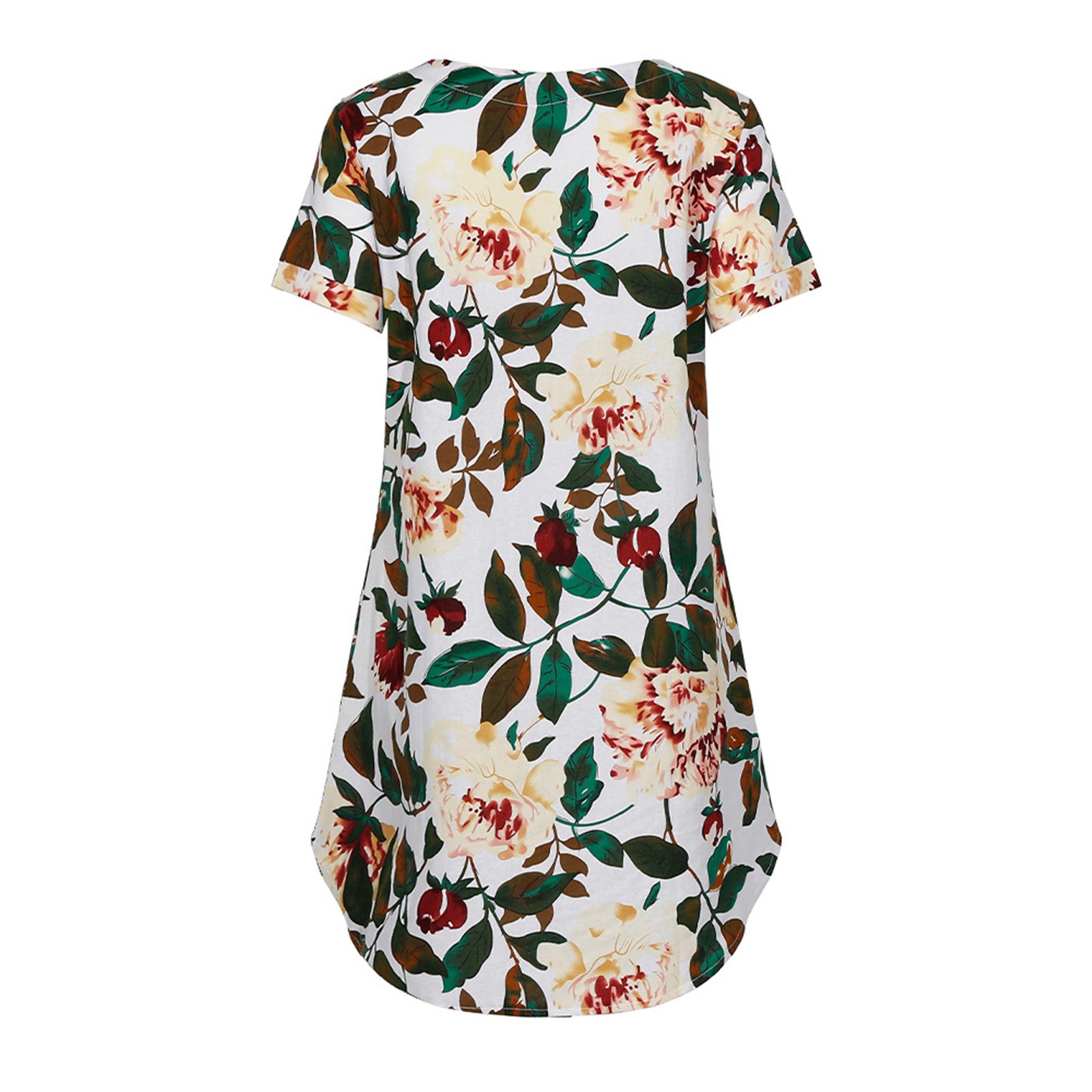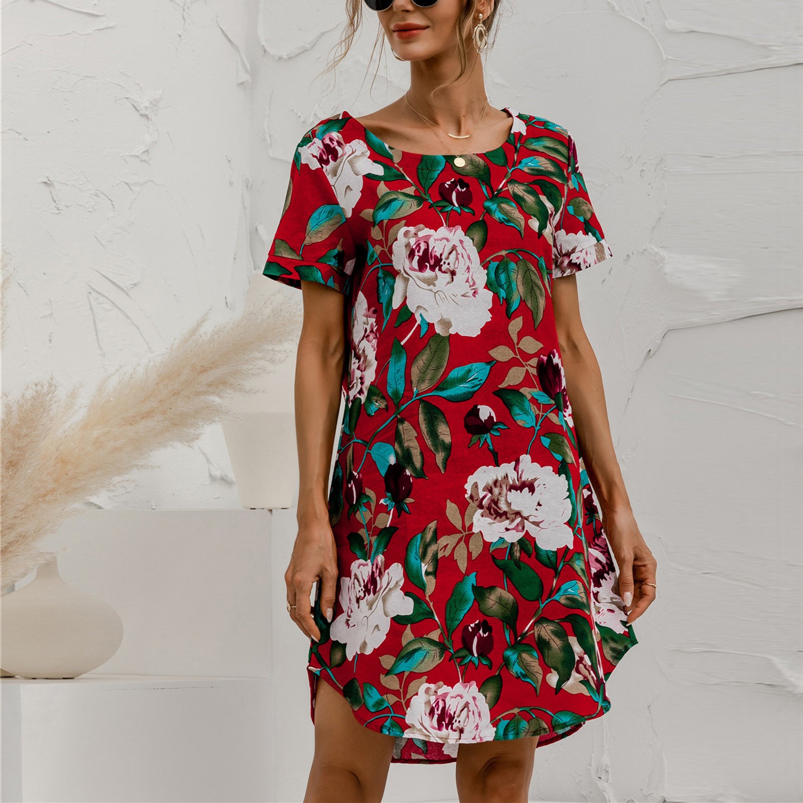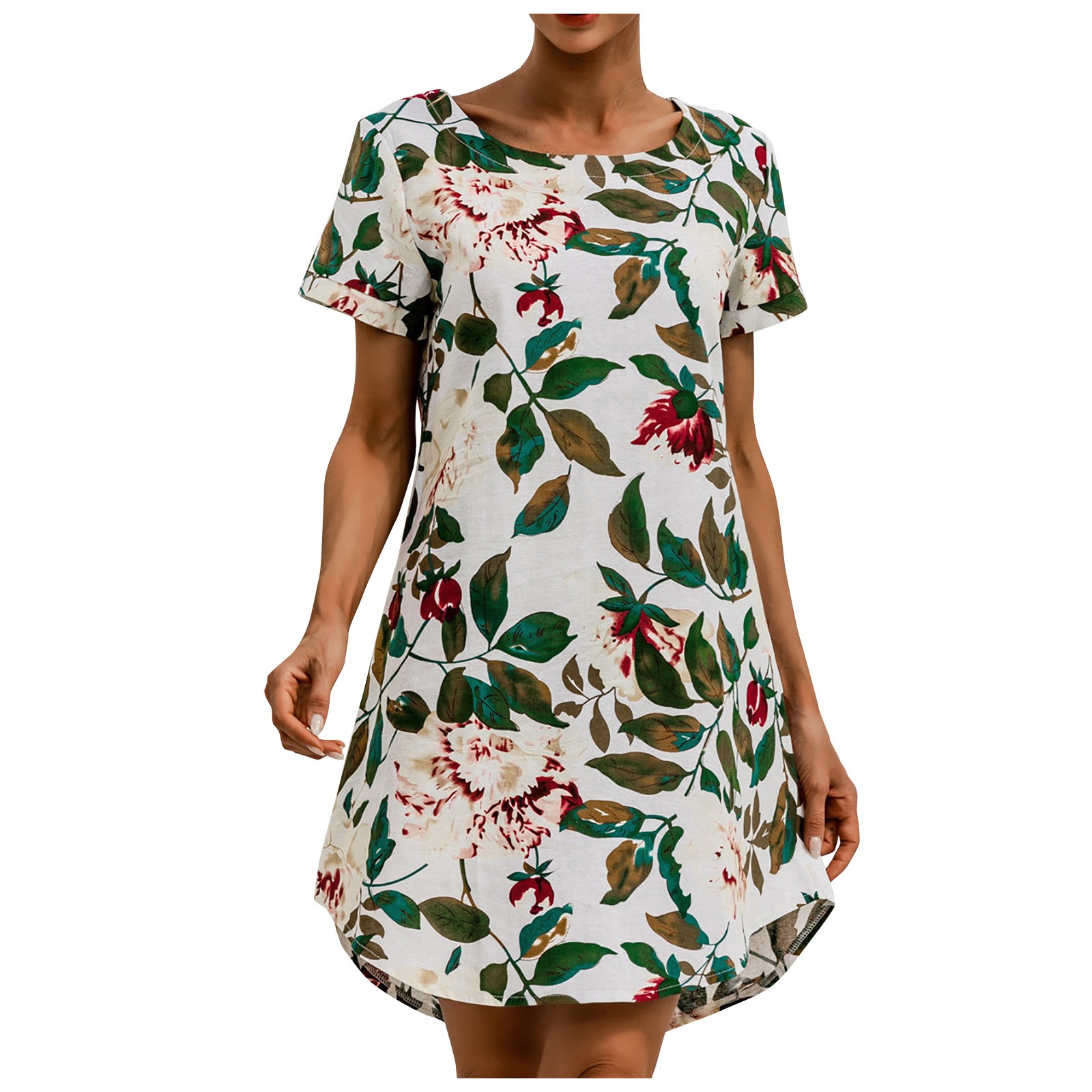 Женское повседневное свободное платье с коротким рукавом и круглым вырезом с цветочным принтом
