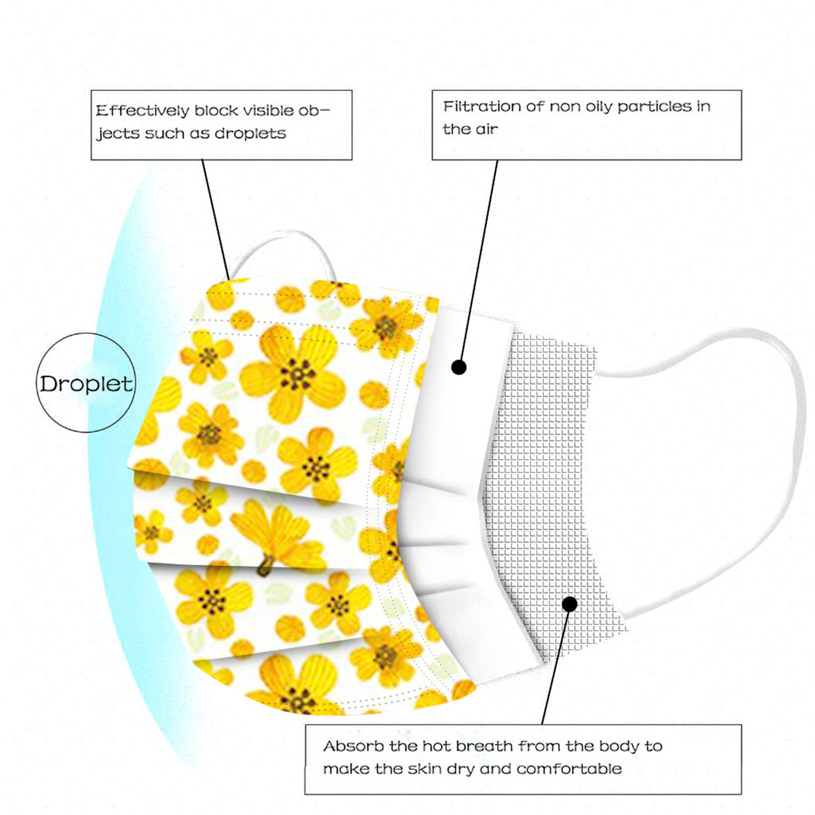 The disposable mask is made of spunlace 3 ply material, it is healthy and safe for you to use. Breathable material and beautiful patterns, which makes it useful and fashionable. Special 3 ply non-woven design, provides some protections against dust, automobile exhaust, pollen, etc. Elastic ear loop, easy to wear and no pressure to the ears.