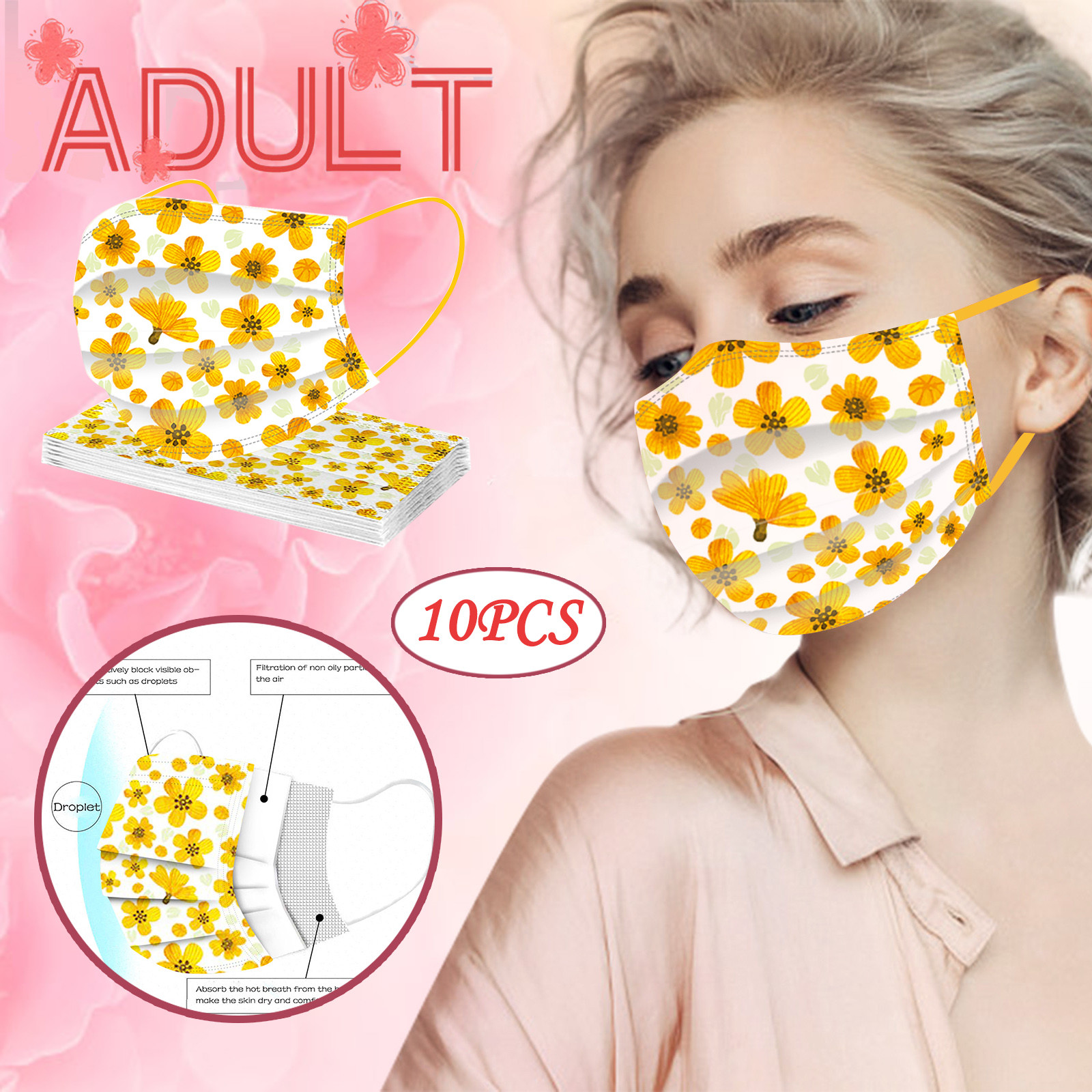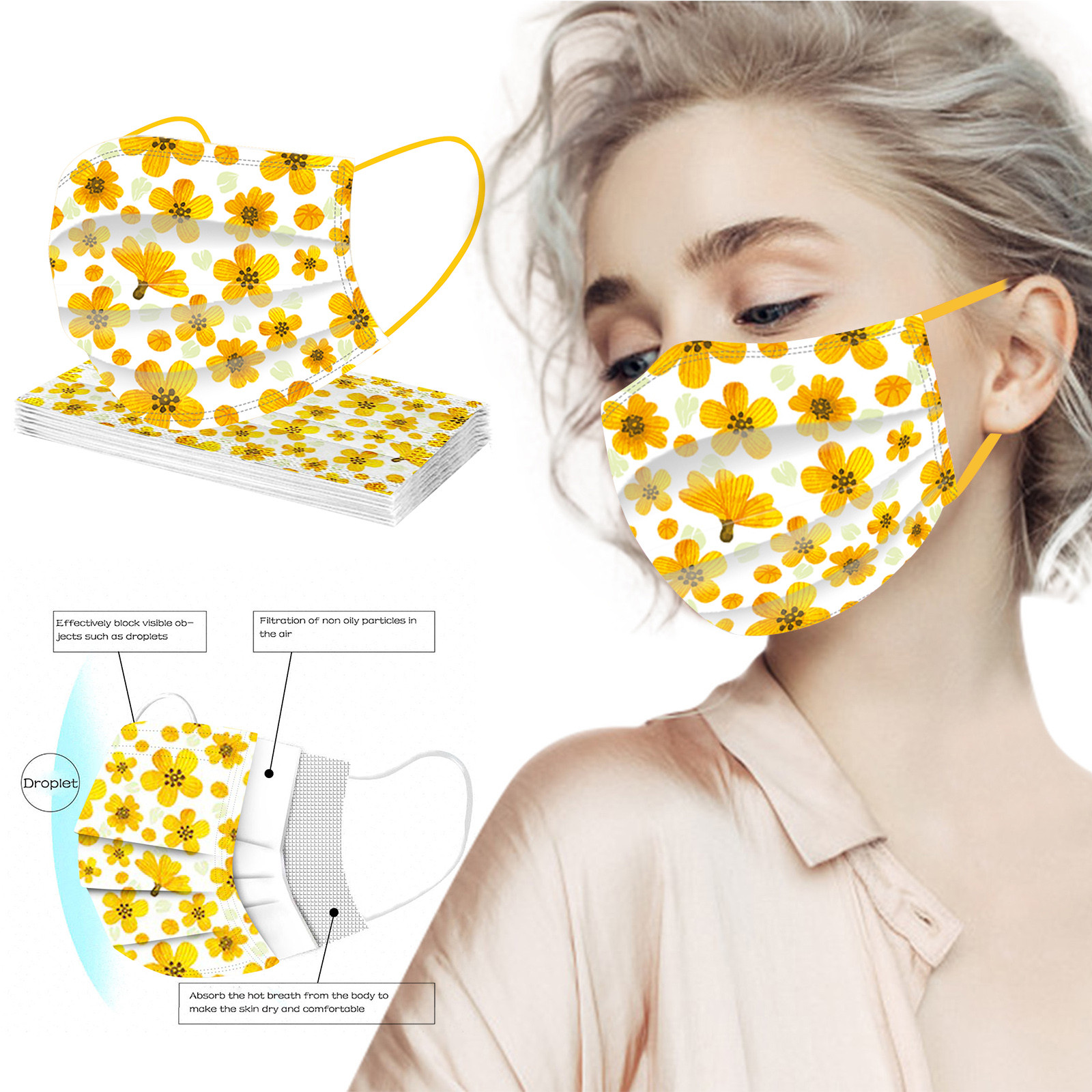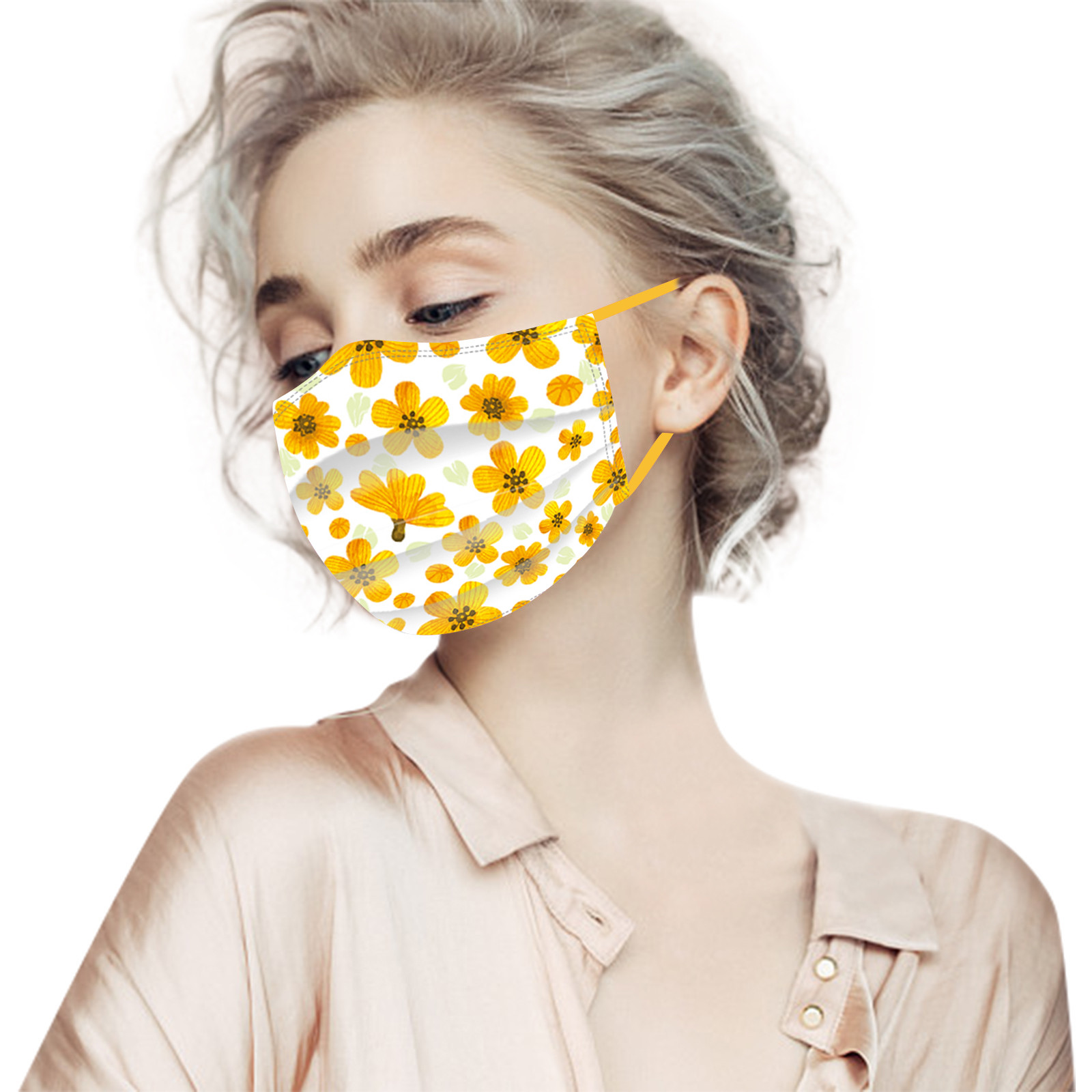 Adult Spring Flower Print Mask Disposable Face Mask Industrial 3Ply Ear Loop