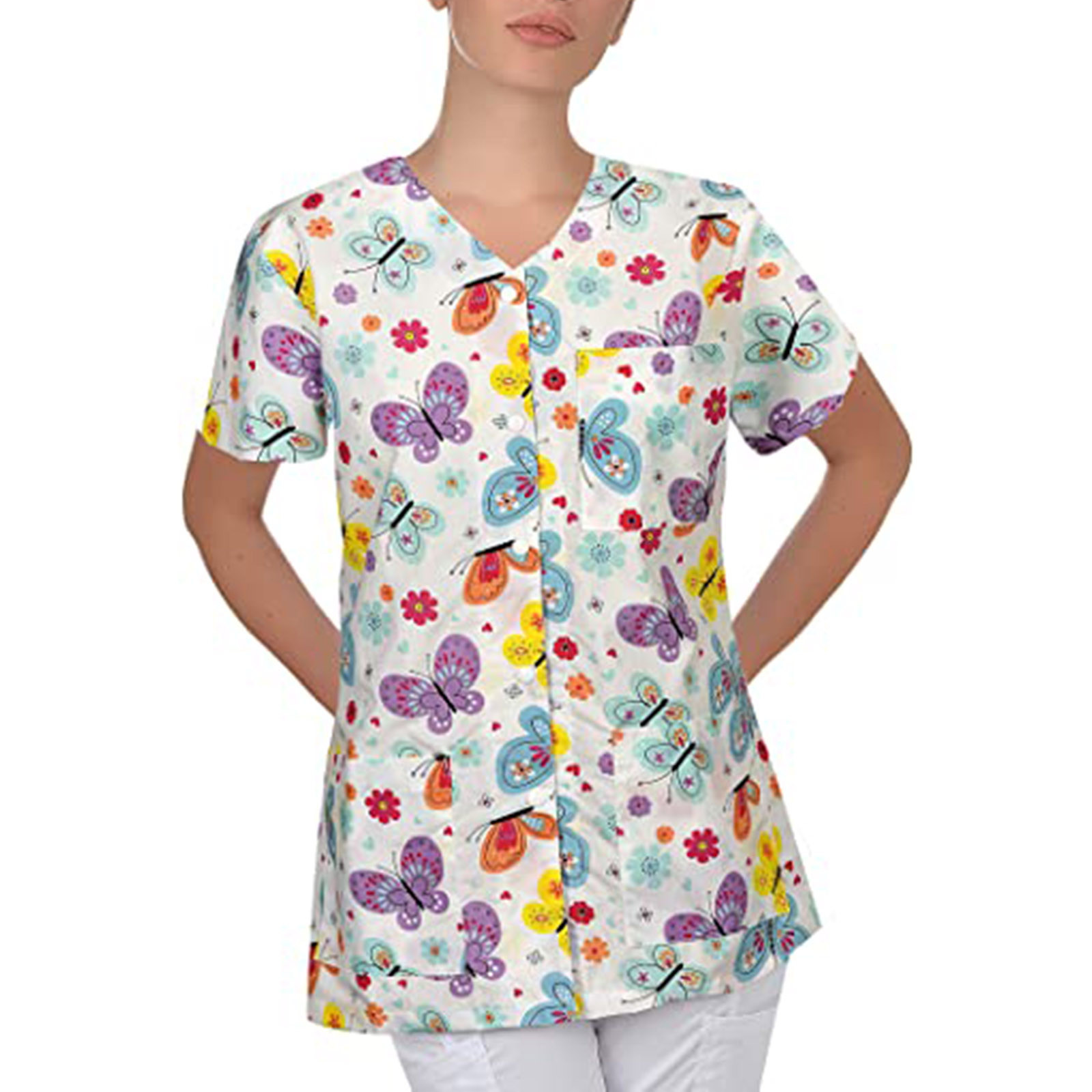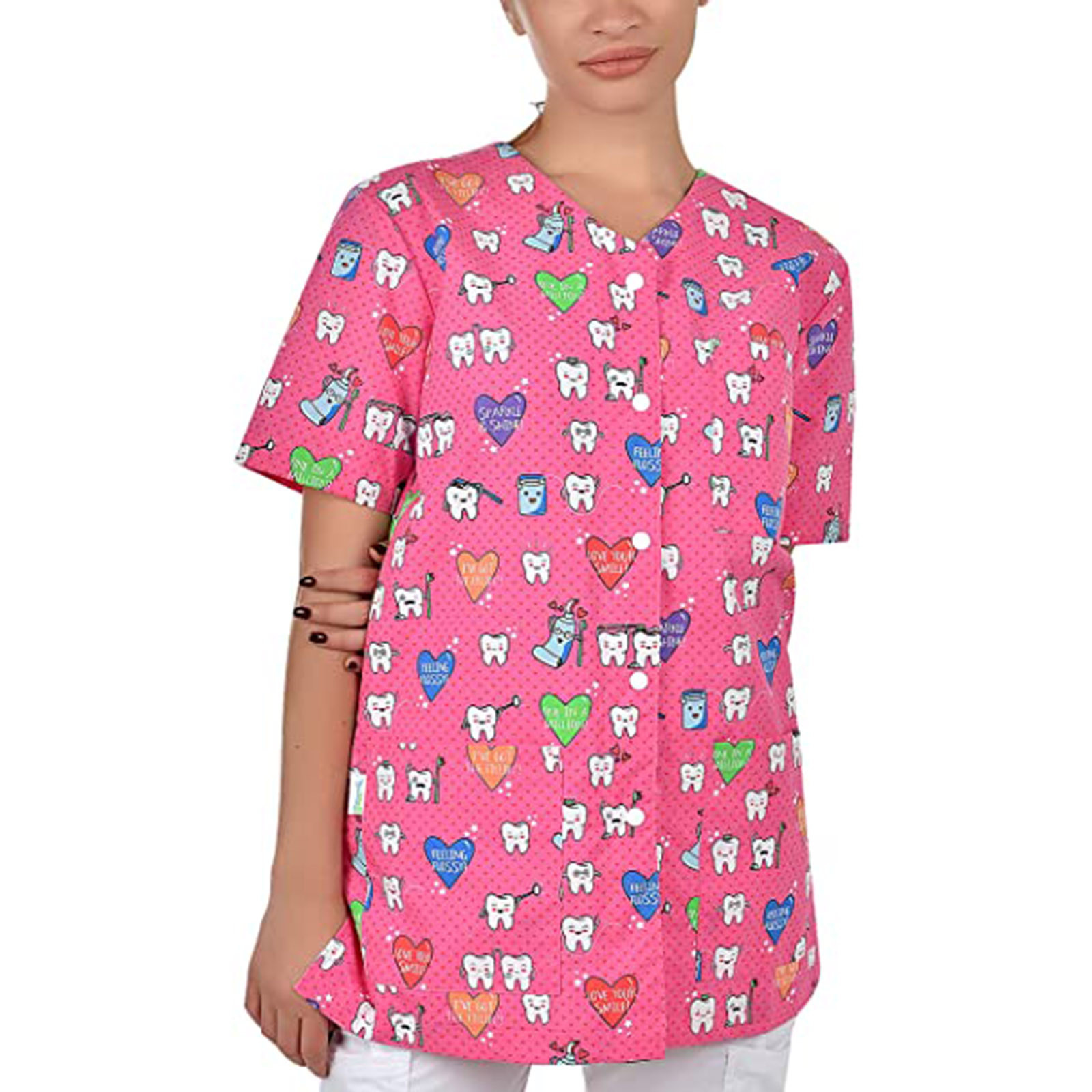 Кардиган, блузка, женская форма с рисунком зубов, короткий рукав, v-образный вырез, пуговицы, топы, стоматологическая клиника, Рабочая форма, A50