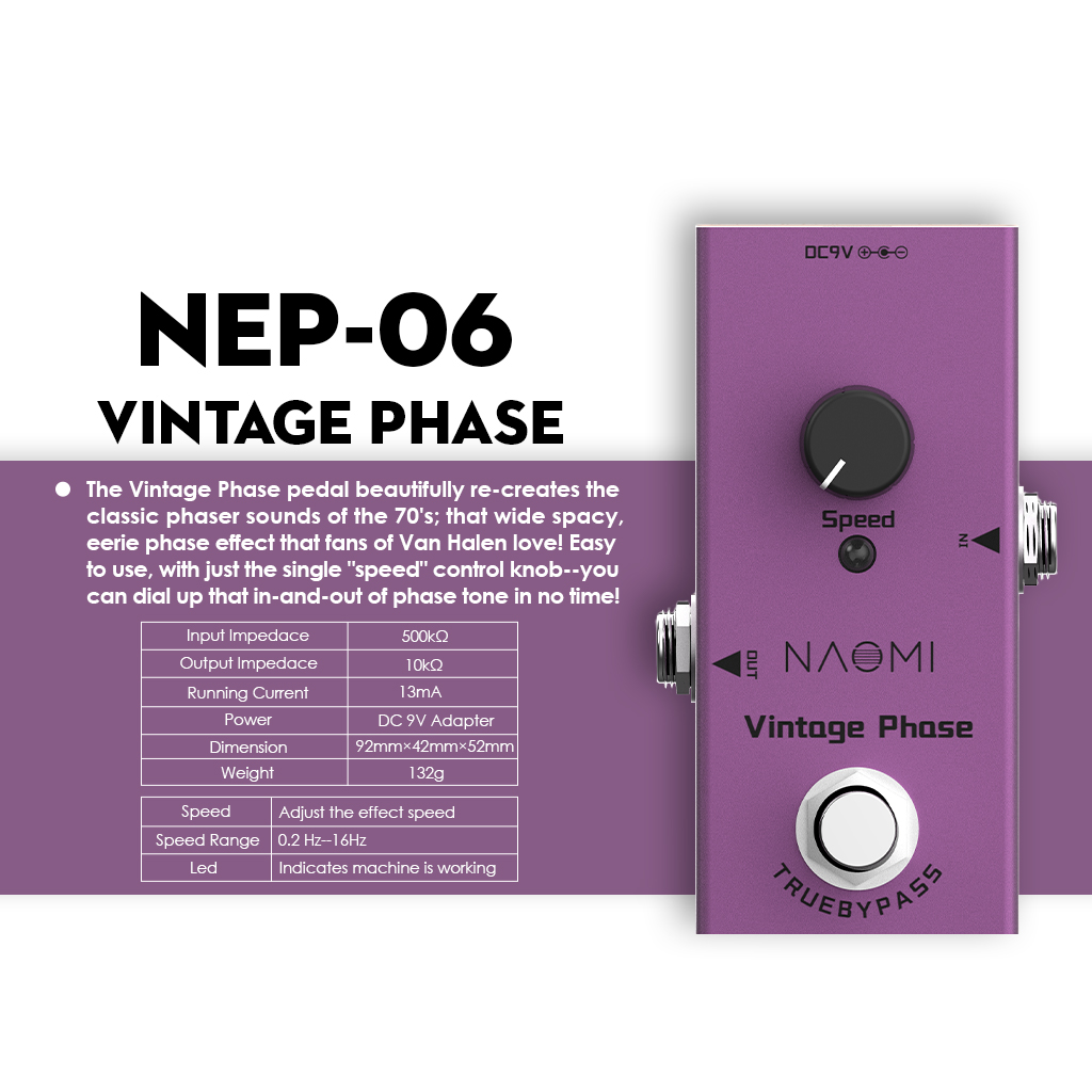 Винтажная фазовая педаль красиво воссоздает классические фазные звуки 70-х годов; Этот широкий spacy, жуткий фазовый эффект, который любят Поклонники ван Халена! Простой в использовании, с одной ручкой управления "скорость"-вы можете набрать его в и из фазового тона в кратчайшие сроки.