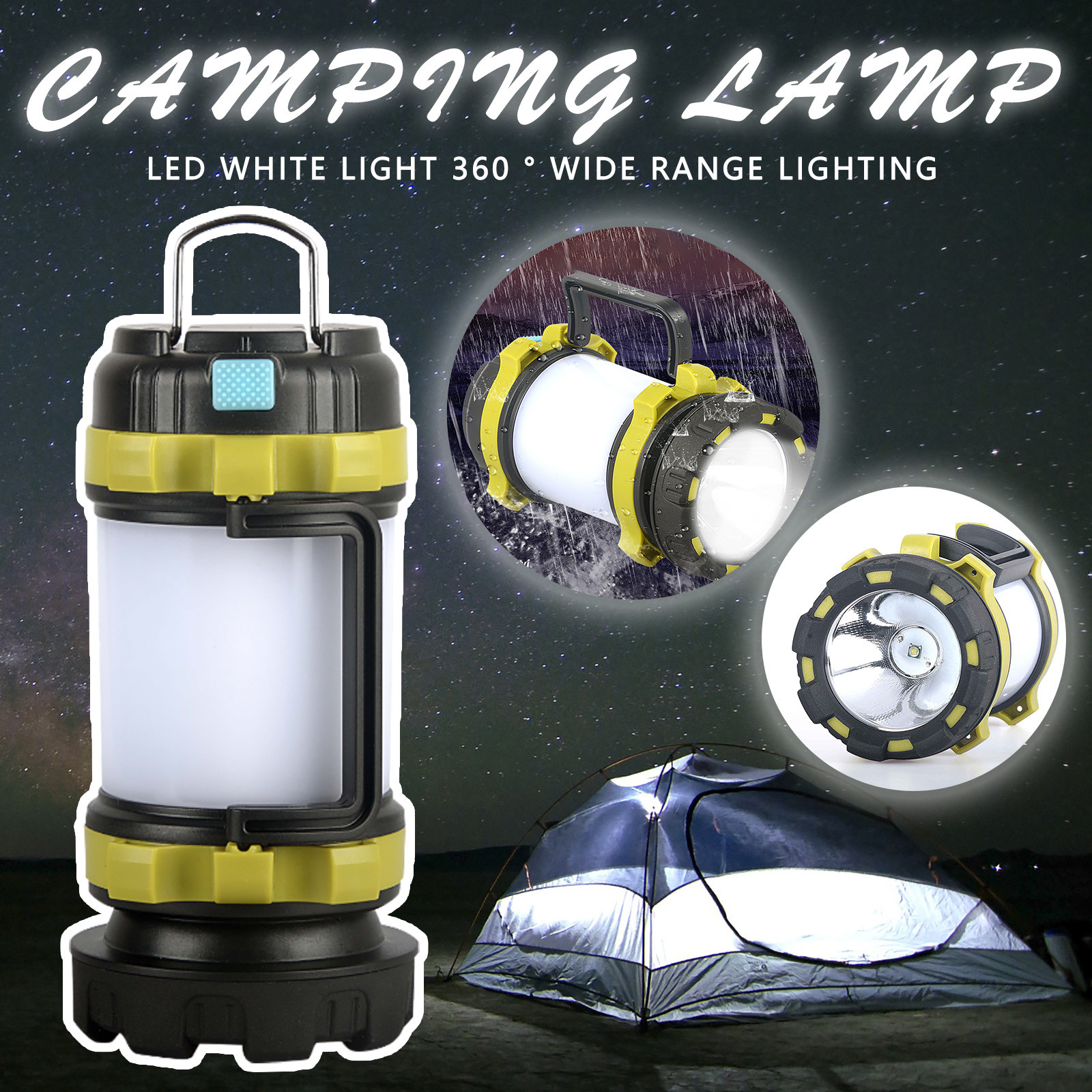 - Портативный и подвесной: с ручкой и двухсторонним крючком, он может быть портативным и висящим везде. Чрезвычайно компактная и легкая конструкция позволяет нам долго брать наш фонарь на ходу с легкостью. Например, он также может висеть снаружи и внутри палаток, чтобы расширить Размер освещения или напугать диких животных, когда вы находитесь в кемпинге, пеших походах, ночной езде и исследовании и т. д.