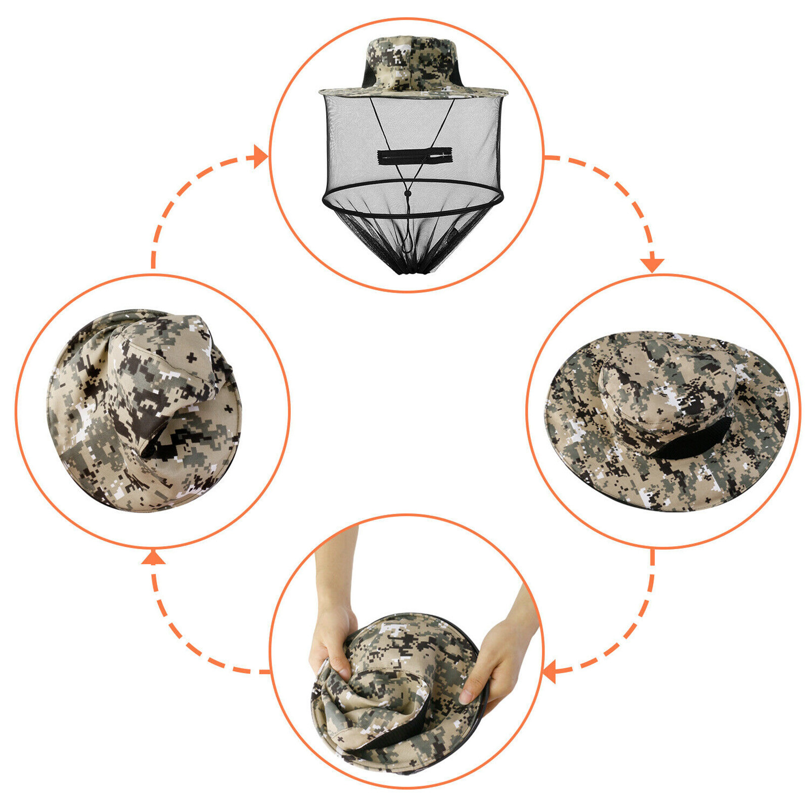 Складной и портативный: в верхней части шляпы спрятан сетчатый отсек, что делает ее удобной для хранения вуали; Шляпа-сетка от комаров складная, легко носить с собой куда угодно. Отлично подходит для садоводства, рыбалки, охоты, земледелия, кемпинга, пеших прогулок, путешествий или других видов активного отдыха