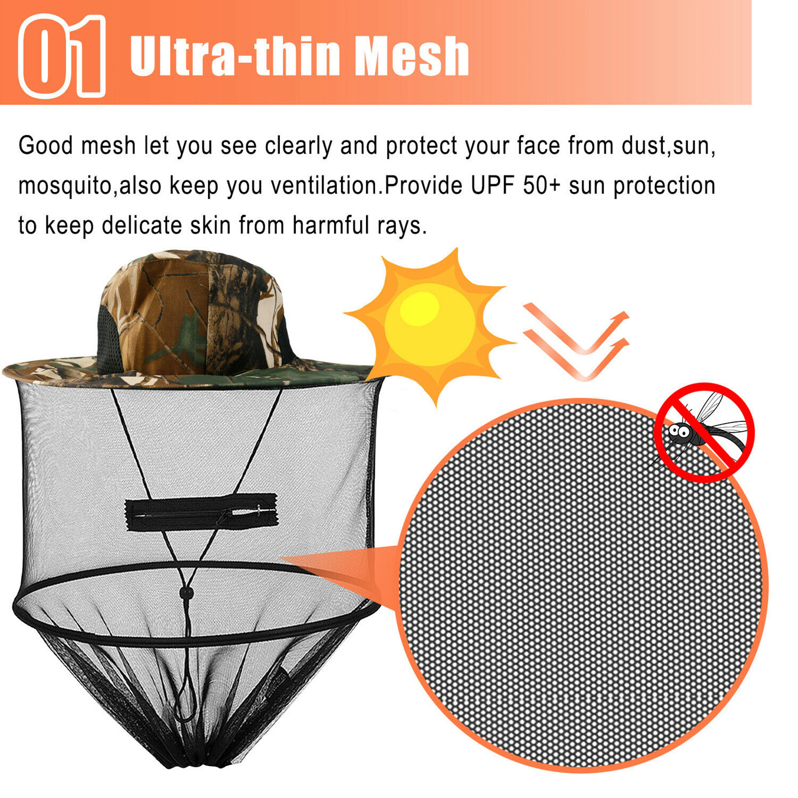 Защита от солнца UPF50 +: с сетчатыми полями 360 °, обеспечивают оптимальную защиту от вредных УФ-лучей и надоедливых клопов, мух, пчел и комаров, эффективно защищает вашу кожу от солнечного света и насекомых.